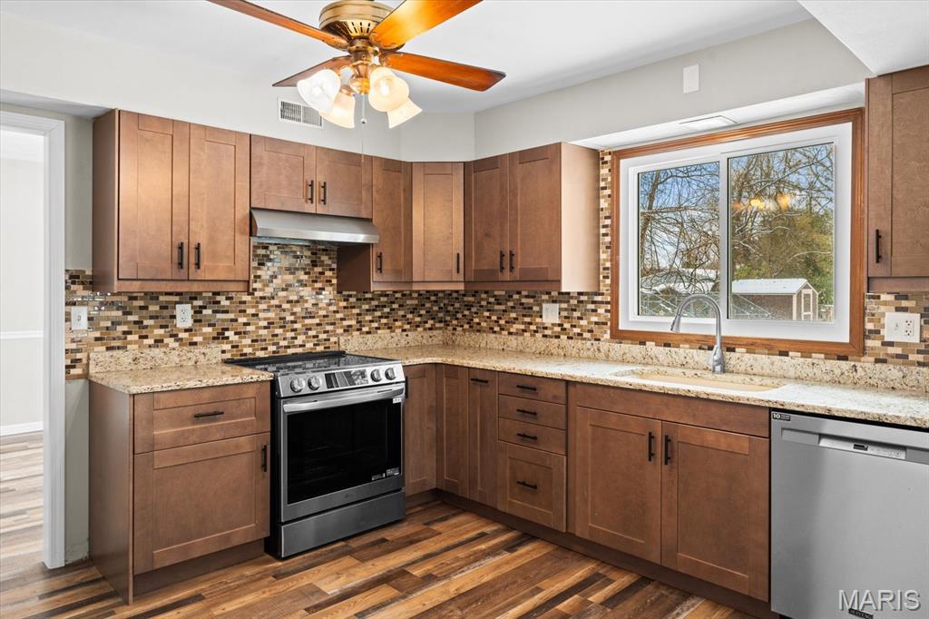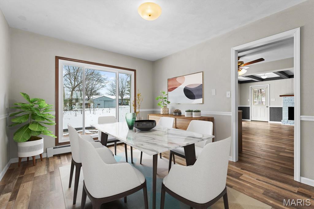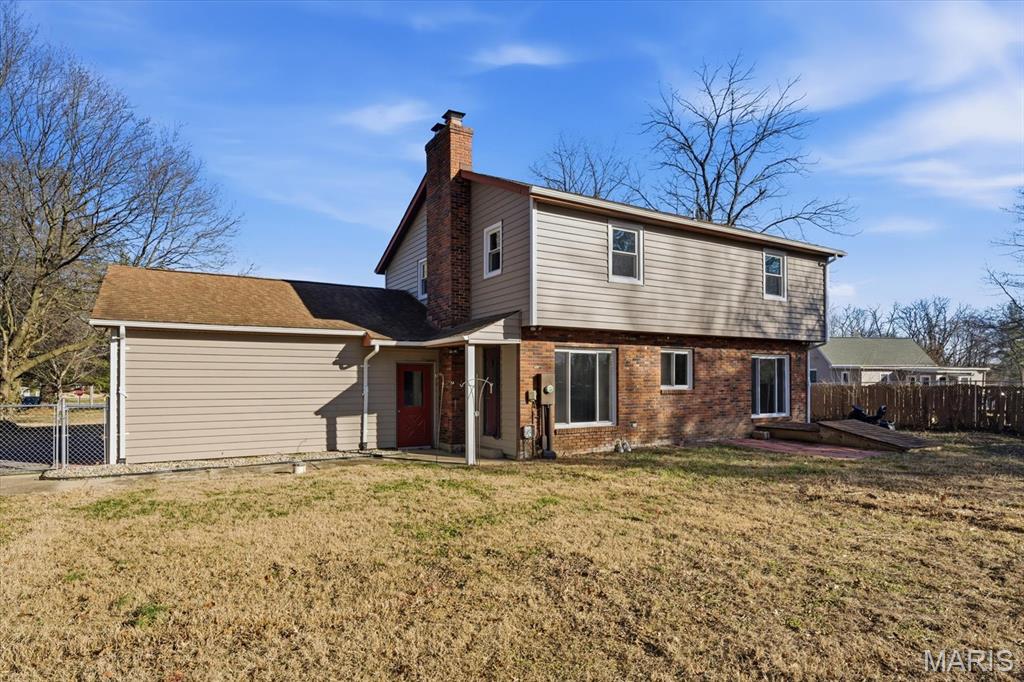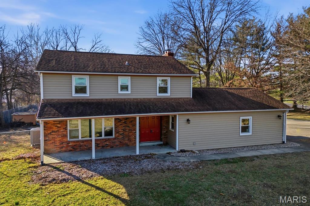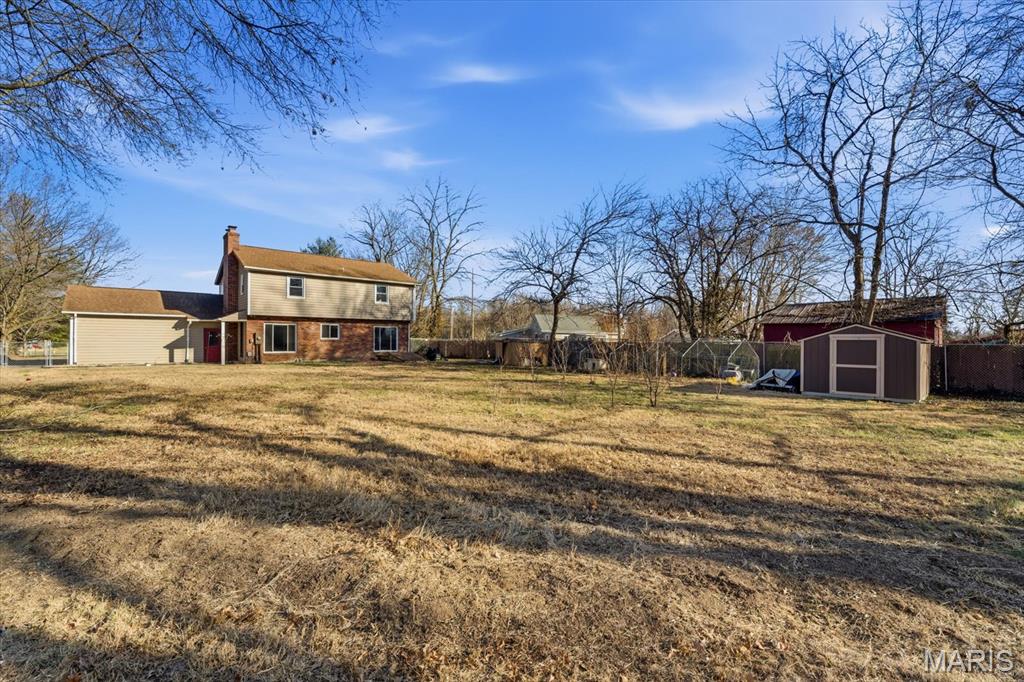 An ACRE of land in O'Fallon school district and NOT in an HOA! Welcome to 1181 Old Vincennes Rd! Updates are a new kitchen with granite counter tops, luxury vinyl flooring, stainless appliances with an induction oven, tile backsplash, and an awesome eat in area with a wood burning fireplace (seller has never used the fireplace). The formal dining room off of the kitchen leads to the spacious living room (only room with carpet in the house) and a main floor half bath and convenient main floor laundry with wash sink, cabinets, and tile backsplash. Upstairs also has luxury vinyl plank flooring in the three guest bedrooms with two of those bedrooms offering walk in closets. They also share an updated full bath with new vanity. The primary bedroom has multiple closets and a updated 3/4 bath. The unfinished basement has been waterproofed with a transferrable warranty with a sump pump and just ready for your finishing touches! The spacious fenced back yard has two sheds for storage and a flat yard for all of the activities! Side load garage, new windows, new siding, new HVAC (radiator vents are not operational and are from the old system), newer asphalt driveway, and located just down the road from Scott Air Force Base and I64! Buyer and buyer's agent to confirm all information.