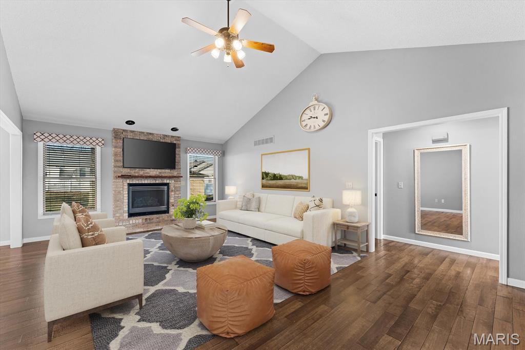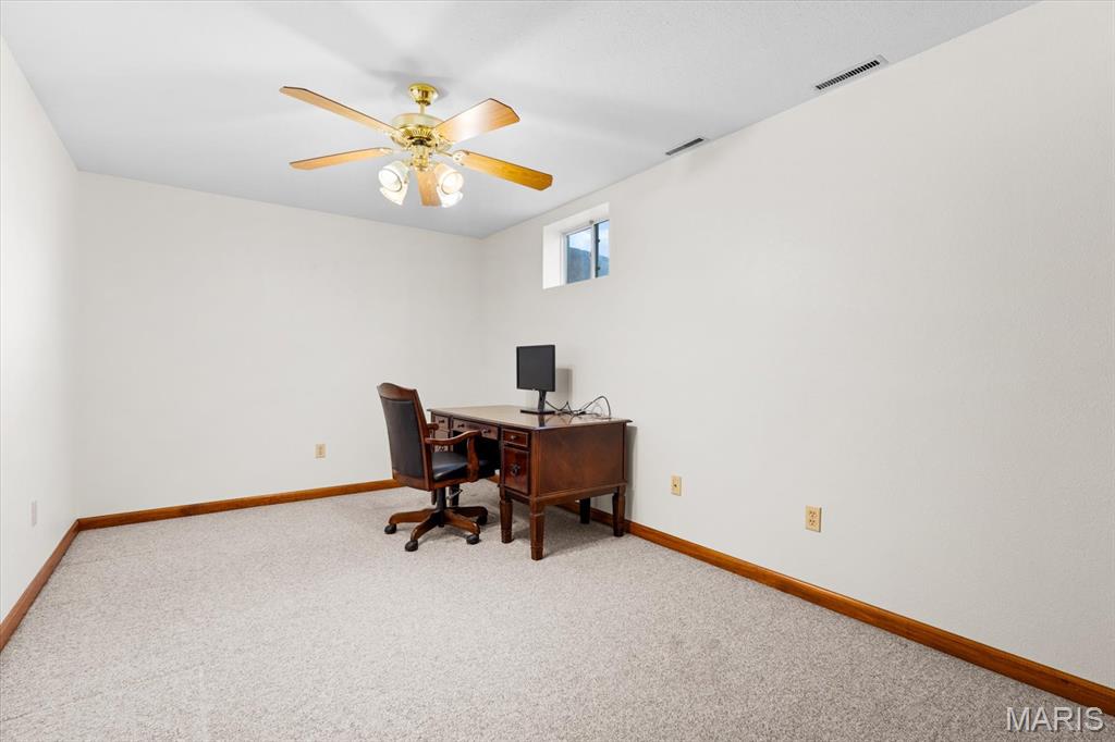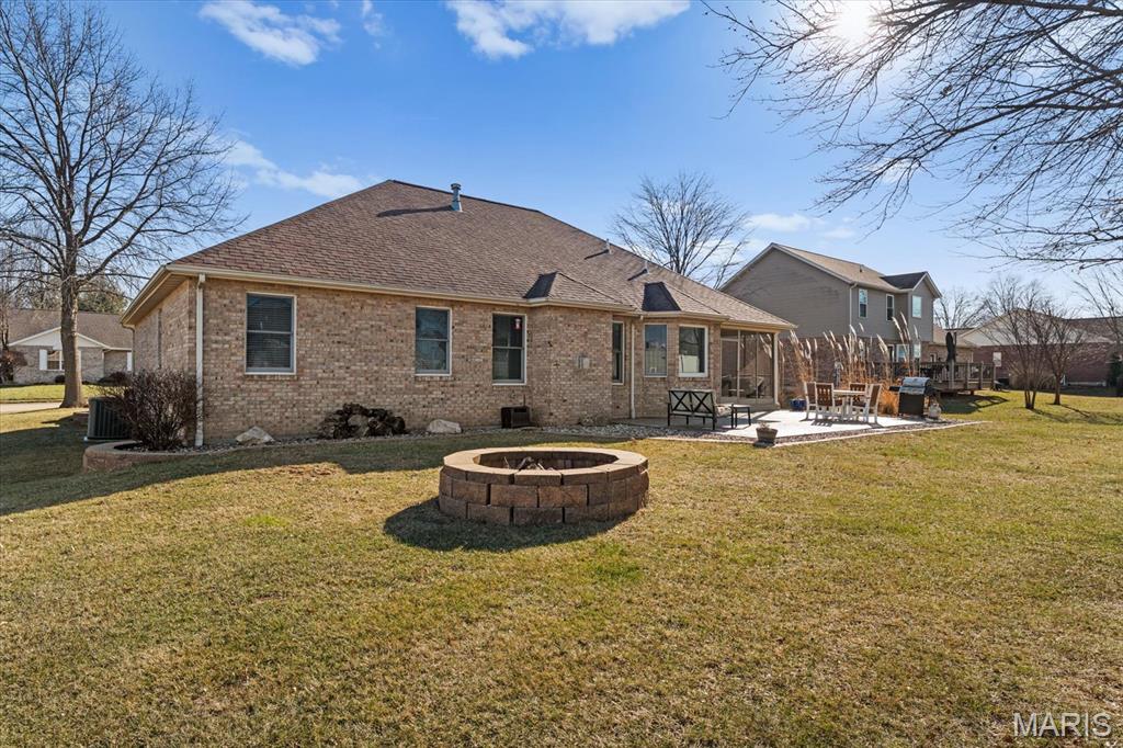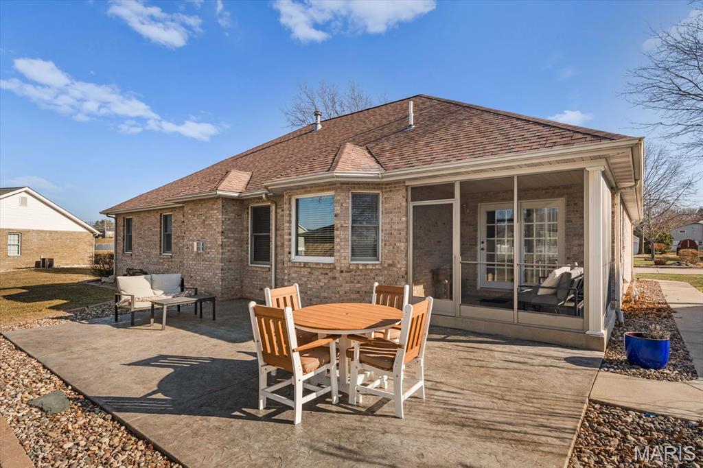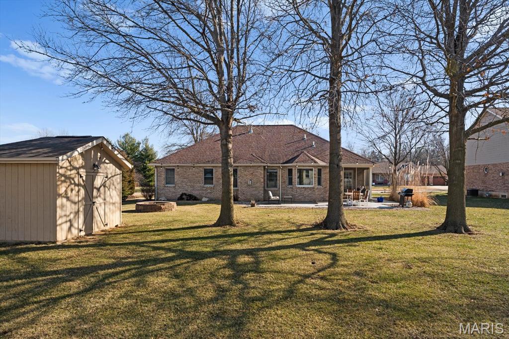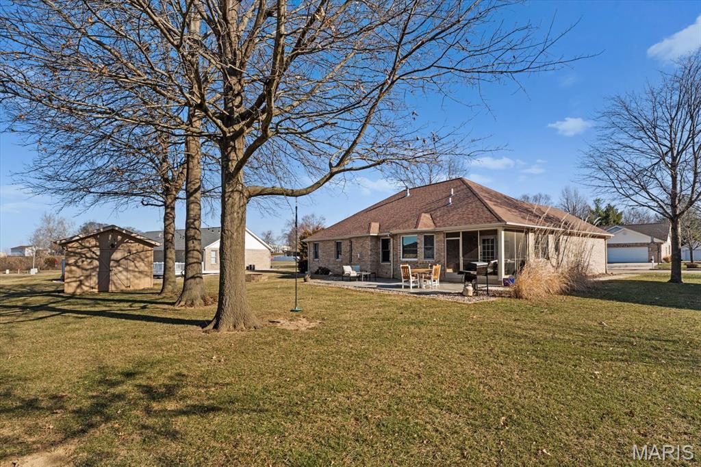 OPEN HOUSE SATURDAY, JAN. 24TH FROM 11-1 P.M.! From the moment you arrive, this majestic ALL BRICK home from top to bottom commands attention with its timeless curb appeal and undeniable pride of ownership. Built in 1997 and offering over 3,000 square feet of finished living space, this exceptional residence is located in the desirable Shady Springs subdivision and is ready to welcome its newest buyer. The arched brick entry, accented by an arched window and sidelights, leads you onto the covered front porch and into an inviting foyer showcasing beautifully updated flooring. The spacious living room features vaulted ceilings and a cozy gas fireplace and flows effortlessly into the formal dining room, highlighted by charming bay windows, perfect for hosting gatherings. The eat-in kitchen boasts abundant updated white cabinetry, granite countertops, updated flooring, a breakfast bar, and a breakfast nook, all refreshed in 2022/2023. A generously sized laundry room adds everyday convenience with washer and dryer included, shelving, and a fantastic folding area. The primary suite serves as a peaceful retreat with a tray ceiling, TV, spacious walk-in closet, and a beautifully updated 3/4 bathroom completed in 2018. Two additional bedrooms offer thoughtful design details, the second bedroom includes a built-in desk and storage area, while the third showcases vaulted ceilings, abundant natural light, and an arched window. The lower level expands your living space with a huge family room, ideal for evening entertaining or simply relaxing, along with a spacious 3/4 bathroom. A bonus room offers flexibility for an office, workout space, or additional bedroom (no egress window). Two separate storage rooms provide even more functionality and organization. The extra-deep two-car garage is equipped with slat-wall storage for a clutter-free space, plus built-in cabinetry for added convenience. Step outside to enjoy the thoughtfully designed outdoor living areas, including a concrete walkway to the backyard, an enclosed screened-in patio added in 2022, and a large 16 x 26 stamped concrete patio also completed in 2022, perfect for entertaining. A firepit invites cozy evenings outdoors, while the 12 x 12 storage shed with electric and concrete flooring offers excellent additional storage. Mature trees complete the backyard, providing privacy and a peaceful setting. Major updates include a roof replaced in 2014, HVAC in 2010 and hot water heater in 2018, offering added peace of mind. With space, style, thoughtful updates, and exceptional indoor and outdoor living, you won’t want to miss the opportunity to own this fantastic home! Location is truly a highlight of this home, offering walkability to all of Waterloo’s fantastic amenities including shopping, dining, and the many local festivals and community events the town is known for. Enjoy the charm and convenience of small-town living while also benefiting from easy and close access to Route 3, making commuting and travel a breeze. An unbeatable location you won’t want to miss!