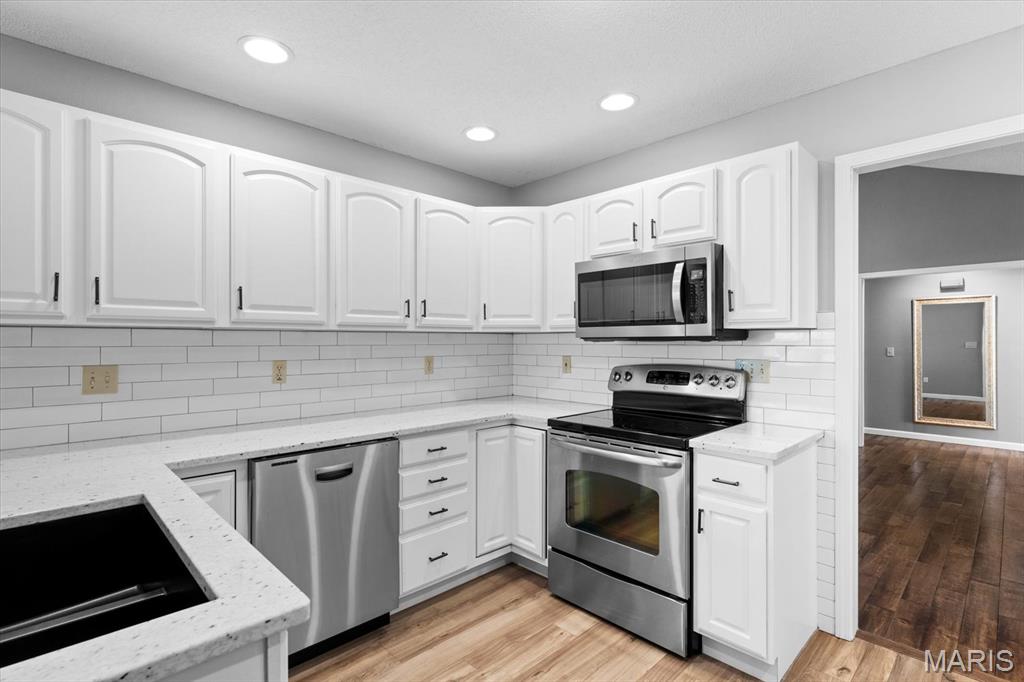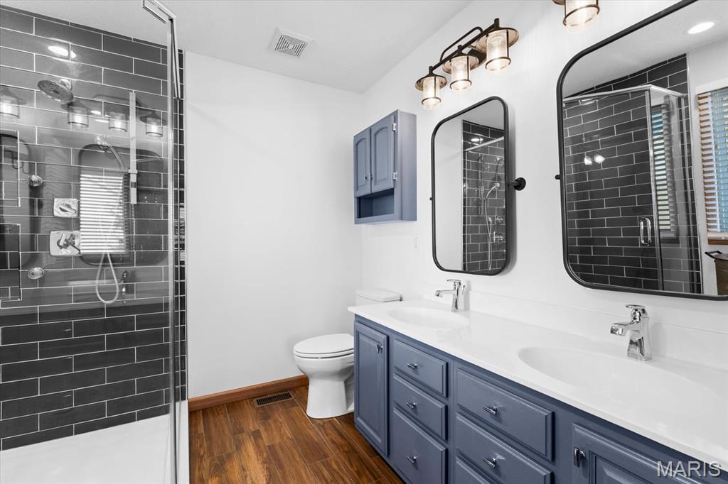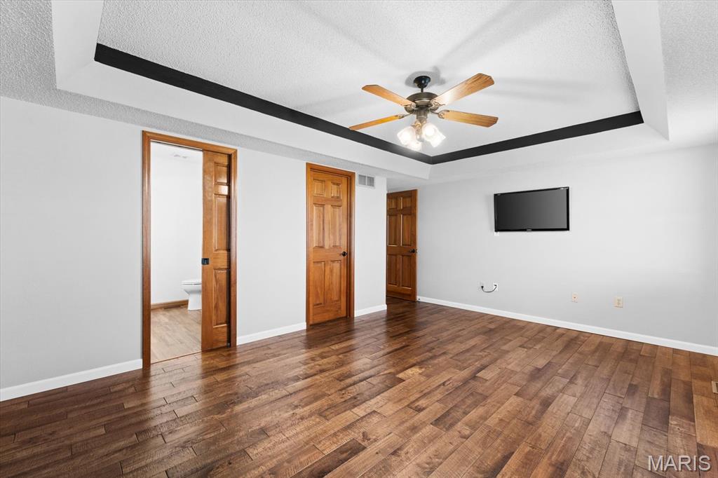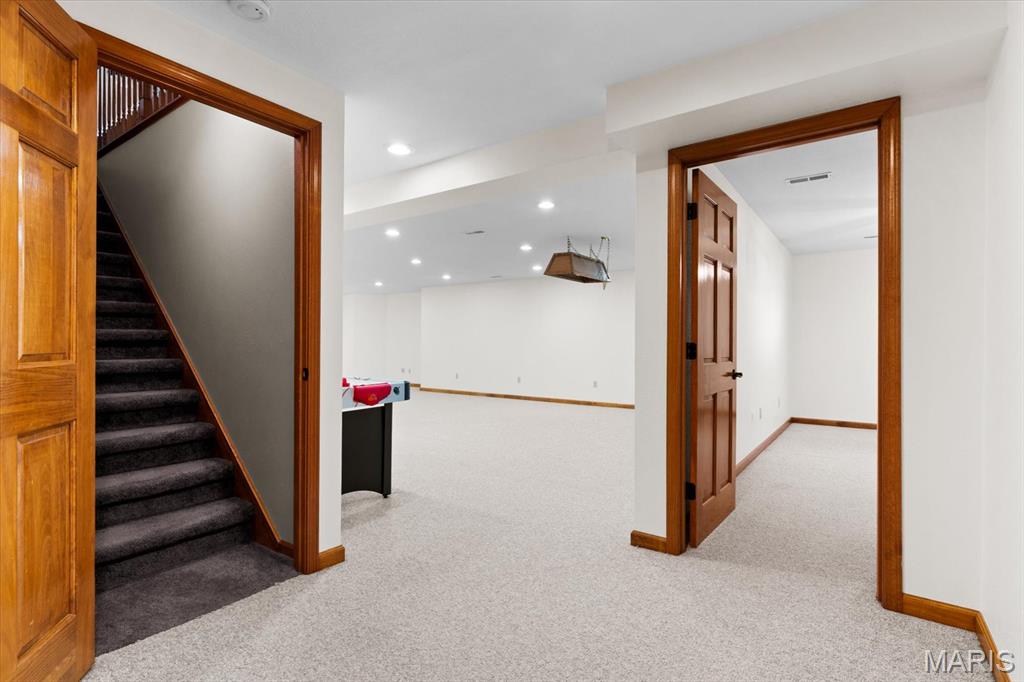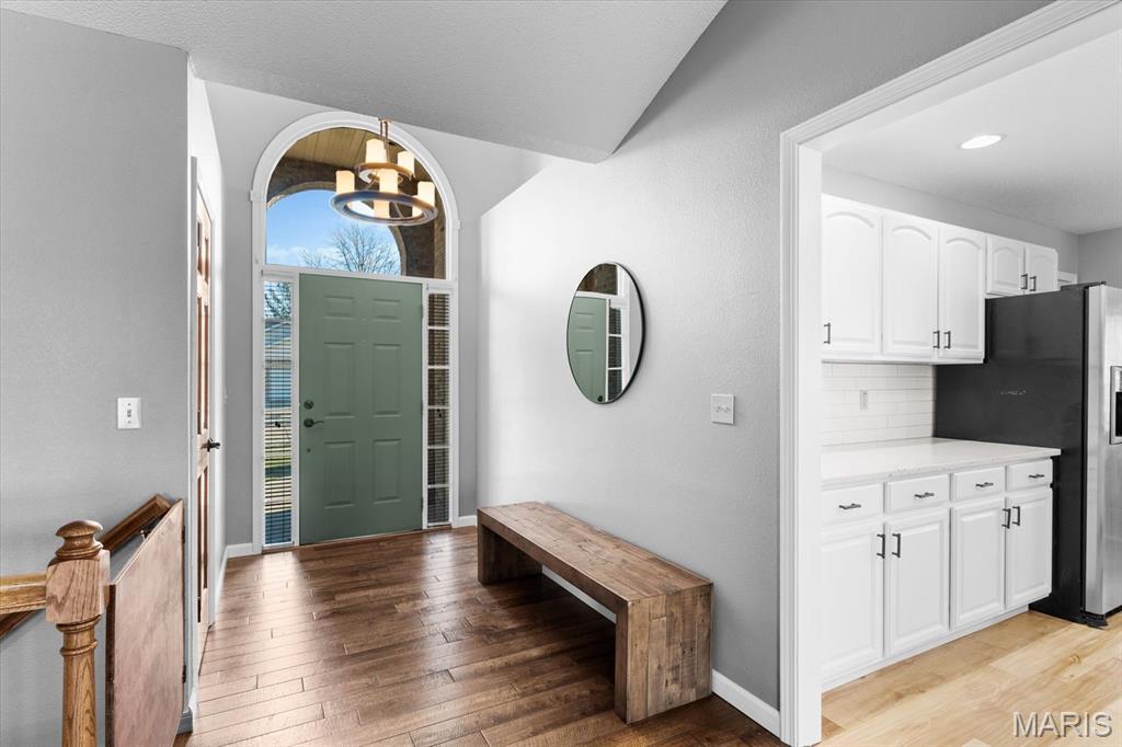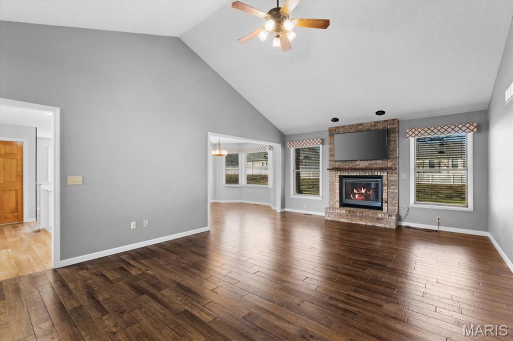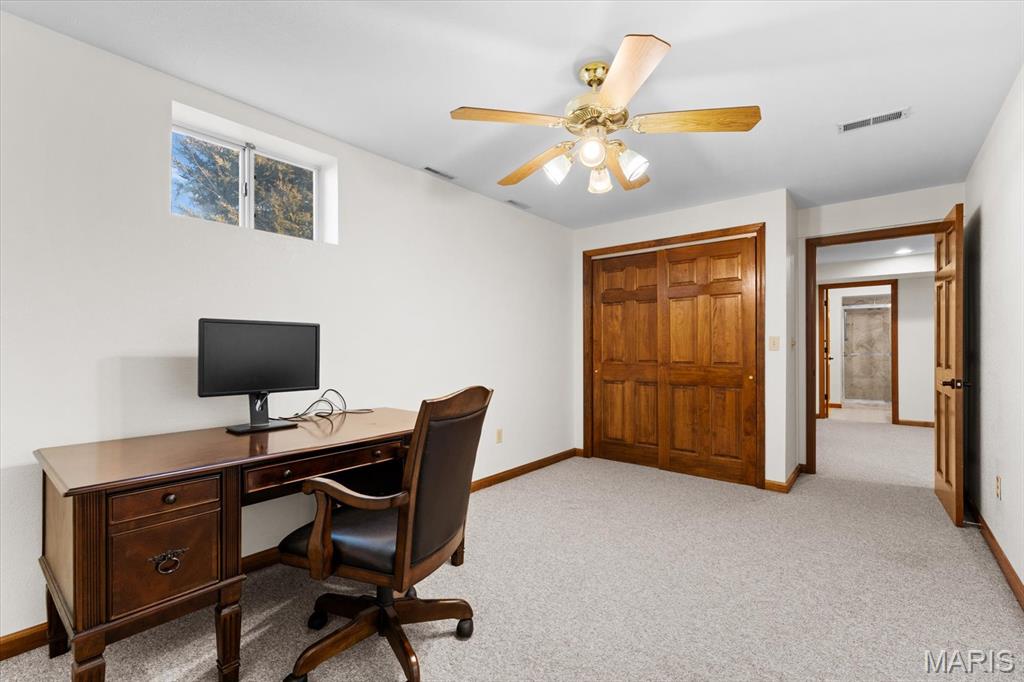 OPEN HOUSE SATURDAY, JAN. 24TH FROM 11-1 P.M.! From the moment you arrive, this majestic ALL BRICK home from top to bottom commands attention with its timeless curb appeal and undeniable pride of ownership. Built in 1997 and offering over 3,000 square feet of finished living space, this exceptional residence is located in the desirable Shady Springs subdivision and is ready to welcome its newest buyer. The arched brick entry, accented by an arched window and sidelights, leads you onto the covered front porch and into an inviting foyer showcasing beautifully updated flooring. The spacious living room features vaulted ceilings and a cozy gas fireplace and flows effortlessly into the formal dining room, highlighted by charming bay windows, perfect for hosting gatherings. The eat-in kitchen boasts abundant updated white cabinetry, granite countertops, updated flooring, a breakfast bar, and a breakfast nook, all refreshed in 2022/2023. A generously sized laundry room adds everyday convenience with washer and dryer included, shelving, and a fantastic folding area. The primary suite serves as a peaceful retreat with a tray ceiling, TV, spacious walk-in closet, and a beautifully updated 3/4 bathroom completed in 2018. Two additional bedrooms offer thoughtful design details, the second bedroom includes a built-in desk and storage area, while the third showcases vaulted ceilings, abundant natural light, and an arched window. The lower level expands your living space with a huge family room, ideal for evening entertaining or simply relaxing, along with a spacious 3/4 bathroom. A bonus room offers flexibility for an office, workout space, or additional bedroom (no egress window). Two separate storage rooms provide even more functionality and organization. The extra-deep two-car garage is equipped with slat-wall storage for a clutter-free space, plus built-in cabinetry for added convenience. Step outside to enjoy the thoughtfully designed outdoor living areas, including a concrete walkway to the backyard, an enclosed screened-in patio added in 2022, and a large 16 x 26 stamped concrete patio also completed in 2022, perfect for entertaining. A firepit invites cozy evenings outdoors, while the 12 x 12 storage shed with electric and concrete flooring offers excellent additional storage. Mature trees complete the backyard, providing privacy and a peaceful setting. Major updates include a roof replaced in 2014, HVAC in 2010 and hot water heater in 2018, offering added peace of mind. With space, style, thoughtful updates, and exceptional indoor and outdoor living, you won’t want to miss the opportunity to own this fantastic home! Location is truly a highlight of this home, offering walkability to all of Waterloo’s fantastic amenities including shopping, dining, and the many local festivals and community events the town is known for. Enjoy the charm and convenience of small-town living while also benefiting from easy and close access to Route 3, making commuting and travel a breeze. An unbeatable location you won’t want to miss!