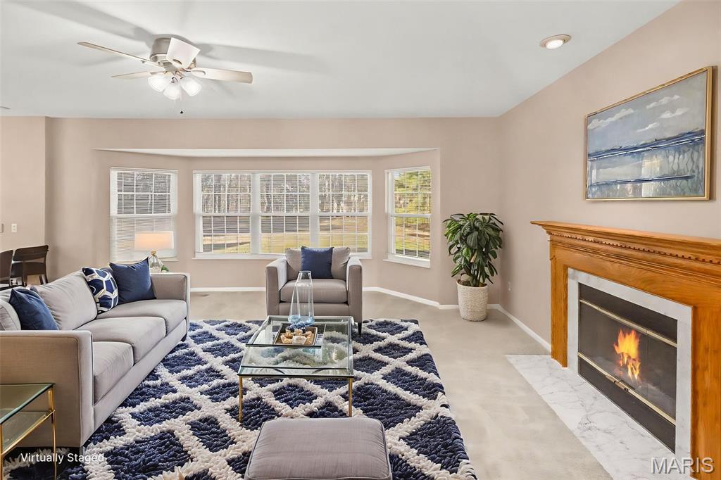 Experience the luxury offered only in the sought out Woodfield neighborhood with it's large lots and stately homes. Look no further than this sprawling 2900+ sqft, 2-story home featuring 4 expansive bedrooms, 3 baths, a 3 car garage, situated on a stunning 1 acre corner lot with thoughtful updates throughout—truly move-in ready. A dramatic and elegant foyer welcomes you upon entry, setting the tone for the home’s inviting layout. The recently refreshed kitchen shines with a crisp white finish on the cabinets, updated hardware, new garbage disposal, and modern lighting. Loads of storage and prep space can be found on the kitchen island, pantry, and buffet that opens to the family room perfect for entertaining. Also find the perfect coffee bar and drop zone as you enter from the garage. Light abounds through the skylights in the kitchen and bay windows in the family room boasting a wood burning fireplace. Find stunning vaulted ceilings in the eat in kitchen and family room. The formal dining room offers elegance with its coffered ceiling while the primary livingroom offers added space and versatility. Fresh paint on walls, ceilings, and trim brightens every room, complemented by new lighting fixtures and updated door knobs throughout the home. Both the half bath and main hall bath have been updated with classic white vanities and modern lighting for a clean, timeless look. Find a spacious walk in closet in the primary suite with a dramatic vaulted ceiling and private bathroom. Additional improvements include new roof in 22, water heater in 21, brand-new carpet throughout, a new garage door key pads, and waterproofing with added insulation in the crawl space for extra comfort and peace of mind. This well-maintained home blends style, space, and function—ready for its next owner! Stop by the Sunset Open House Friday the 23rd from 530 to 730pm.