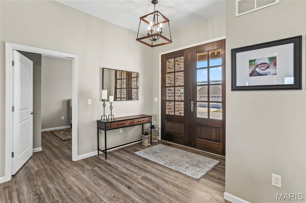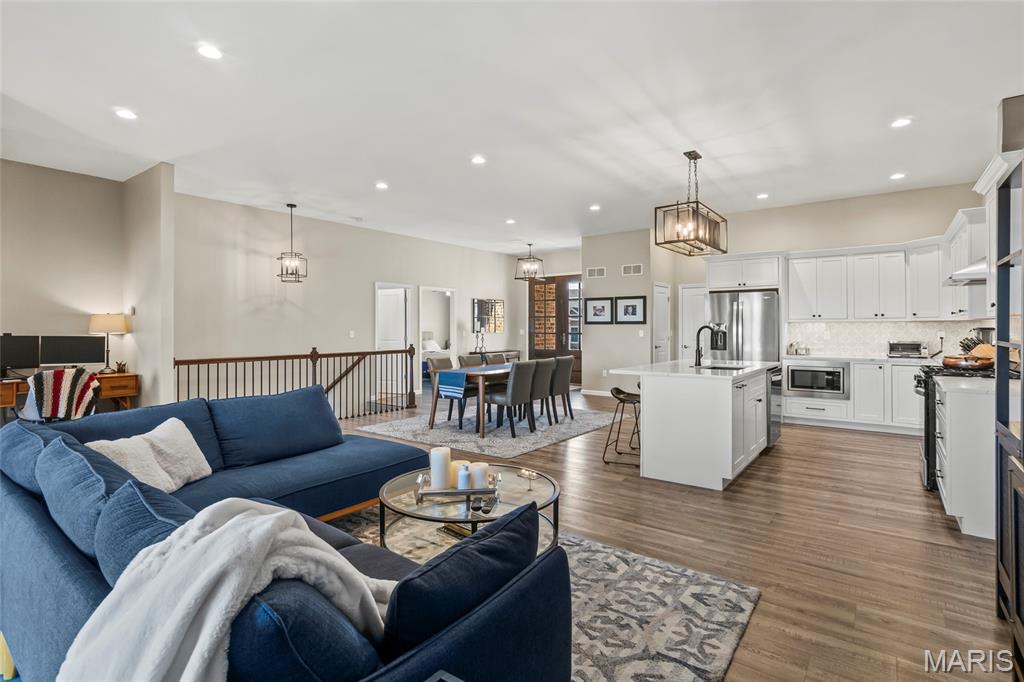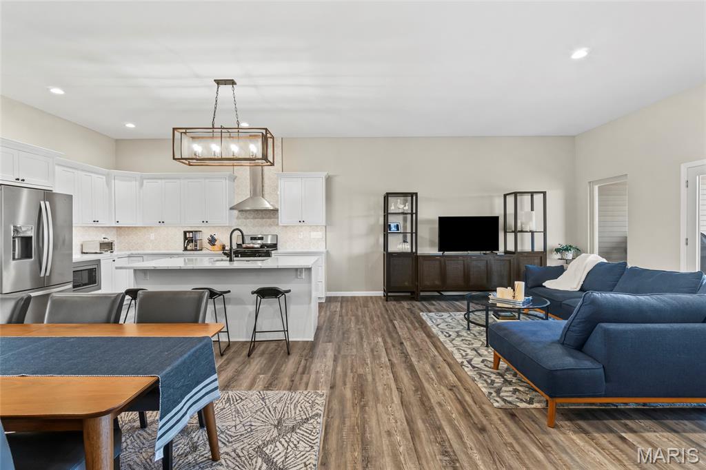 Beautiful brick villa nestled on the north end of Columbia with gorgeous views and scenic sunsets. This sprawling attached villa is less than 5 years old, so you can enjoy worry free living while skipping the wait of new construction. Inside, craftsmanship can be found throughout. The main level has an open concept and includes the custom kitchen with granite counter-tops and center island w/ breakfast bar, white shaker cabinets, recessed lighting with beautiful fixtures, pantry, stainless appliances and separate main floor laundry room. The primary suite has wide double door entry, deep walk-in closet, and en-suite full bath with luxury tub, dual sink vanity, and walk-in shower. A guest bedroom and full hall bath can also be found on the main level. Walk out to a covered rear patio to soak up some sun and relax on quite nights. The lower level has a 9ft pour and has been finished to include a large rec room, 3rd bedroom and 3rd full bath, while still have tons of extra storage in a large unfinished area with room for expansion. This one owner home is fresh, clean and move-in ready. Why spend more on new construction when this Villa is in pristine condition & conveniently located on the North End Of Columbia.