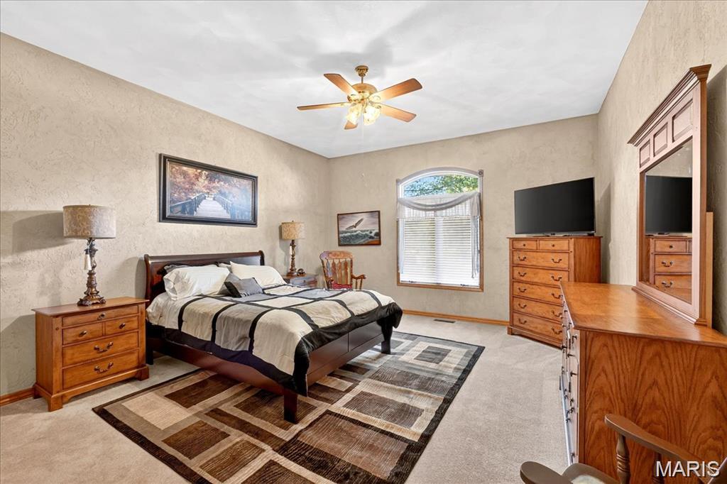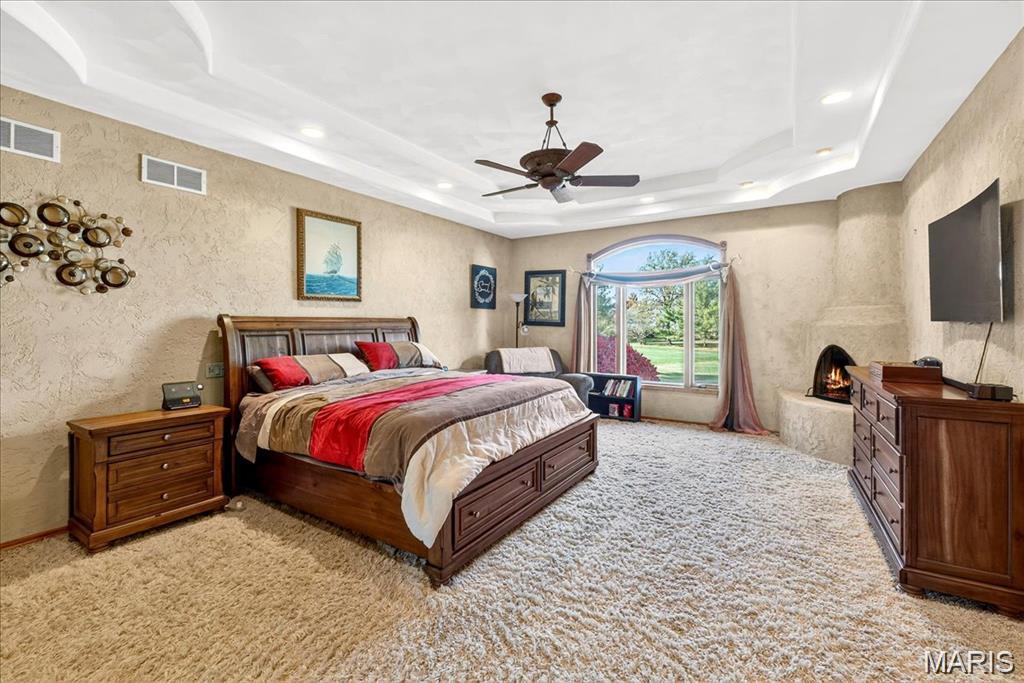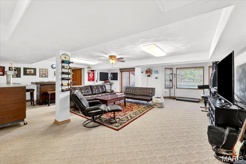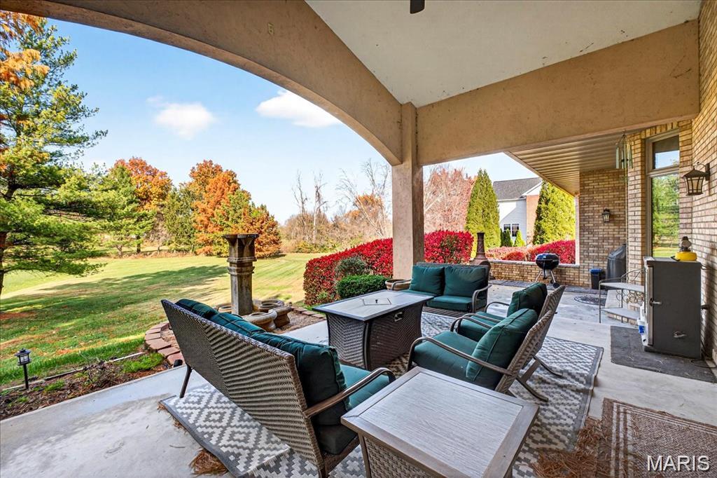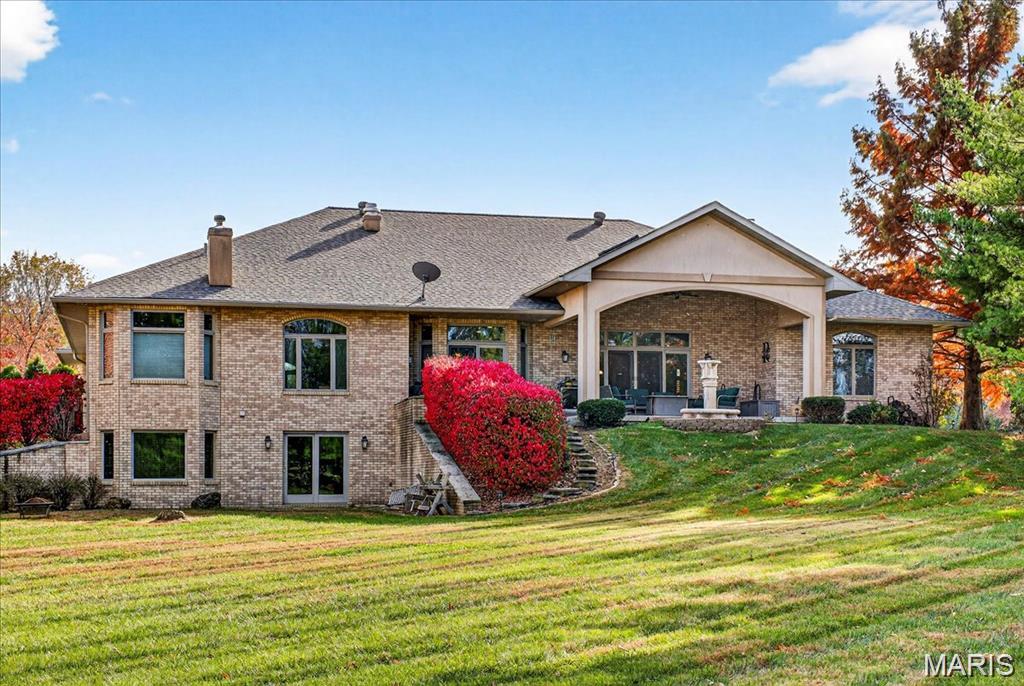 This stunning custom and One of Kind, 3 bedroom home blends top-tier craftsmanship with premium finishes throughout. Situated on an acre lot in the prestigious Gedern Subdivision, you are just minutes from St Louis and the vibrant Downtown Historic Main Street of Columbia. Perfect first impression with the beautiful all brick exterior & extensive professional landscaping. Step into the foyer to find the Den (could be a formal dining room or 4th bedroom) on your right featuring hardwood floors & built in cabinets. The spacious living room features soaring vaulted ceiling, corner stone fireplace & doors leading you to the extended covered patio overlooking the very private and huge back lawn. Impressive open concept kitchen boasts slate floors, loads of custom solid wood cabinets, 2 pantries, breakfast bar, dining area, gourmet stove & stainless appliances that will stay. Split bedroom floor plan offers the Primary suite offers two closets- 1 customized walk-in with tons of storage space, corner fireplace & spa-like bath w/ dual vanity, jacuzzi tub & separate shower. On the opposite side of the home you will find 2 generously sized bedrooms and a full bath. Also on the main level is the Laundry room with more storage space & guest bath. Make your way downstairs to the cozy, yet spacious family room w/ wet bar, full bathroom, storage closet & walkout to the private patio overlooking your amazing backyard offering scenic views. Storage is abundant in the massive unfinished area with enough room to create your very own theater room or wine cellar or the space you have been dreaming of. Oversized, side entry 3 car garage, circle drive and so much more. Better than new construction- the amount of finished living space, mature landscaping, PRIVATE back yard perfect for a pool, and MOVE IN READY!