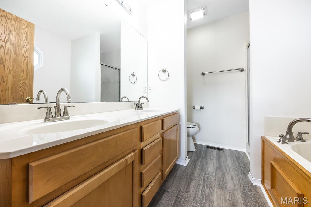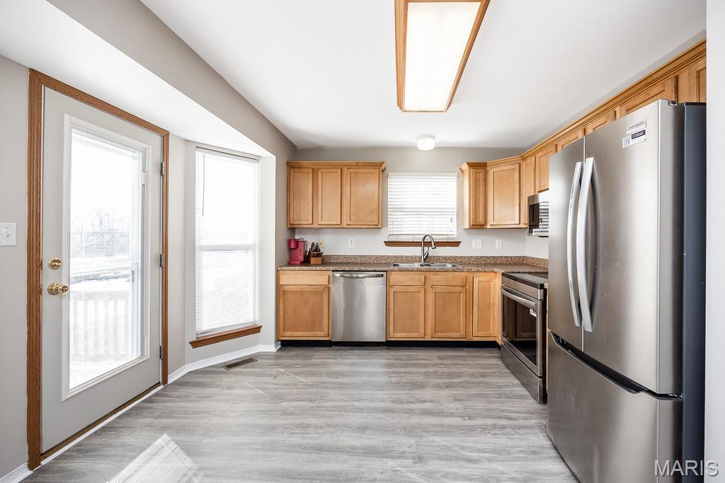 Tons of updates in the past few months include kitchen appliances, luxury vinyl plank flooring throughout, deck, hot water heater, roof, bathroom vanity, and basement remodel! This charming home includes a main level primary suite and main level laundry, as well as 3 other bedrooms and 1 other full bath on the first floor. The finished basement includes a 5th bedroom, full bath, family/game room, and huge storage room. This home is ready for its new owners, schedule a showing today!