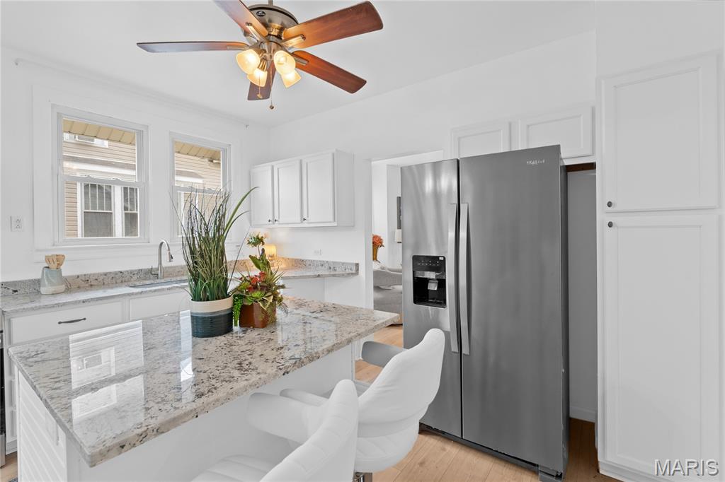 Welcome to 1305 Raab Ave in Belleville, this move-in ready 3 Bedroom, 2 bathroom, home has been thoughtfully updated from top to bottom. Recent improvements include new flooring and fresh paint throughout, creating a clean, modern feel. The remodeled kitchen features granite countertops, refreshed cabinetry, and new light fixtures, while the bathrooms have been tastefully renovated with contemporary finishes. Additional living space can be found in the basement, offering some finished square footage ideal for a rec room, office, or flex space, along with a separate storage area. Outside, enjoy a fully fenced yard perfect for entertaining or pets, plus an oversized two-car detached garage providing ample parking and workspace. A great combination of updates, functionality, and value—schedule your showing today.