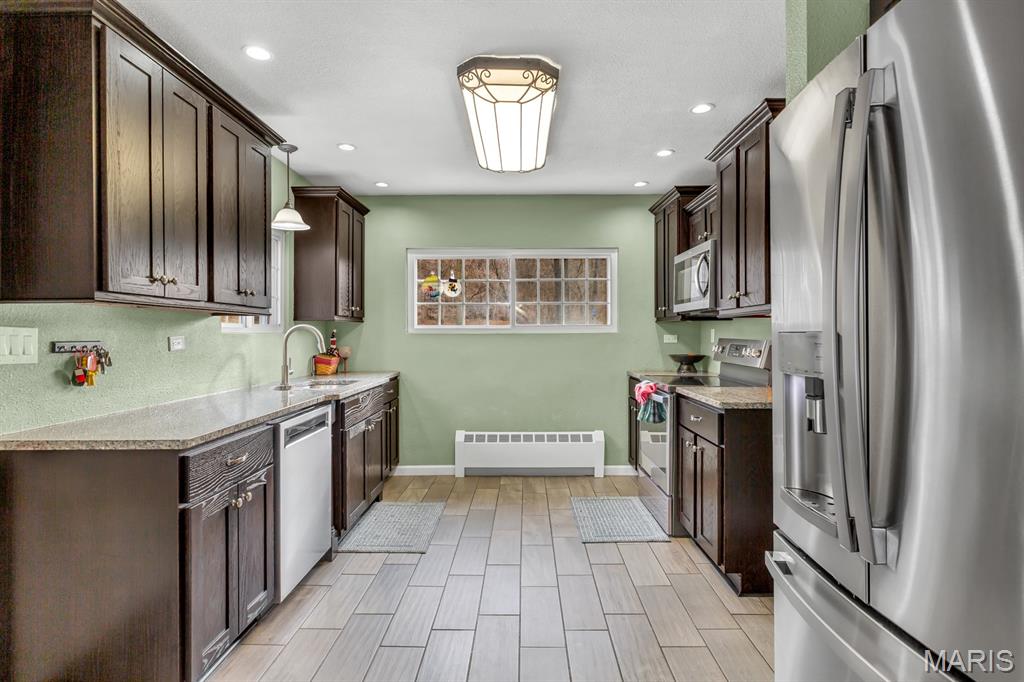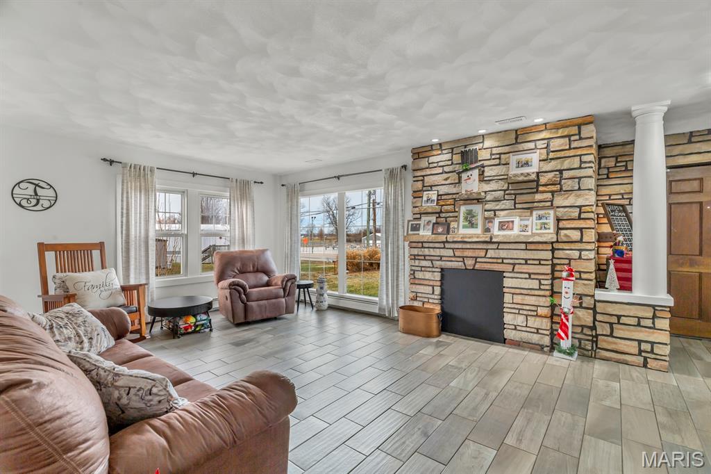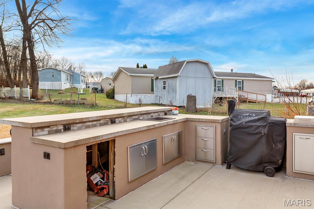 Move-in ready 3 bedroom, 3 bathroom home set on over 3 acres, offering privacy, space, and functional living both indoors and out. The main level features a kitchen with stainless steel appliances that flows into the dining area, creating an ideal space for everyday living and entertaining. A large living room provides a comfortable gathering area. Upstairs you will find 2 additional bedrooms and bathroom. This home has a one car garage with a convenient breezeway connecting the garage to the home. The finished basement offers a spacious family room, a full bathroom, and walk-up access to the outdoor patio and kitchen area. This level was previously used as a primary bedroom and includes a luxury-style bathroom, making it ideal for added privacy, guest space, or extended living. When you walk outside you will find a large, flat backyard with ample room for recreation, entertaining, or future use. The back patio is designed for an outdoor kitchen, with most components already in place and awaiting final hookups. A large outbuilding provides excellent storage or workshop space, adding even more value to this versatile property.