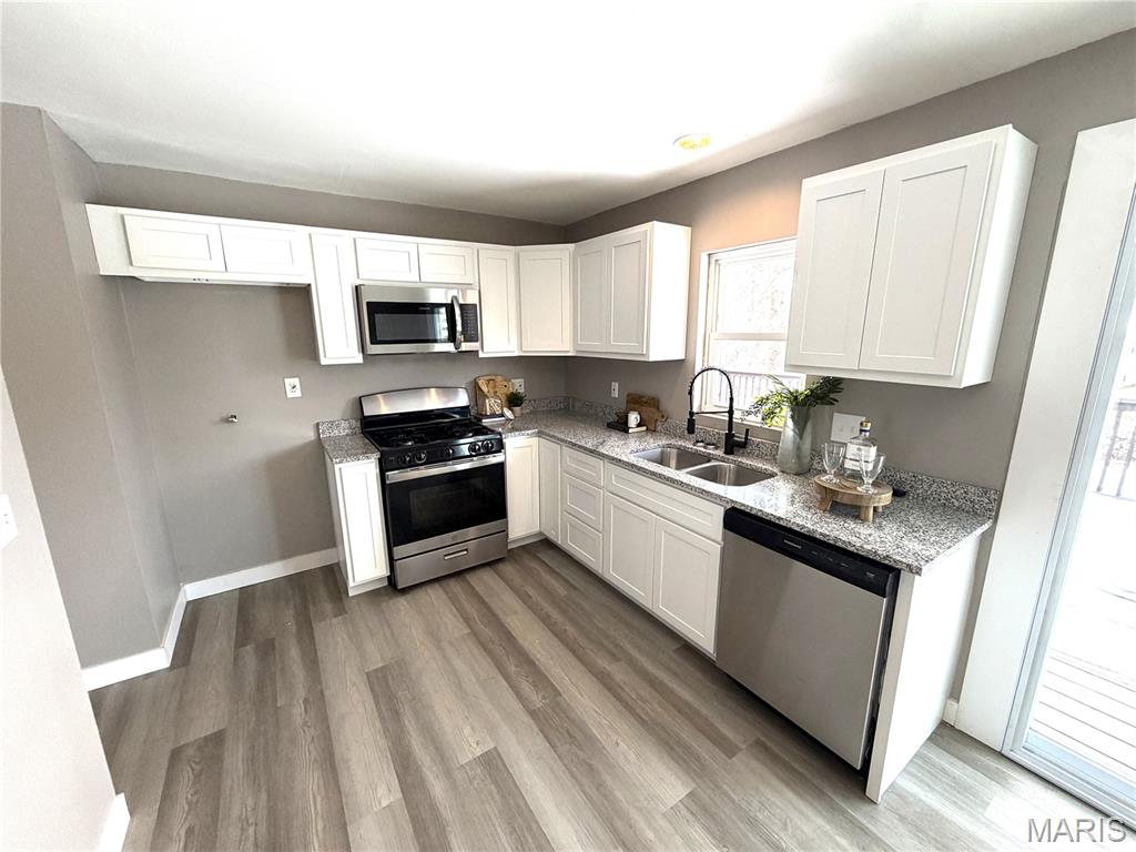Welcome to this charming 4-bedroom, 1.5-bath home featuring a walk-out basement and many updates throughout! Step into the beautifully updated kitchen, complete with new cabinets, granite countertops, a dishwasher, microwave, and luxury vinyl plank flooring. You’ll also appreciate the fresh interior paint and luxury vinyl plank flooring that runs through most of the home. Additional updates include a new HVAC system (2024), water heater (2024), and roof (2025). The home offers an attached one-car garage and a fully fenced backyard with a shed, providing both privacy and functionality. Conveniently located near O’Fallon Sports Park with easy access to SAFB, I-64, and shopping.