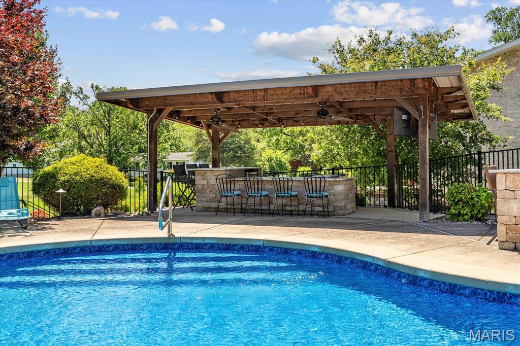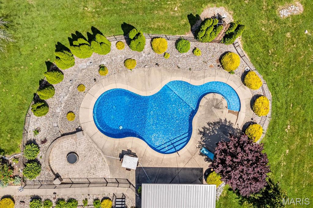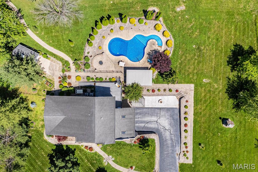 STUNNING all-brick, custom-built 1.5-story home on a private 1.24-acre lot! This exceptional property offers 4 bedrooms, 5 bathrooms, a 2-car garage, and an abundance of high-end features rarely found in one home. Handicap accessible and thoughtfully designed with an in-home elevator providing access to all three levels. The main level, with a NEW HVAC system, showcases gleaming hardwood floors, elevated ceiling heights, and a dedicated office with laundry and deck access. The impressive primary suite is conveniently located on the main level and features a spa-like 5-piece en-suite, walk-in closet, and private deck access. The gourmet kitchen delivers supreme functionality with ample storage and flows seamlessly through French doors into the main living room and formal dining area — both offering covered patio access, perfect for indoor-outdoor living. A convenient additional half bath completes the main level. Upstairs, you’ll find three generously sized guest bedrooms, two full bathrooms, and a spacious foyer overlooking the main level with balcony access. The walkout lower level is ideal for entertaining or multi-generational living, featuring a kitchenette, half bath, custom wood wet bar, and a large secondary living space with endless possibilities. Step outside to your private backyard oasis — designed for unforgettable gatherings with a custom in-ground pool (w/ new salt cell), pool shed, outdoor bar, and multiple fire pits!