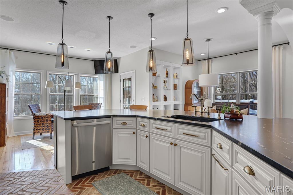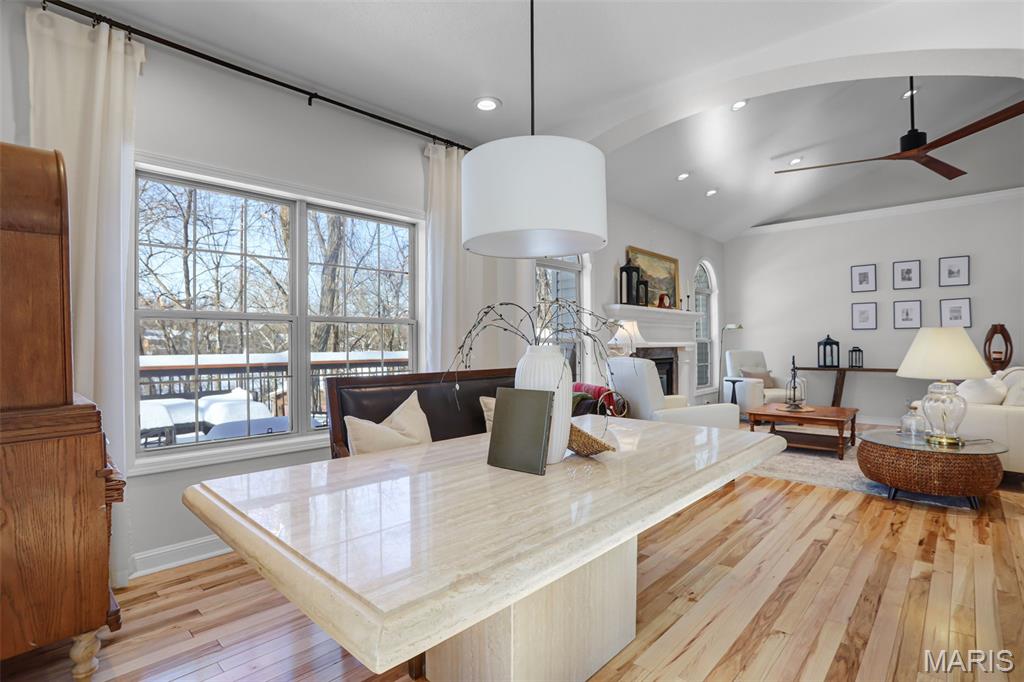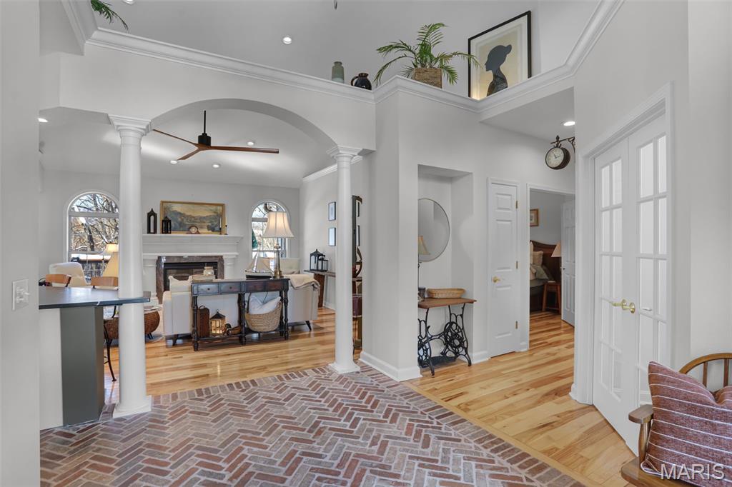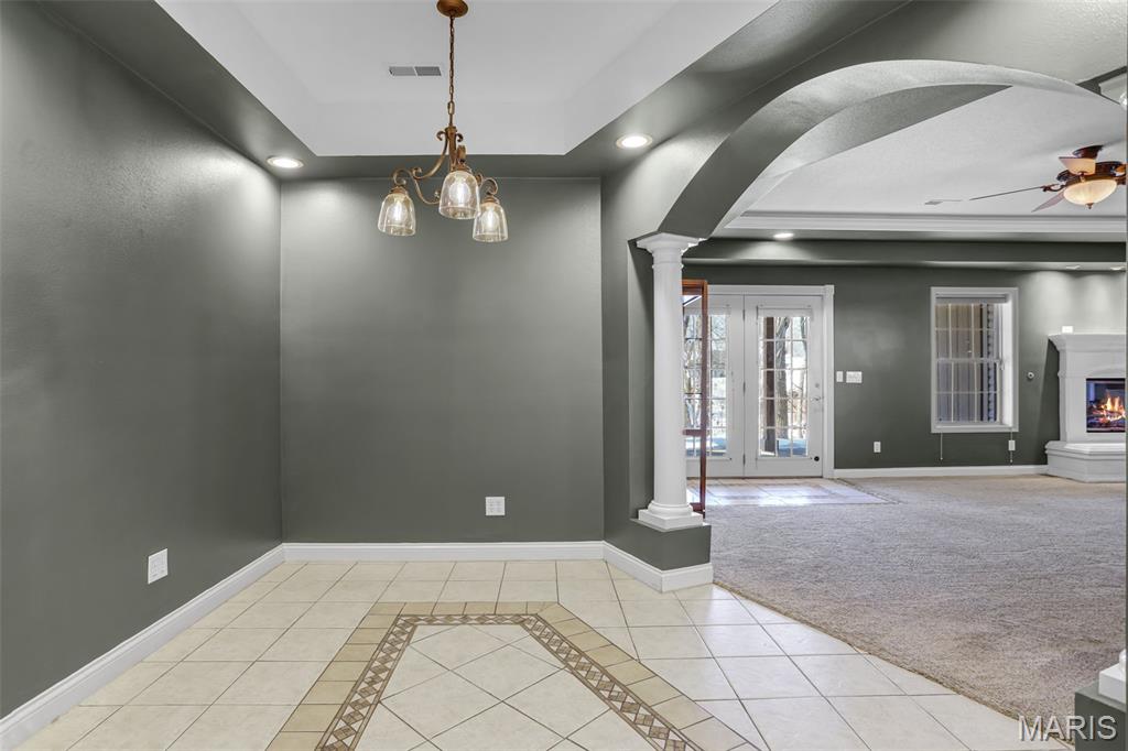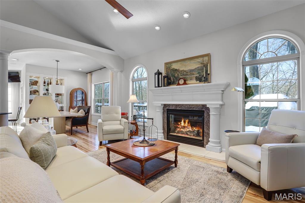 Grand opening open house will be Friday evening as well as Sunday afternoon! Located in the desirable Knightsbridge community, this turn-key 4-bedroom, 3-bath home offers a rare blend of comfort, character, and complete luxury. The fully updated kitchen features new cabinets, appliances, and a massive quartzite countertop, with brick flooring that flows into the foyer. Vaulted ceilings showcase unique arches and columns, adding architectural interest throughout. The brand new kitchen has been thoughtfully designed and lit to be a Chef or Host's dream space. Enjoy lake views in two directions, a private wooded backyard, and a screened-in porch that opens to a large deck overlooking both ponds, perfect for relaxing or entertaining. Both upstairs bathrooms have been updated, including a primary suite with a soaker tub. The primary bedroom is very spacious complete with beautiful built-in cabinets & and fireplace, as well as a relaxing reading nook. Major updates include a new roof, gutters, water heater, and regularly maintained HVAC. Basement has been fully finished adding extra space including a full bathroom, a full kitchen, and a second laundry room. Additional highlights include LED lighting with amber accent trim, in-ceiling speakers upstairs and in the garage, irrigation, and a garage with a drain and hot and cold water. A home designed to elevate everyday living and ready for its next owner to enjoy from day one. Grand opening open house will be Friday evening as well as Sunday afternoon!