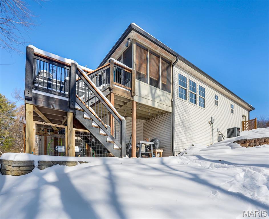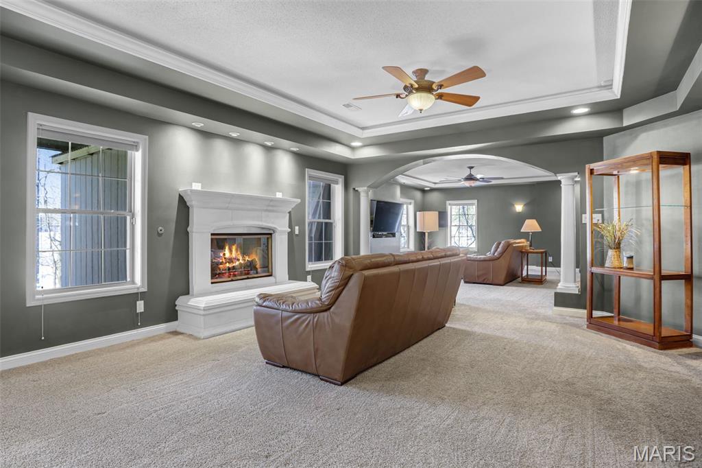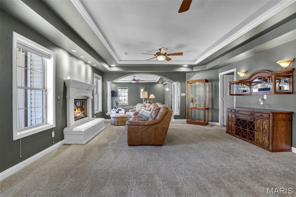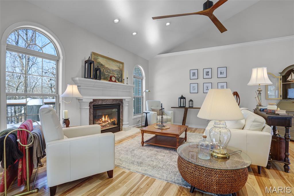 Grand opening open house will be Friday evening as well as Sunday afternoon! Located in the desirable Knightsbridge community, this turn-key 4-bedroom, 3-bath home offers a rare blend of comfort, character, and complete luxury. The fully updated kitchen features new cabinets, appliances, and a massive quartzite countertop, with brick flooring that flows into the foyer. Vaulted ceilings showcase unique arches and columns, adding architectural interest throughout. The brand new kitchen has been thoughtfully designed and lit to be a Chef or Host's dream space. Enjoy lake views in two directions, a private wooded backyard, and a screened-in porch that opens to a large deck overlooking both ponds, perfect for relaxing or entertaining. Both upstairs bathrooms have been updated, including a primary suite with a soaker tub. The primary bedroom is very spacious complete with beautiful built-in cabinets & and fireplace, as well as a relaxing reading nook. Major updates include a new roof, gutters, water heater, and regularly maintained HVAC. Basement has been fully finished adding extra space including a full bathroom, a full kitchen, and a second laundry room. Additional highlights include LED lighting with amber accent trim, in-ceiling speakers upstairs and in the garage, irrigation, and a garage with a drain and hot and cold water. A home designed to elevate everyday living and ready for its next owner to enjoy from day one. Grand opening open house will be Friday evening as well as Sunday afternoon!