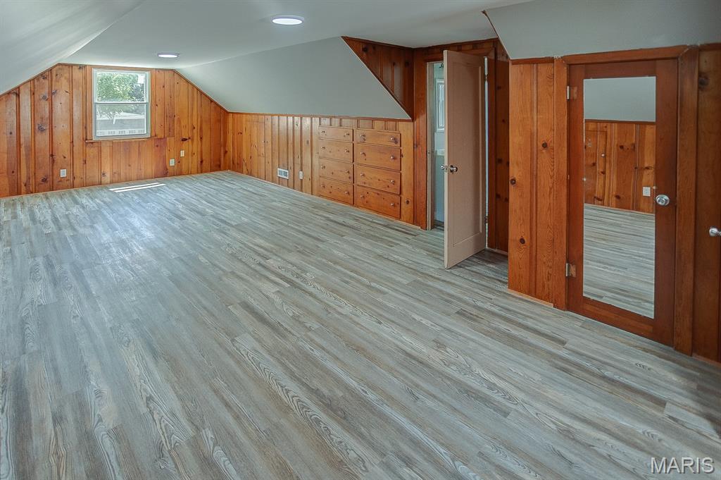 Charming one-and-a-half-story cottage on a corner lot blends timeless character with modern updates throughout. The open living and dining area features a cozy fireplace and flows beautifully into the updated kitchen, complete with quartz countertops, stainless steel appliances, porcelain tile, under-cabinet lighting, and durable vinyl plank flooring. The main level offers a private suite with an additional bonus room—perfect for a home office, nursery, or sitting area—along with stylishly updated bathrooms. Upstairs, you’ll find a spacious bedroom with warm cedar paneling and a full bath, creating a comfortable and private retreat. Major systems were all replaced in 2022, including HVAC, water heater, electrical, plumbing, and roof, offering peace of mind for years to come. The full unfinished basement has been professionally waterproofed and provides excellent storage or future finishing potential. Outside, enjoy a side enclosed porch, privacy-fenced yard, detached one-car garage, and the added appeal of a corner lot. This move-in-ready home is full of charm, functionality, and thoughtful upgrades. MAKE AN APPOINTMENT TODAY!
