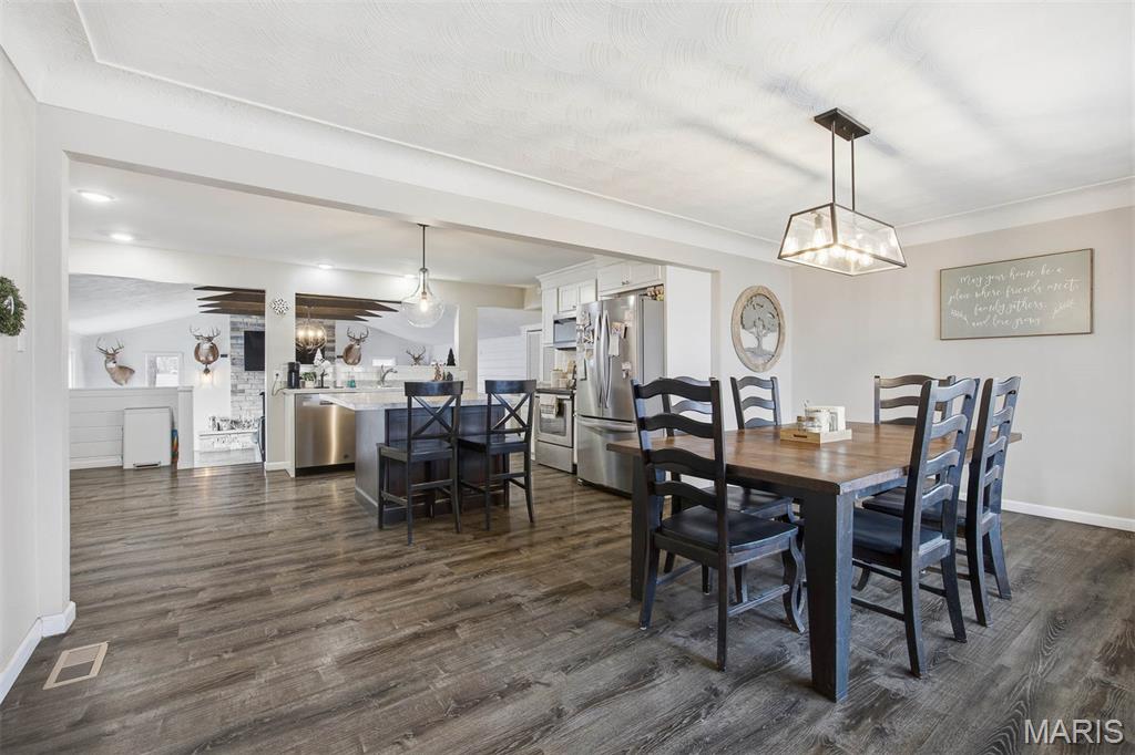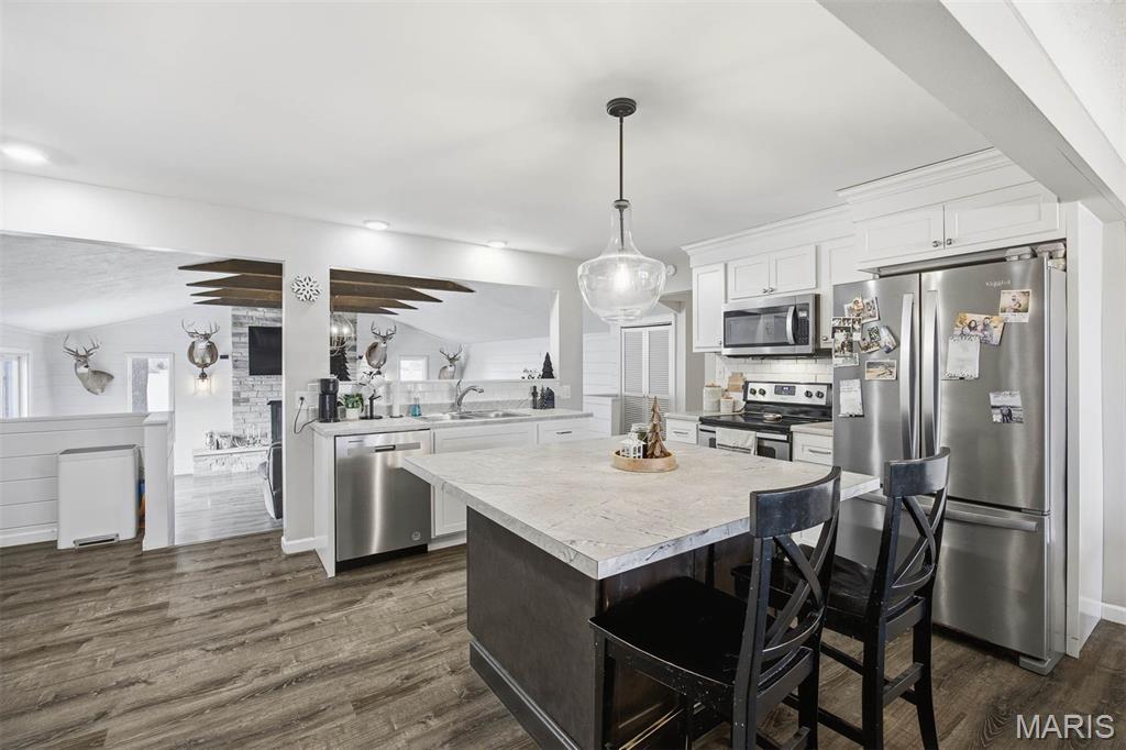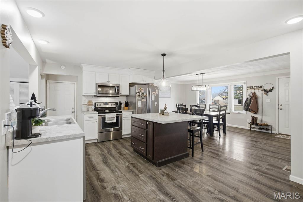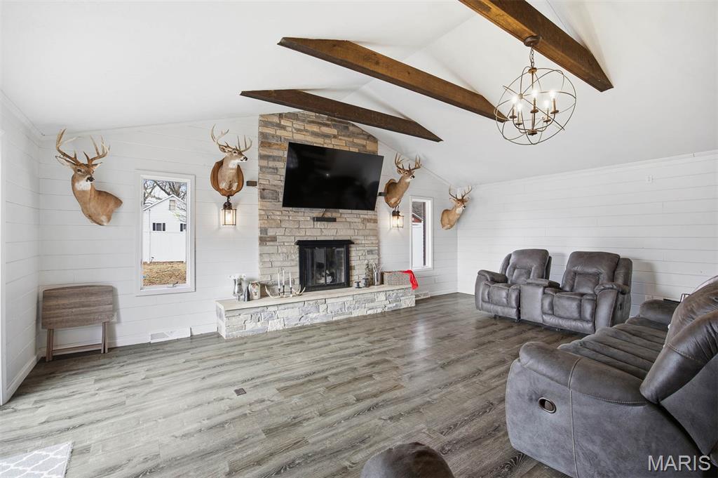 Welcome to this move-in-ready home that offers 3 bedrooms and 3 baths, featuring newer white kitchen cabinets, Stainless Steel Appliances and beautifully updated bathrooms with custom tile showers. Large family room with floor-to-ceiling stone fireplace takes center stage beneath warm, beamed ceilings. The finished basement adds flexible living space, while the spacious fenced backyard invites outdoor enjoyment. New roof in 2024, All wrapped in classic full-brick construction, This home blends timeless character with modern comfort—ready to welcome you home.