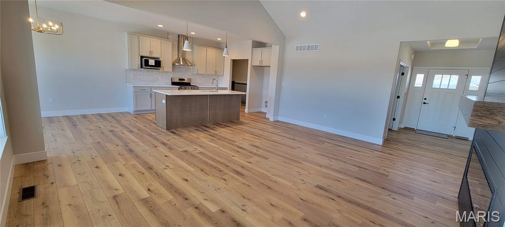 Penn Builders NEW Construction, located minutes from "I" Hwy access on a Daylight Cul-de-sac Lot that features a Composite @12x17 Covered Deck with fan/light & steps to a Stamped Concrete @12x20 Patio. Preliminary Specs/Subject to Changes. 4 Bed + Office/3.5 Baths; Split BR/Open Floor Plan; 9' foundation/9' main level walls with High Vault in LR & Accented Tray Ceiling in the Primary BR; Electric Fireplace w/Mantle and Shiplap Face to ceiling; Custom Wood Shelving adjacent to Fireplace; Craftsman style Front Door; full glass steel door to deck; Stone Wainscot across entire front, with Covered @6x25 Front Porch w/Craftsman style Columns. ZIP system sheeting on exterior framed walls; House insulation R-13/R45 blown fiberglass in ceiling; Certainteed Landmark Architectural Shingles; Quaker Manchester low-e, tilt-wash, single-hung windows; Farmhouse style interior trim; upgraded RigidCore LVP flooring throughout main area + Laundry & Hall Bath; Tile flooring in Primary & Basement Baths. Kitchen includes Quartz c-tops/tiled backsplash; large island w/counter seating; stainless steel dishwasher, microwave, 5 burner gas stove/oven & hood; and walk-in pantry. Homecrest Arbor cabs in Kitchen & Baths with soft close dovetail drawers/soft close cabinet doors; upgraded Delta faucets throughout home. Cultured Marble c-tops in Baths. Double sinks; linen cabinet; window; large tiled shower with showerhead & overhead rain can; and premium shower door with towel bar in Primary Bath. Clerestory Window & Linen Closet in Full Hall Bath. Main Floor Laundry features built-in folding table; electrical outlets; dryer vent & water hookups. Drop Zone inside garage entry. Stair lights along the staircase to the daylight/lookout basement, which features a FR; BR w/Egress & Walk-In Closet; Full Bath; and large unfinished storage area. Finished/insulated (R11 walls/R19 ceiling) Garage with Wi-Fi belt driven openers, keypad & water spigot (Plus 2 exterior spigots). 200 amp Electric; Hi-Eff HVAC; 50-gal commercial grade water heater; plumbed for water softener. When weather permits, front & side yards will be sodded & landscaped; buried downspouts. C&Rs available at: https://www.rlpdevelopment.com/subdivision/hampton-glen