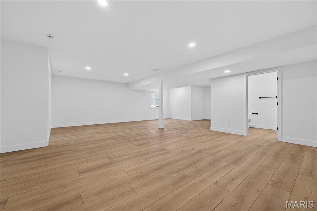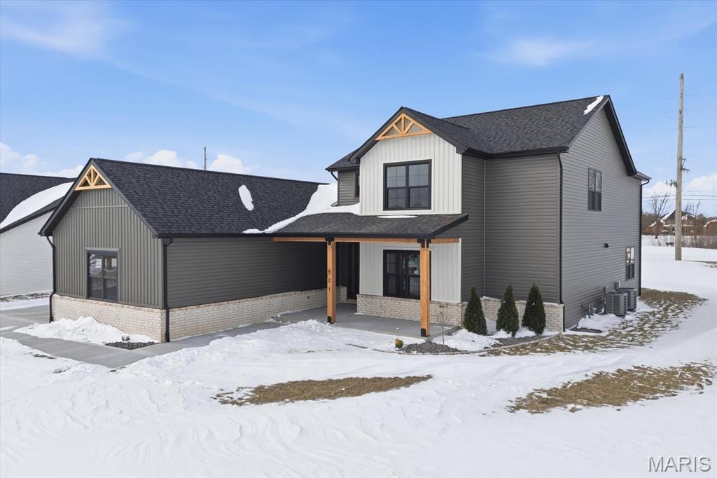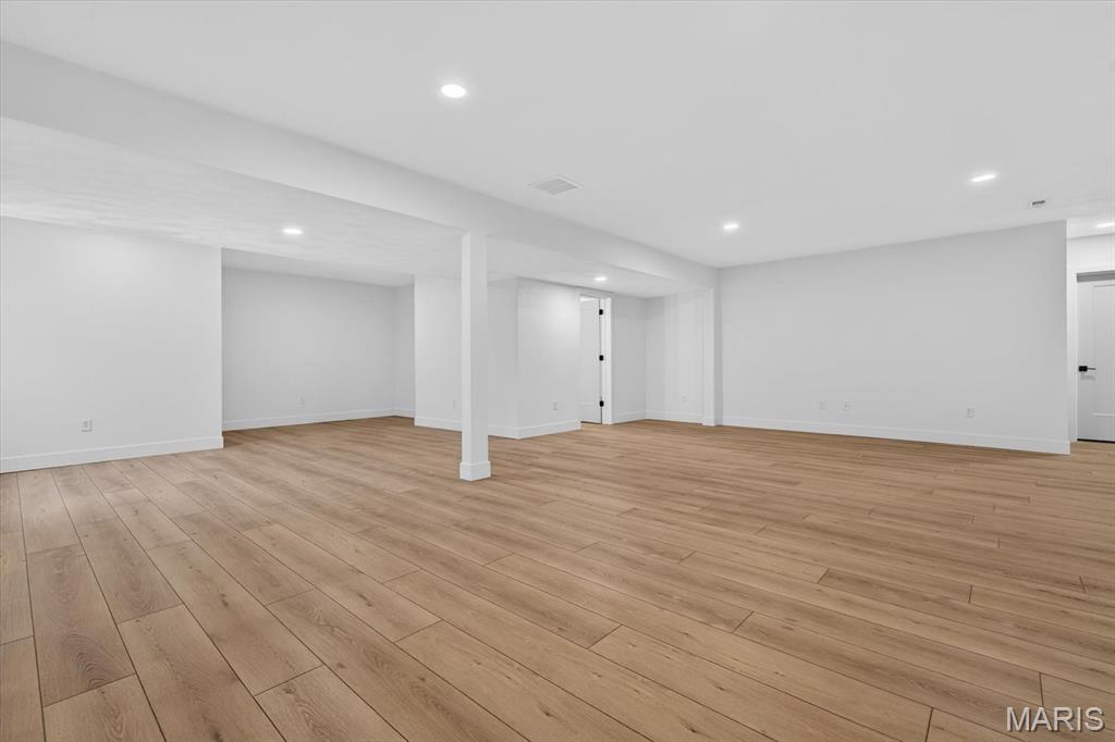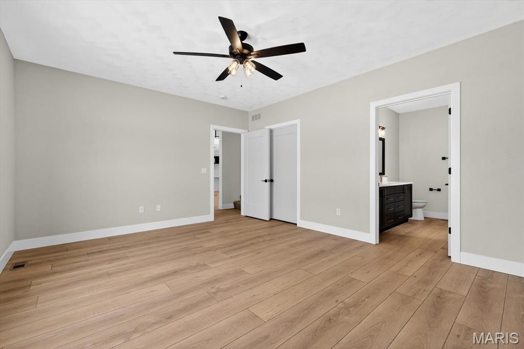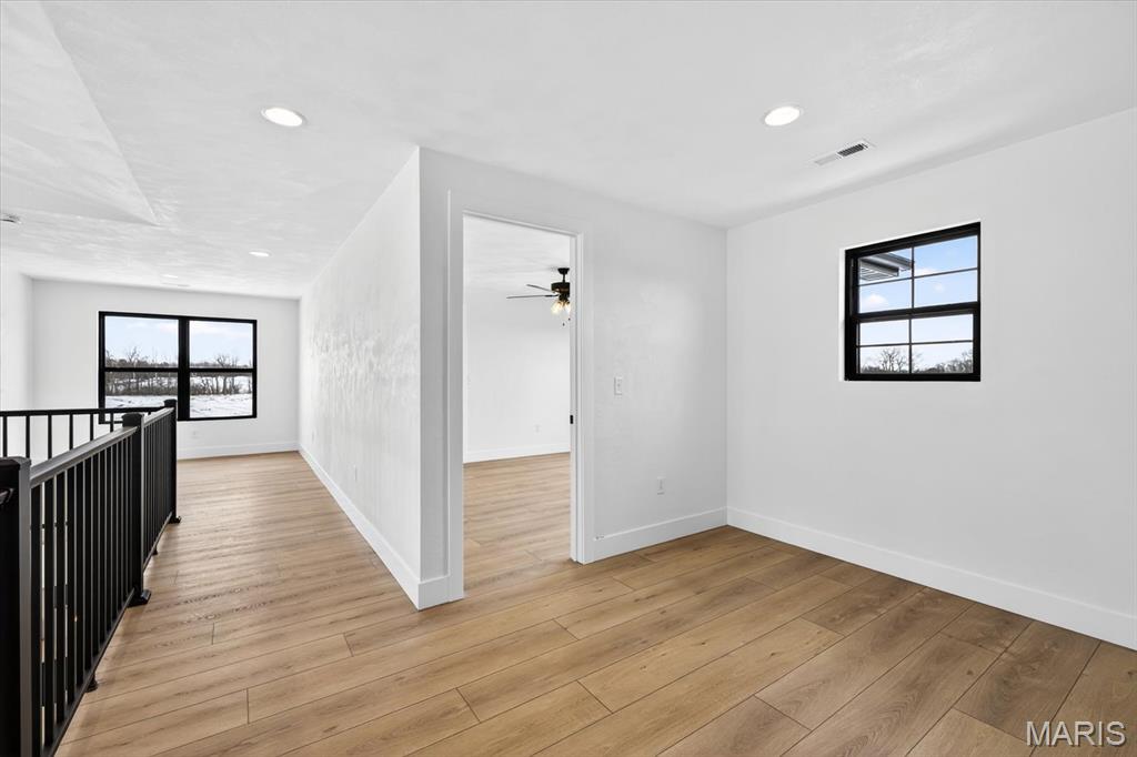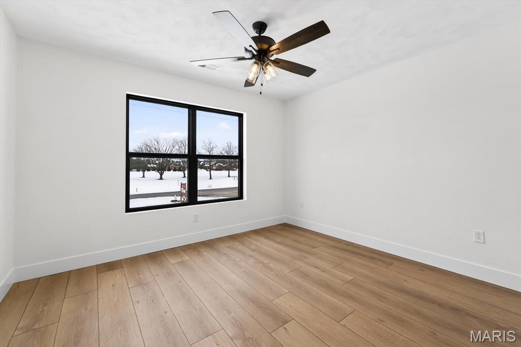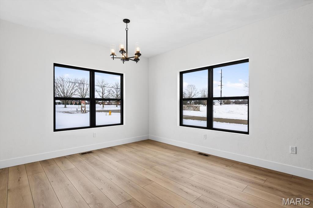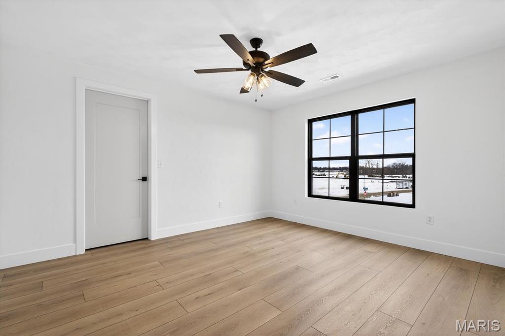 Introducing the first OAK floor plan with a stunning side-load 3-car garage—built by MJ Holland! This custom home impresses with 2x6 exterior framing, solid core doors, wide plank flooring, zoned HVAC, commercial-grade windows, and ceilings soaring 9 ft or higher. The main level features a spacious living room with a 22-ft ceiling and gas fireplace, a flexible bonus room (perfect for an office or formal dining), a mudroom leading to a separate laundry, and a chef’s kitchen with quartz counters and commercial cabinetry. The luxurious main-floor primary suite includes a soaking tub and separate shower. Upstairs offers two oversized bedrooms, a full bath, and two bonus areas overlooking the main level. The lower level includes an unfinished basement with two egress windows, bath rough-ins, and potential for 1,320± sq ft of additional living space. The new side-load garage boasts cathedral ceilings and ample room. Located in the sought-after Augusta Greens and O'Fallon Schools.