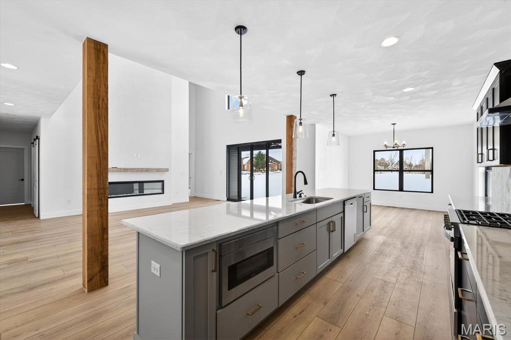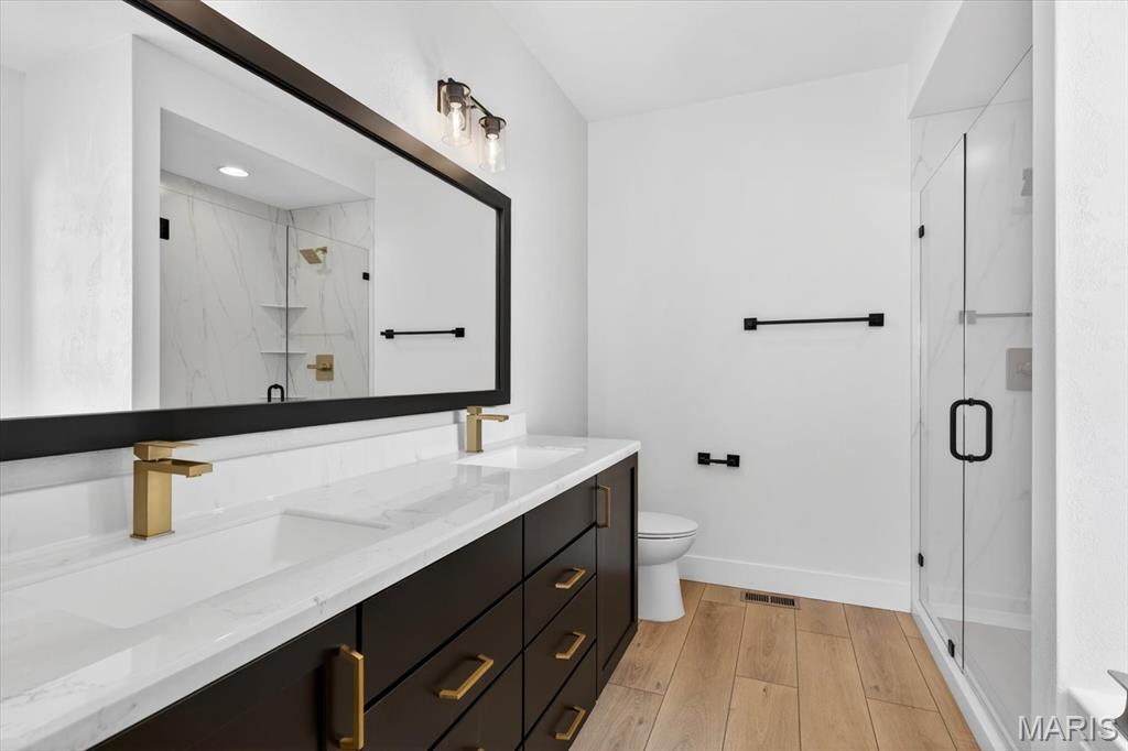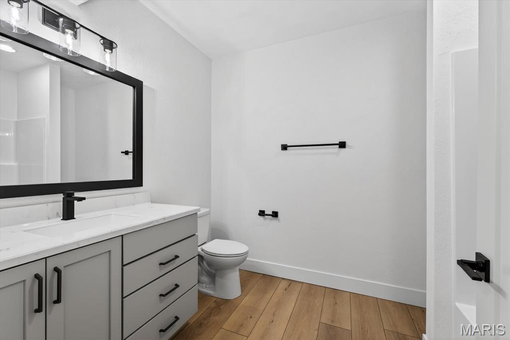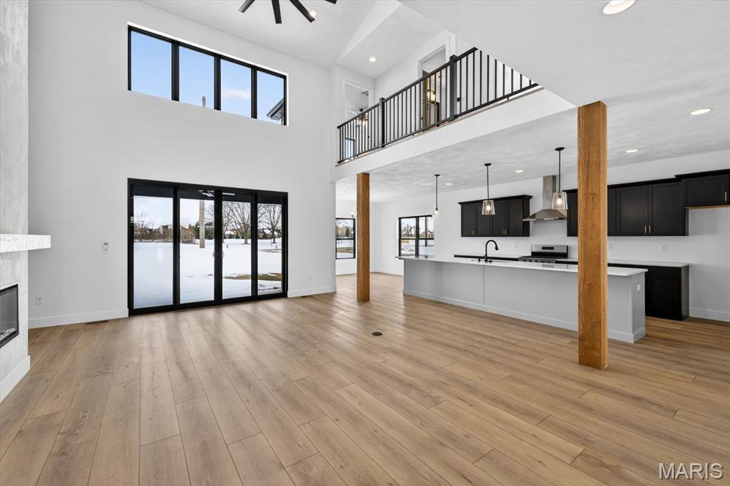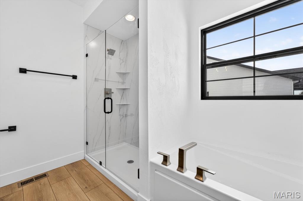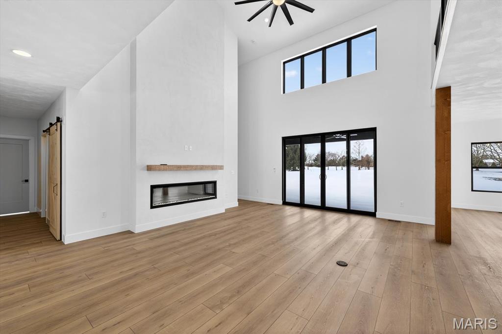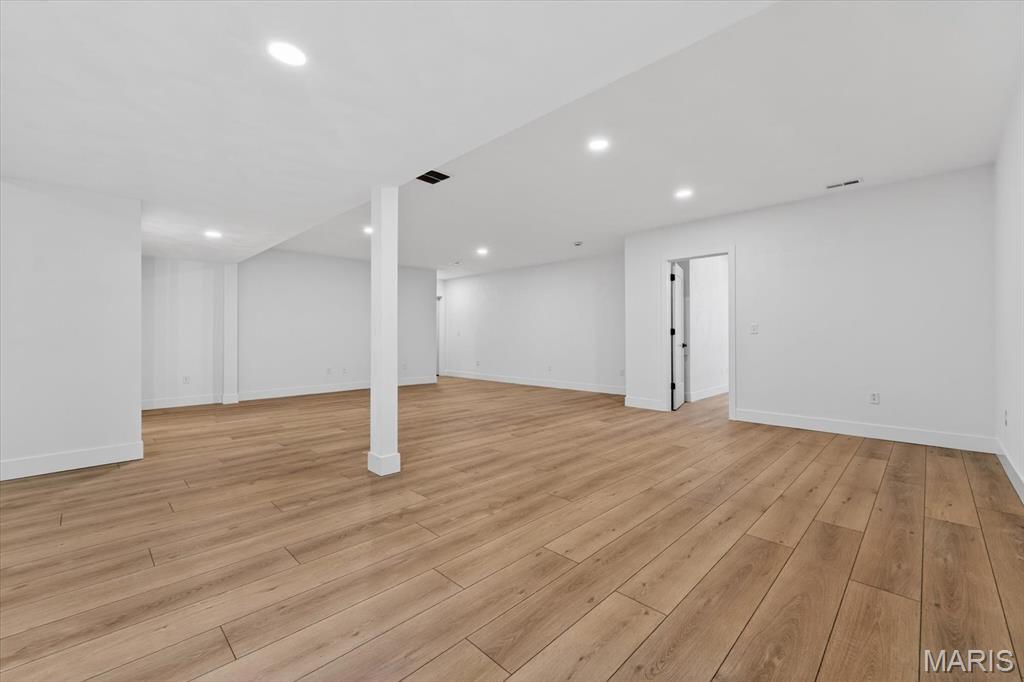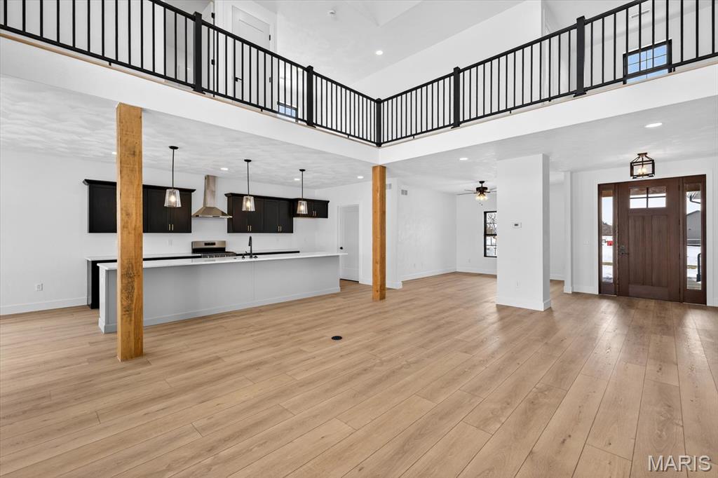 Introducing the first OAK floor plan with a stunning side-load 3-car garage—built by MJ Holland! This custom home impresses with 2x6 exterior framing, solid core doors, wide plank flooring, zoned HVAC, commercial-grade windows, and ceilings soaring 9 ft or higher. The main level features a spacious living room with a 22-ft ceiling and gas fireplace, a flexible bonus room (perfect for an office or formal dining), a mudroom leading to a separate laundry, and a chef’s kitchen with quartz counters and commercial cabinetry. The luxurious main-floor primary suite includes a soaking tub and separate shower. Upstairs offers two oversized bedrooms, a full bath, and two bonus areas overlooking the main level. The lower level includes an unfinished basement with two egress windows, bath rough-ins, and potential for 1,320± sq ft of additional living space. The new side-load garage boasts cathedral ceilings and ample room. Located in the sought-after Augusta Greens and O'Fallon Schools.