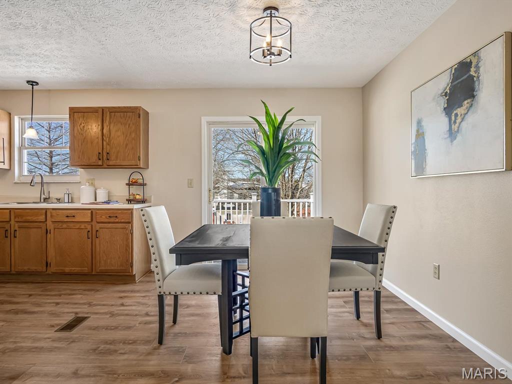 Welcome home to this newly renovated split-level home in the desirable Turtle Creek Subdivision! Offering 3 bedrooms, 2.5 bathrooms, and a 2-car oversized garage, this home blends fresh updates with everyday functionality. You will love the new luxury vinyl plank flooring throughout the common areas and bathrooms and new carpet in bedrooms, fresh paint and lighting. The kitchen has been opened up to flow into the dining area, offers stainless steel appliances including new refrigerator and stove. Enjoy easy indoor-outdoor living with a composite deck plus a patio perfect for grilling, relaxing, or entertaining along with a shed for extra storage. The furnace and water heater have recently been evaluated and serviced. Move-in ready and thoughtfully improved, this is a fantastic opportunity to settle into a great neighborhood with easy access to Triad Schools and Scott Air Force Base - schedule your showing today! Agent Owned
