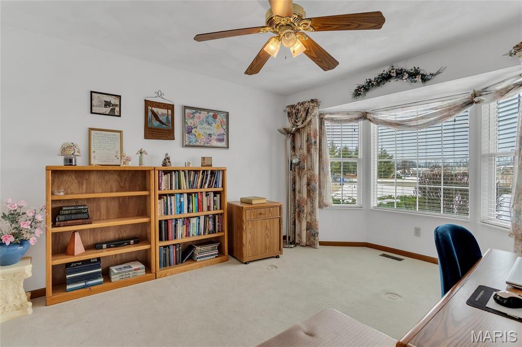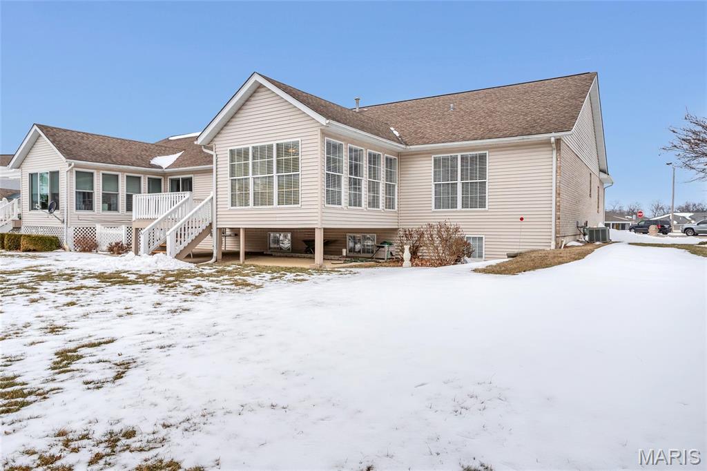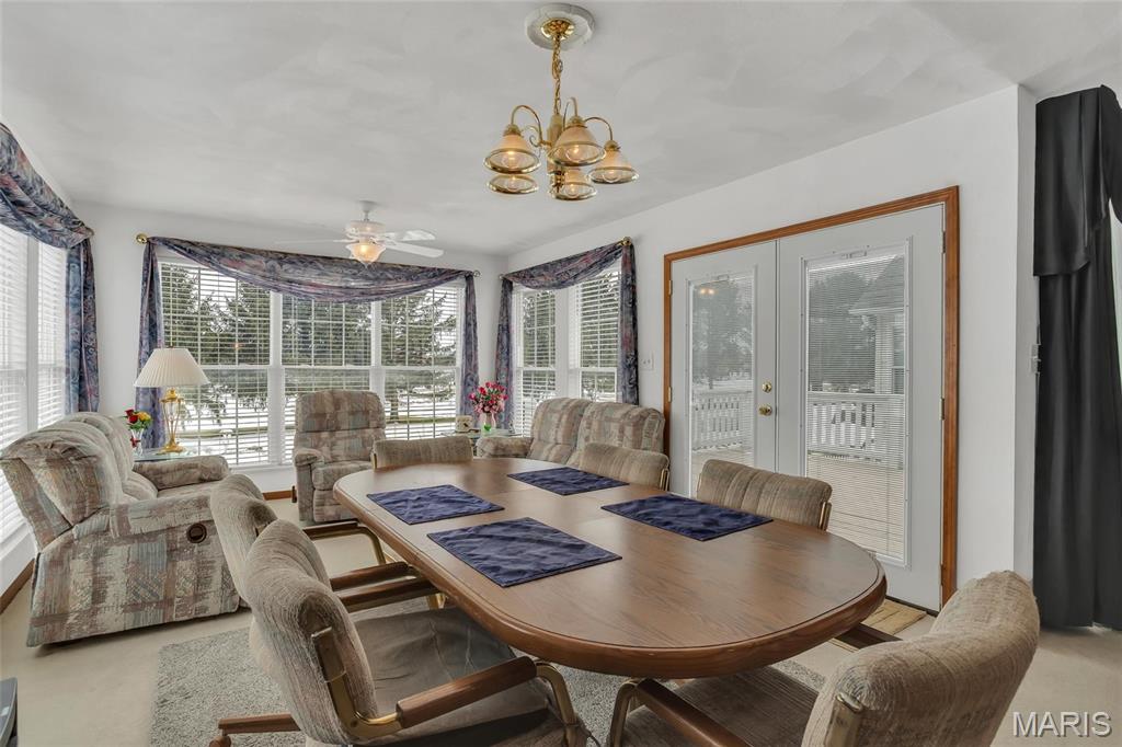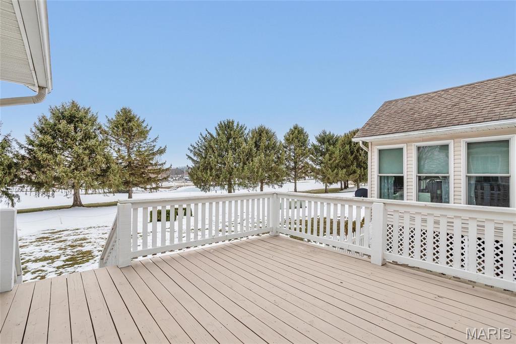Wake up to peaceful golf course views right in your own backyard at 102 Eagle Ct in Waterloo, IL. This inviting 2-bedroom, 3-bath home has everything you need to feel right at home! Step inside to a cozy living area anchored by a warm fireplace—perfect for unwinding on cool evenings. The large living room has plenty of space to entertain and the sitting room off the kitchen gives you panoramic views of the backyard and golf course! The spacious primary suite offers dual closets, one being a walk-in closet designed to keep everything organized and within reach. Downstairs, the finished basement opens up endless possibilities, whether you envision a home office, workout space, or the ultimate movie-night setup, there is room for it all! Outside, enjoy summer evenings on the deck overlooking the lush greens of the golf course, ideal for grilling or simply taking in the serene surroundings. A garage adds everyday convenience and extra storage with a drop down ladder for additional storage in the attic.