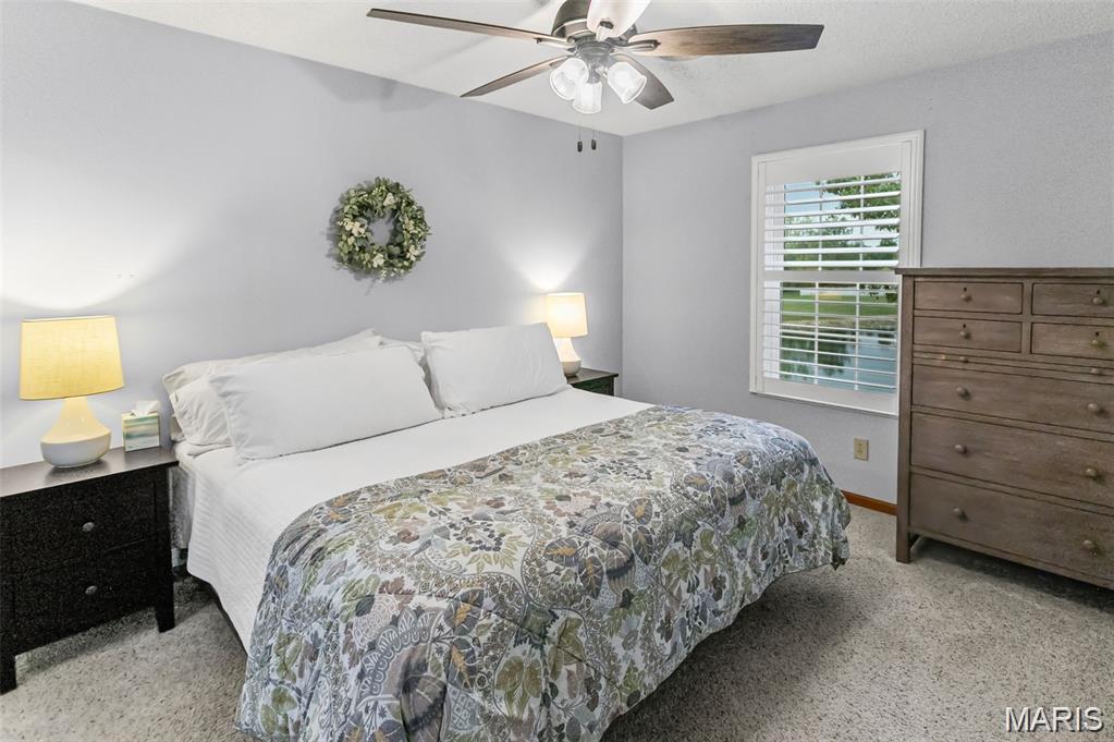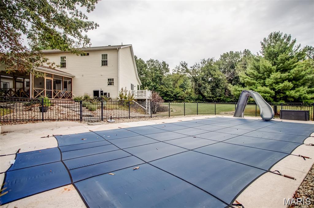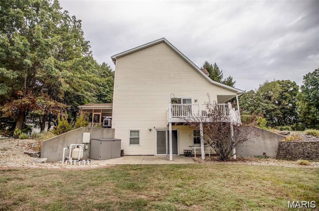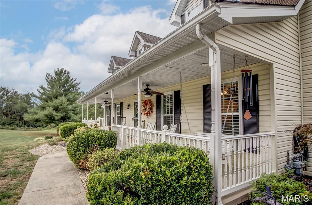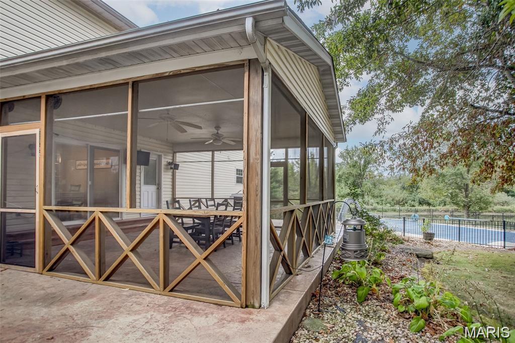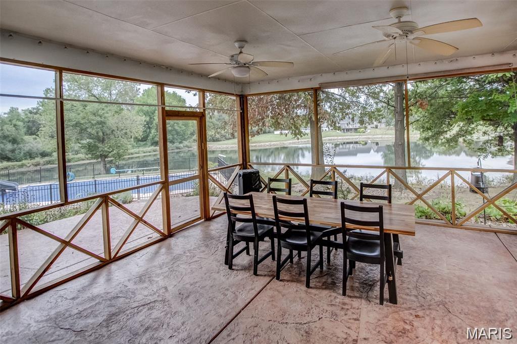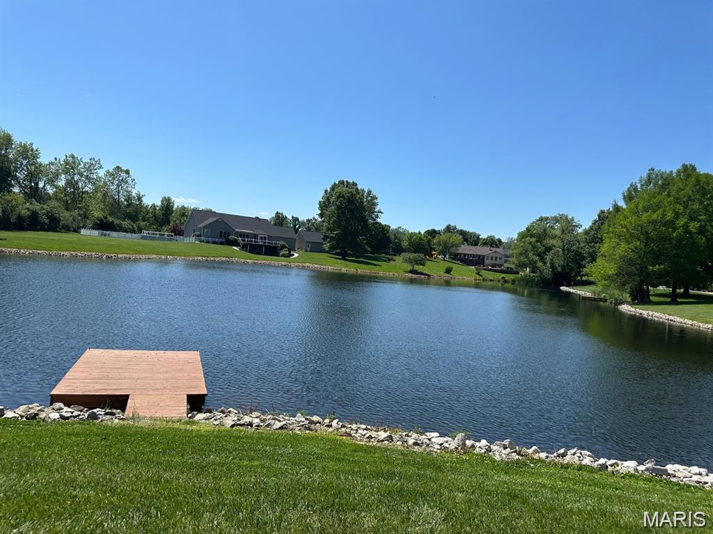 Welcome to your private lakeside retreat! Tucked away on 3.6 acres at the end of Tra Lin Ridge, this property blends comfort, nature, and convenience in one serene setting. The inviting front porch sets the stage for relaxed living. Step inside to a warm living room with a wood-burning fireplace, engineered hardwood floors, and plantation shutters. The eat-in kitchen with granite countertops and newer appliances flows to a screened porch — perfect for enjoying fresh air year-round. You’ll find the primary suite on the main floor as well featuring a full bath complete with dual vanity, beautiful tiled shower, and separate tub. The primary suite also includes a private balcony with water and pool views. Upstairs, you’ll find three spacious bedrooms, full bathroom, and a loft area — offering plenty of room for family and guests. The walkout lower level offers a full bath and room for expansion, ready to finish as a theater, rec room, or guest suite. One of the home’s most cherished spaces is the sunroom overlooking the saltwater pool and lake. Whether you’re sipping morning coffee or unwinding at sunset, it’s a peaceful vantage point to watch the water, deer, turkeys, and abundant aquatic life.A 3-car attached garage plus a 2-car detached garage/workshop provide ample storage and hobby space. Dual HVAC systems ensure year-round comfort. Outdoors is where this home shines. Swim in the inground saltwater pool, fish from the private dock, or simply relax lakeside with endless views. The private drive and wooded surroundings add to the sense of seclusion, while still being minutes from town conveniences. If you’re seeking a peaceful sanctuary with modern comforts and a daily connection to nature, this Alton waterfront stunner is ready to welcome you home. Brand New Roof (February 2026)