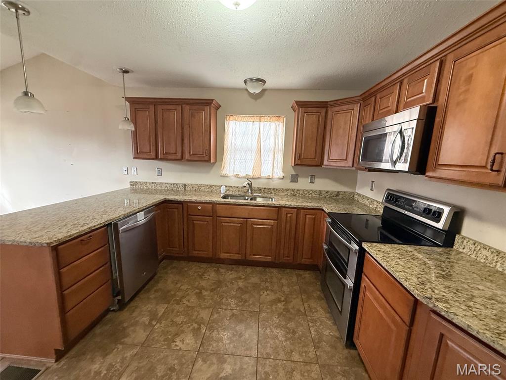 Welcome home to this spacious and inviting 1.5-story property that offers comfort, style, and room to grow! With 3 bedrooms and 2.5 bathrooms, this home is thoughtfully designed for everyday living and easy entertaining. From the moment you arrive, you’ll appreciate the great curb appeal that sets the tone for what’s inside. Step into the great room and enjoy the vaulted ceiling, creating an open and airy feel filled with natural light. The large kitchen is a standout, featuring upgraded cabinets and granite countertops, perfect for cooking, gathering, and making memories. A separate dining room adds extra space for meals, celebrations, or quiet evenings at home. Downstairs, the full basement offers endless possibilities—whether you dream of a home office, workout space, or additional living area. This home checks all the boxes for space, comfort, and potential. Home sold as-is.