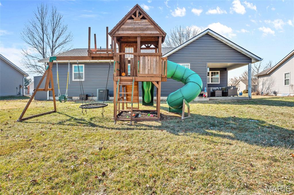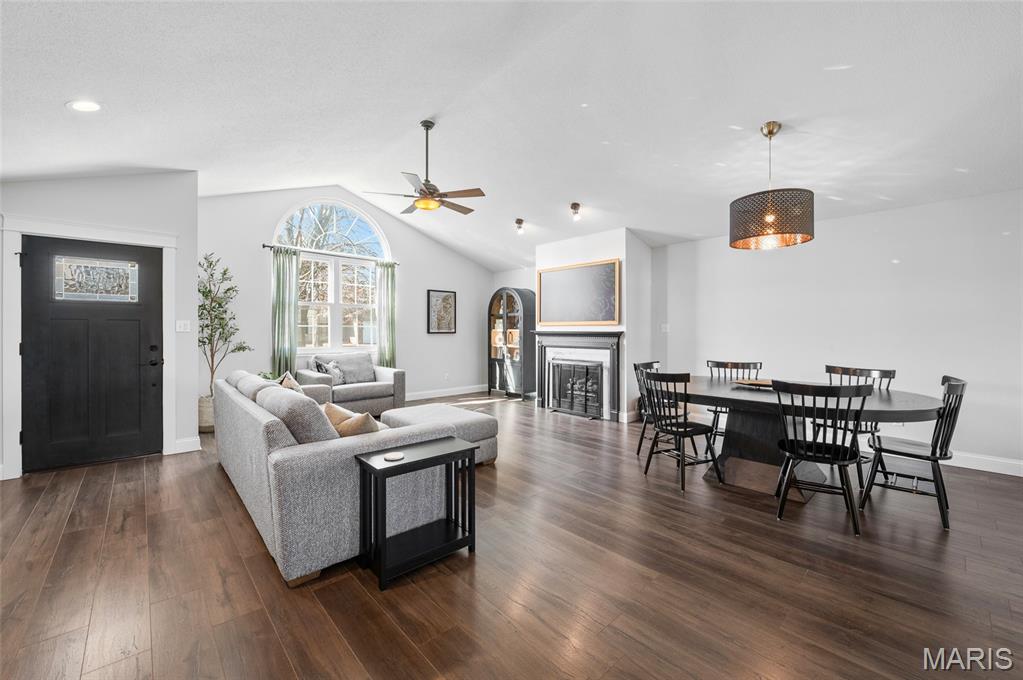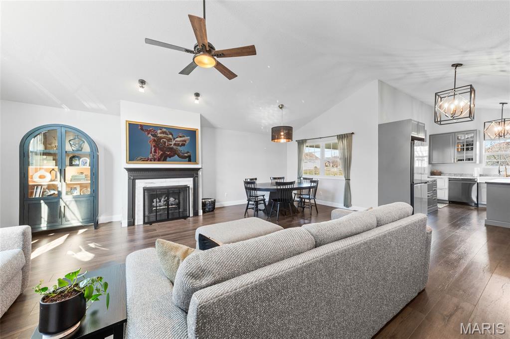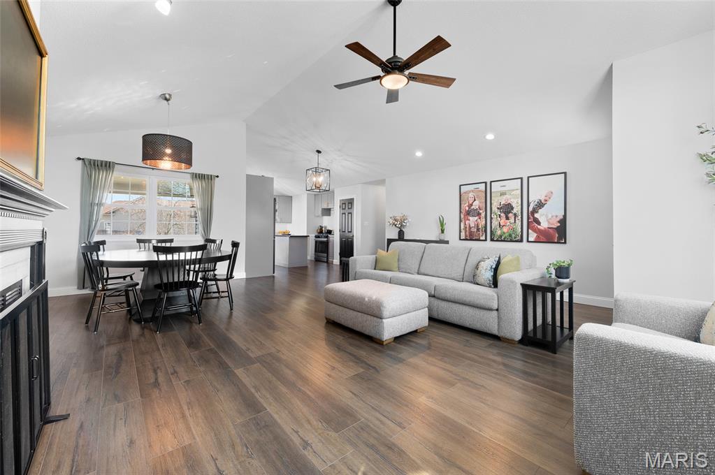 Welcome to 821 Copper Ridge in the highly desirable Copper Creek subdivision — just a short walk to Drost Park. This beautifully updated ranch offers vaulted ceilings, rich flooring, and a cozy gas fireplace in a bright, open-concept living space. The kitchen features updated cabinetry, lighting, and appliances, flowing seamlessly into the dining area — ideal for everyday living and entertaining. Major updates provide true peace of mind:• Windows (2022)• HVAC & water heater (2022)• Roof, siding, gutters, chimney cap & exterior lighting (2025)• Basement flooring & professional paint (2025)• New sump pump (2025) The finished basement adds incredible flexibility with a large recreation area and two oversized bonus rooms with substantial closet space — perfect for offices, playrooms, workout space and so much more. Enjoy the covered patio, fire pit area, and spacious backyard. Swing set, storage shed, outdoor TV, and professionally installed dog fence may remain. Smart home features include a WiFi garage door with camera, Blink doorbell, WiFi exterior lights, and Nest thermostat. Move-in ready with the big-ticket items already done — in one of the area’s most sought-after neighborhoods. Please have offers in by 8:00pm Saturday evening- we will respond on Sunday. Seller reserves the right to accept an offer at any time