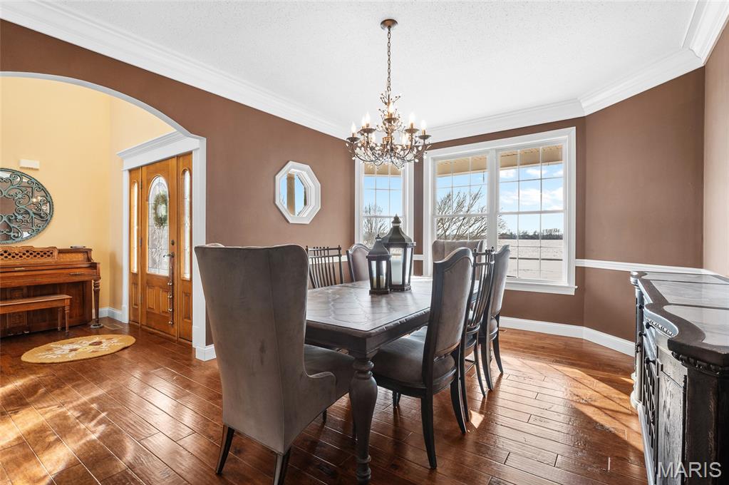 Beautiful, custom built 1.5 story on 2.04 acres in Triad School district. This home screams "cozy" as soon as you enter the 2 story entry foyer. The living room boasts 2 story floor to ceiling windows and see thru fireplace w/ custom builtins on each side and tray ceiling. The kitchen has custom cabinetry, a breakfast nook area and hosts the additional side of the see thru fireplace. The dining room has beautiful crown molding and trim. The primary bedroom suite is on the main level. Double doors welcome you in. master bedroom as new carpet and a tray ceiling. The master bath has 2 separate vanities, soaker tub, separate shower and walk in closet. a half bath and laundry room is also located on the main level. The upper level hosts 3 additional bedrooms, full bath w/ sep toilet/shower room and a large bonus room. The lower level is unfinished. Off the kitchen is a beautiful screened in porch with a wood burning stone fireplace that leads out to the inground pool. (3ft to 13 ft approx with fountains) palm trees with stay with property. The pool area is fenced. The exterior of the home has permanent outdoor lighting on the top front and garage side of the home. This property is contingent on seller finding and closing on home of her choice. Please be patient on scheduling viewing times. We will need to work around seller's work schedule.