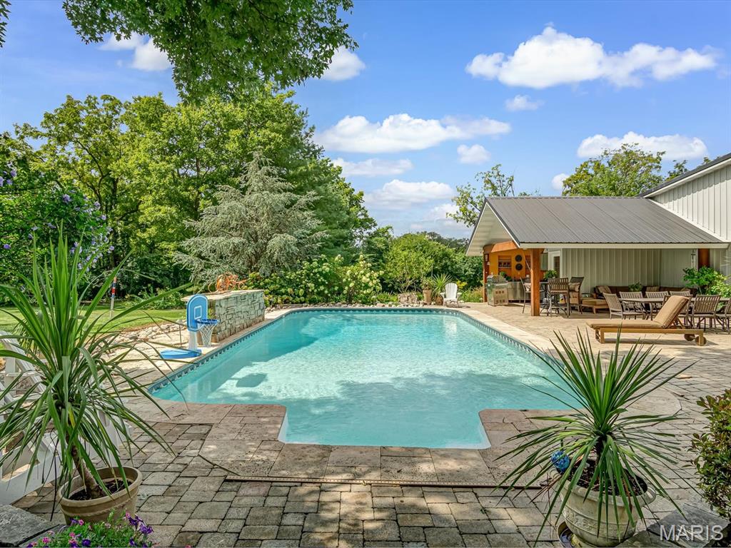 HIDDEN GEM ON 4 ACRES • PRIVATE RESORT-STYLE RETREAT • POOL + ULTIMATE ENTERTAINING BARN. Tucked down a private drive, this one-of-a-kind 4-acre getaway feels like your own personal resort complete with winding garden paths, outdoor entertaining areas, and peaceful water views that add to the setting without stealing the spotlight. From the saltwater 20’ x 40’ in-ground pool with waterfall feature, outdoor speakers, and outdoor shower, to the covered lanai and expansive paver patio. This property was built for unforgettable summers and effortless hosting. Inside, you’ll find timeless character paired with thoughtful updates; new roof (April 2024), 200-amp service, multiple HVAC zones, beautiful hardwoods, upgraded fixtures, and even an underground wine cellar. And the showstopper? The massive barn/garage that does it all: room for 3 automobiles, a large workshop, a 3/4 bathroom, kitchen and a huge entertainment area ideal for gatherings complete with a pool table and space to host the whole crew. Whether you’re a hobbyist, collector, or simply want the ultimate party-ready outbuilding, this setup is hard to find. This one of a kind property has so many extras: Reverse Osmosis system, water softeners, steam shower, some heated floors, extensive landscaping with lighting, 2nd kitchen, additional garden shed with well & electricity, and so much more listed in supplements. Schedule your private tour today!