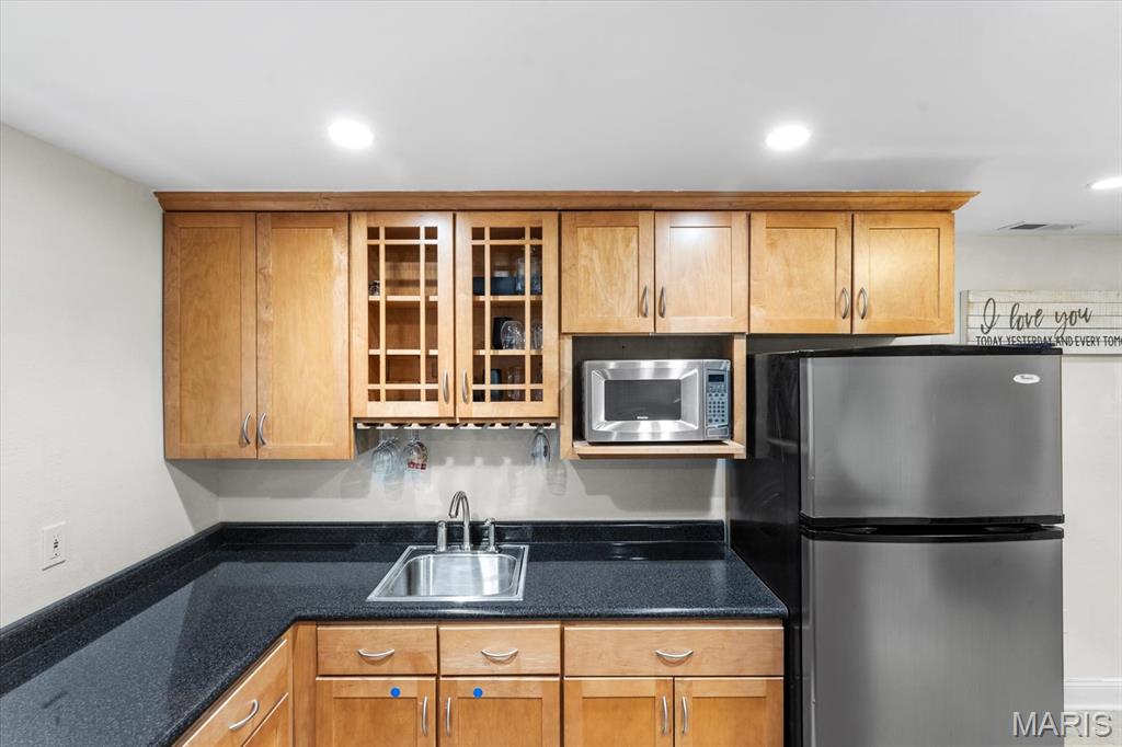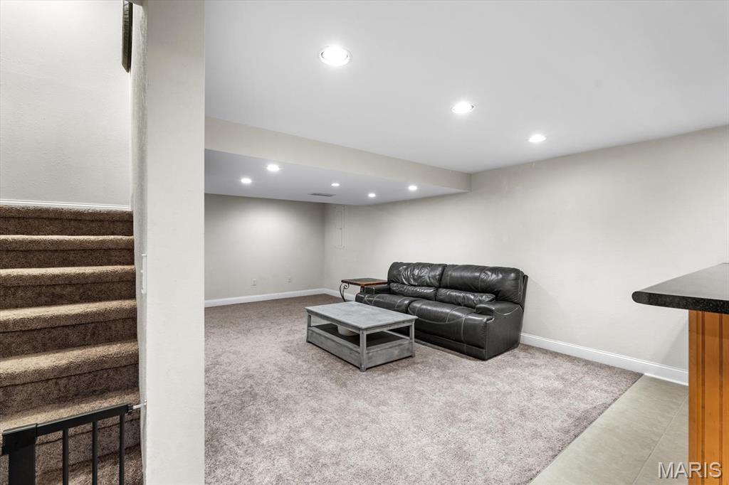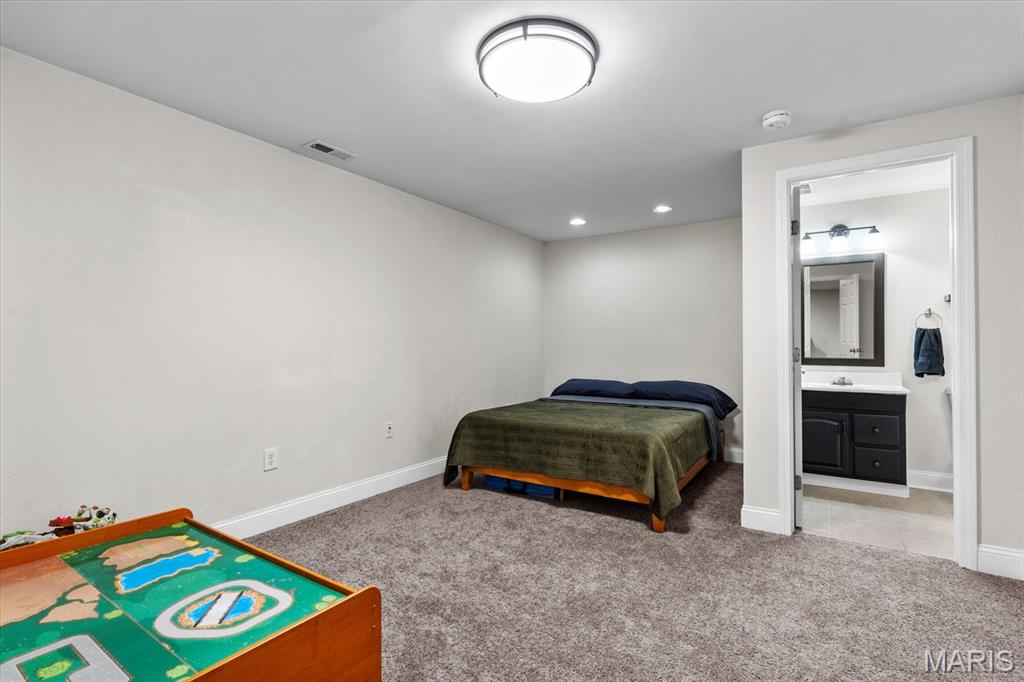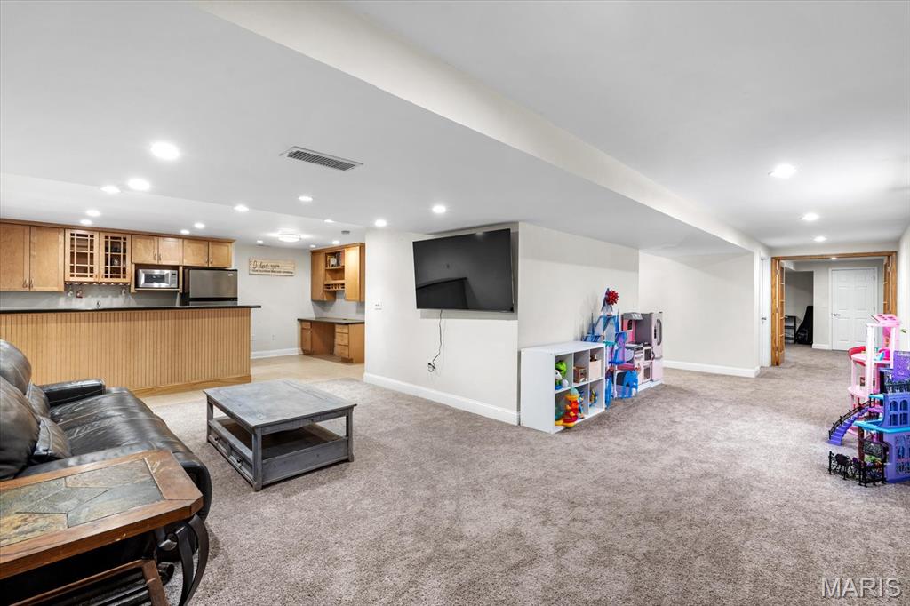 Welcome to 212 Sandwedge Drive in the sought-after Westhaven Gardens subdivision of Belleville! Ideally located with convenient access to Route 15 and Scott AFB, this beautifully maintained 1.5 story home offers the perfect blend of space, style, and functionality. Freshly painted throughout and enhanced with a newly installed vinyl privacy fence, this move-in ready home features an inviting curb appeal and a spacious, fully fenced backyard ideal for relaxing, entertaining, or play. Step inside to a stunning two-story foyer highlighted by an open staircase and an abundance of natural light. The main floor showcases durable flooring and an exceptional layout designed for everyday living and special gatherings alike. The updated kitchen is a true centerpiece, featuring solid surface countertops, tile backsplash, stainless steel appliances, a breakfast bar, and ample cabinetry. Enjoy both a formal dining room and a bright breakfast room with access to the patio and the backyard. A spacious main floor living room offers a beautifully styled fireplace, creating a warm and welcoming focal point. The main floor primary suite provides convenience and comfort, complete with a bay window, large walk-in closet, and an updated luxury bath featuring a walk-in shower, separate soaking tub, water closet, and dual vanities. Main floor laundry adds to the home’s thoughtful design for complete convenience. Upstairs, you’ll find two generously sized guest bedrooms and a full bath, offering privacy and flexibility for all your needs. The fully finished basement is sure to please, expanding your living space significantly and is designed for versatility. It features a built in bar, expansive recreation space and living area, two large bonus rooms perfect for a home gym, hobby room, office, guest space, or any other additional needs. A full bathroom and storage area complete the lower level, making it ideal for entertaining or multi-generational living. Additional highlights include the wide backyard ready for outdoor games or gatherings, a patio for summer evenings, and a functional floor plan that maximizes both openness and privacy. With its extensive finished space, updated features, fresh paint, new privacy fence, and prime location near Scott AFB and local amenities, 212 Sandwedge Drive offers exceptional value and lifestyle in Westhaven Gardens. Schedule your private showing today!