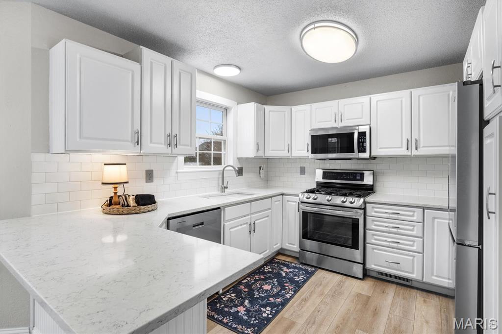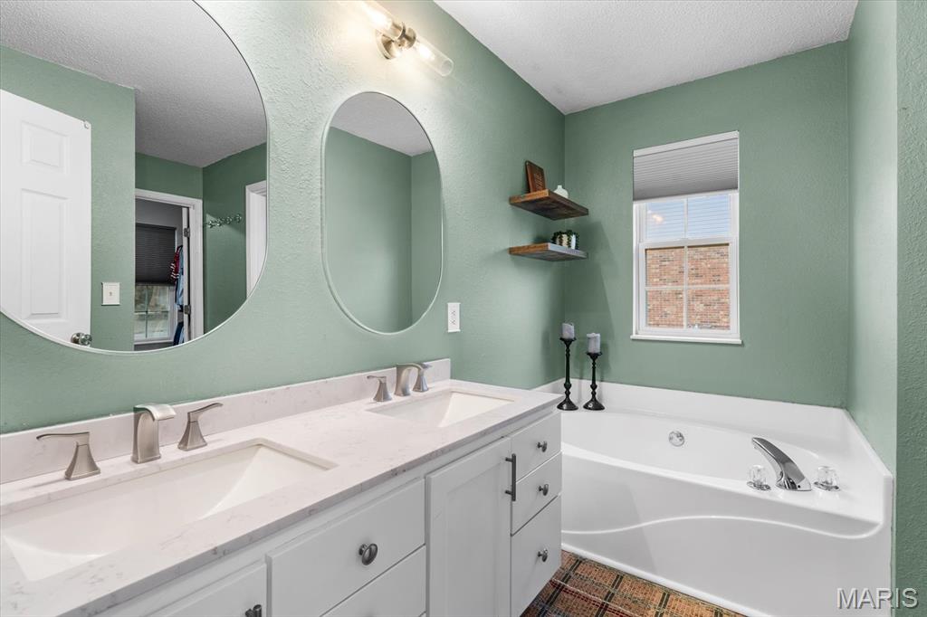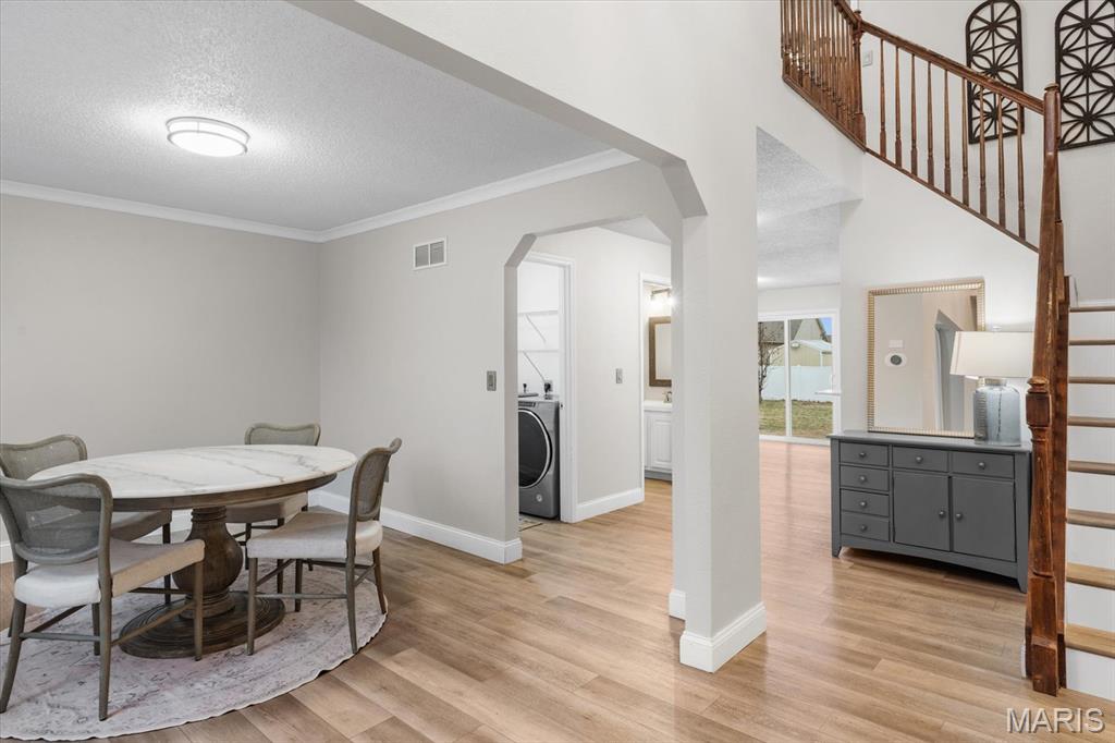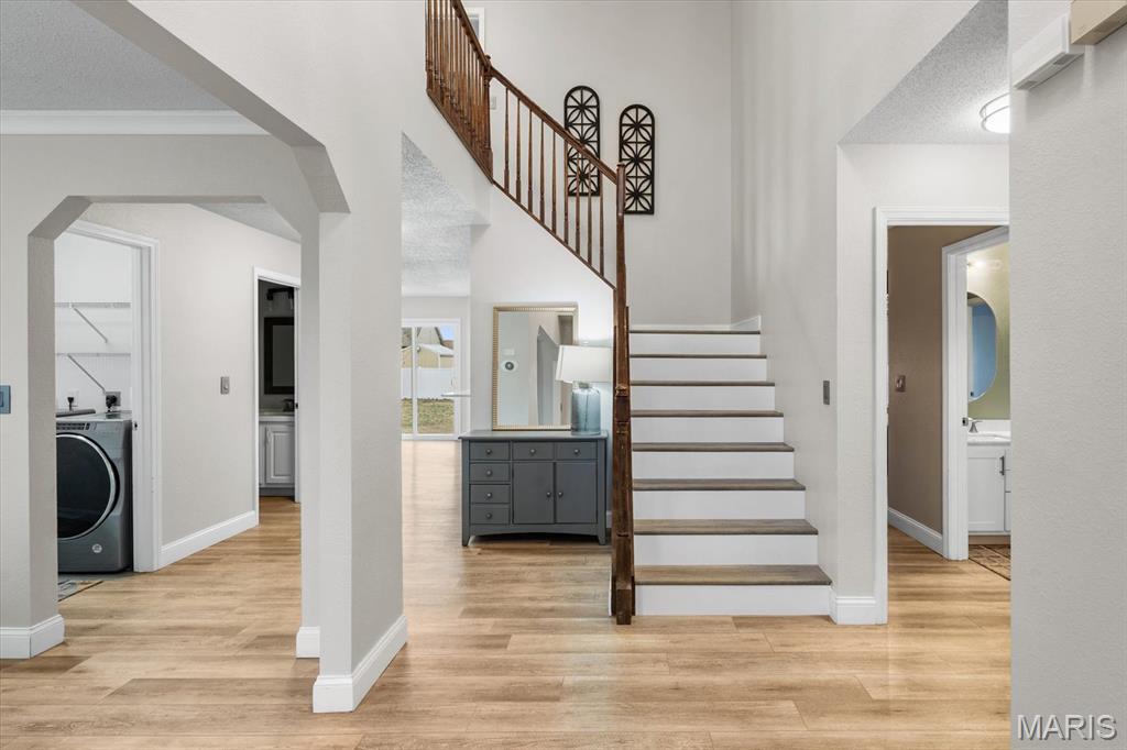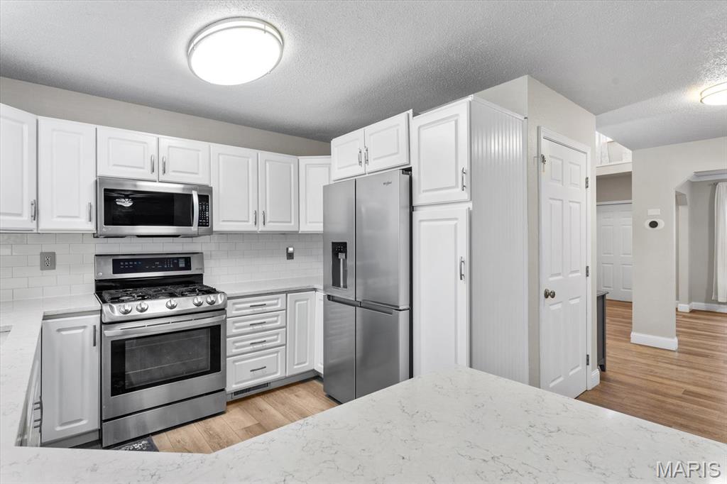 Welcome to 212 Sandwedge Drive in the sought-after Westhaven Gardens subdivision of Belleville! Ideally located with convenient access to Route 15 and Scott AFB, this beautifully maintained 1.5 story home offers the perfect blend of space, style, and functionality. Freshly painted throughout and enhanced with a newly installed vinyl privacy fence, this move-in ready home features an inviting curb appeal and a spacious, fully fenced backyard ideal for relaxing, entertaining, or play. Step inside to a stunning two-story foyer highlighted by an open staircase and an abundance of natural light. The main floor showcases durable flooring and an exceptional layout designed for everyday living and special gatherings alike. The updated kitchen is a true centerpiece, featuring solid surface countertops, tile backsplash, stainless steel appliances, a breakfast bar, and ample cabinetry. Enjoy both a formal dining room and a bright breakfast room with access to the patio and the backyard. A spacious main floor living room offers a beautifully styled fireplace, creating a warm and welcoming focal point. The main floor primary suite provides convenience and comfort, complete with a bay window, large walk-in closet, and an updated luxury bath featuring a walk-in shower, separate soaking tub, water closet, and dual vanities. Main floor laundry adds to the home’s thoughtful design for complete convenience. Upstairs, you’ll find two generously sized guest bedrooms and a full bath, offering privacy and flexibility for all your needs. The fully finished basement is sure to please, expanding your living space significantly and is designed for versatility. It features a built in bar, expansive recreation space and living area, two large bonus rooms perfect for a home gym, hobby room, office, guest space, or any other additional needs. A full bathroom and storage area complete the lower level, making it ideal for entertaining or multi-generational living. Additional highlights include the wide backyard ready for outdoor games or gatherings, a patio for summer evenings, and a functional floor plan that maximizes both openness and privacy. With its extensive finished space, updated features, fresh paint, new privacy fence, and prime location near Scott AFB and local amenities, 212 Sandwedge Drive offers exceptional value and lifestyle in Westhaven Gardens. Schedule your private showing today!