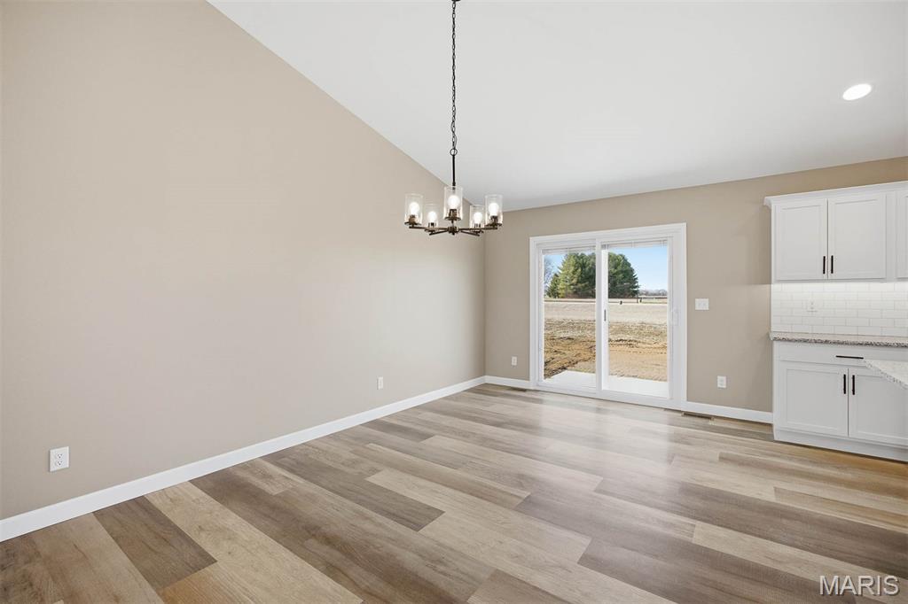 GORGEOUS NEW CONTRUCTION W/BEAUTIFUL OPEN FLOOR PLAN W/DIVIDED BEDROOMS & BATHROOMS. ATTRACTIVE KITCHEN FEATURES WHITE CABINETS, GRANITE COUNTERTOPS, BACKSPLASH, UNDER CABINET LIGHTING, LARGE ISLAND W/BREAKFAST BAR W/LARGE DRAWERS (SS DISHWASHER, ELECTRIC STOVE, MICROWAVE, GARBAGE DISPOSAL INCLUDED) PANTRY, RECESSED LIGHTING & IS OPEN TO VAULTED LIVING RM & DINING RM W/SLIDING DOOR TO PATIO. PRIMARY BEDROOM HAS LARGE WALK-IN CLOSET. PRIMARY BATH HAS SHOWER ONLY & DOUBLE VANITY SINKS, LINEN CLOSET. MAIN FLOOR LAUNDRY RM. UNFINISHED FULL BASEMENT W/ONE EGRESS WINDOW. 2 CAR ATTACHED GARAGE (24 X 25).