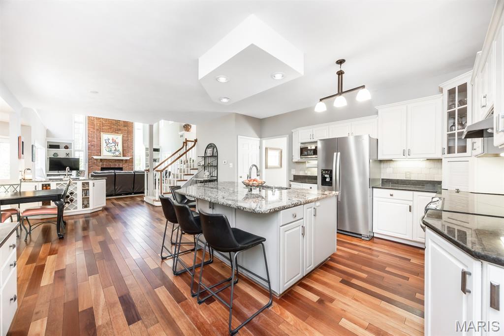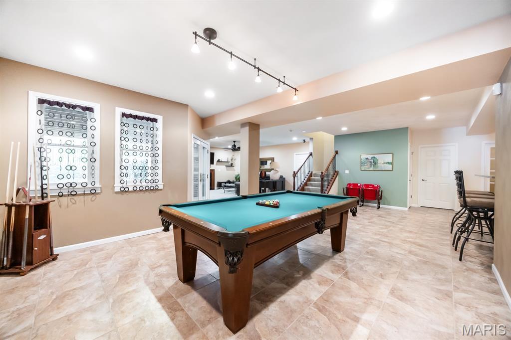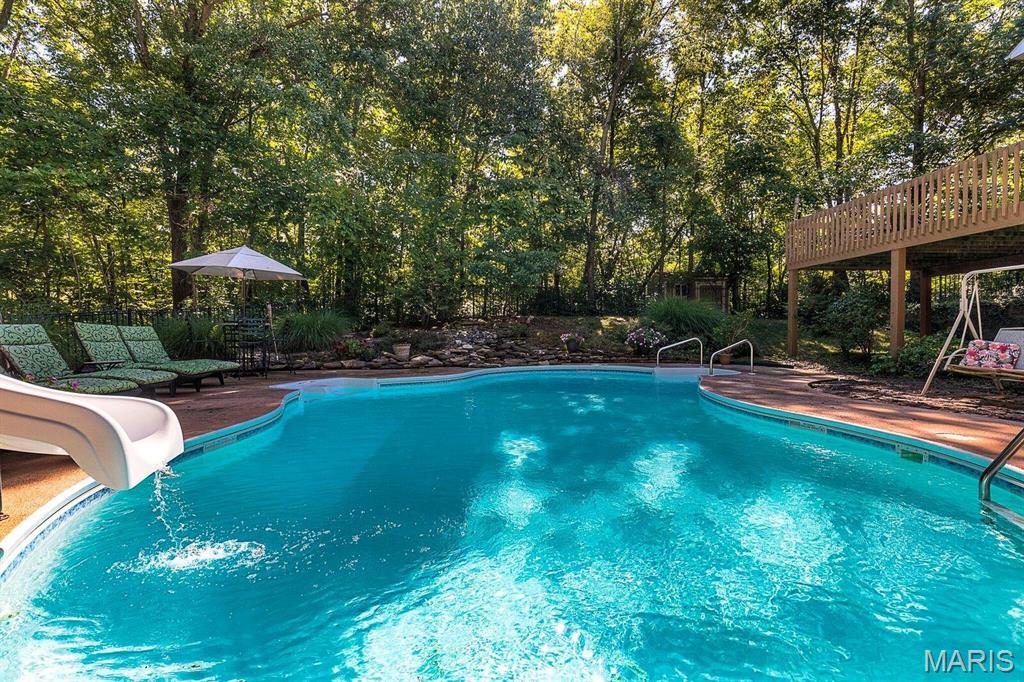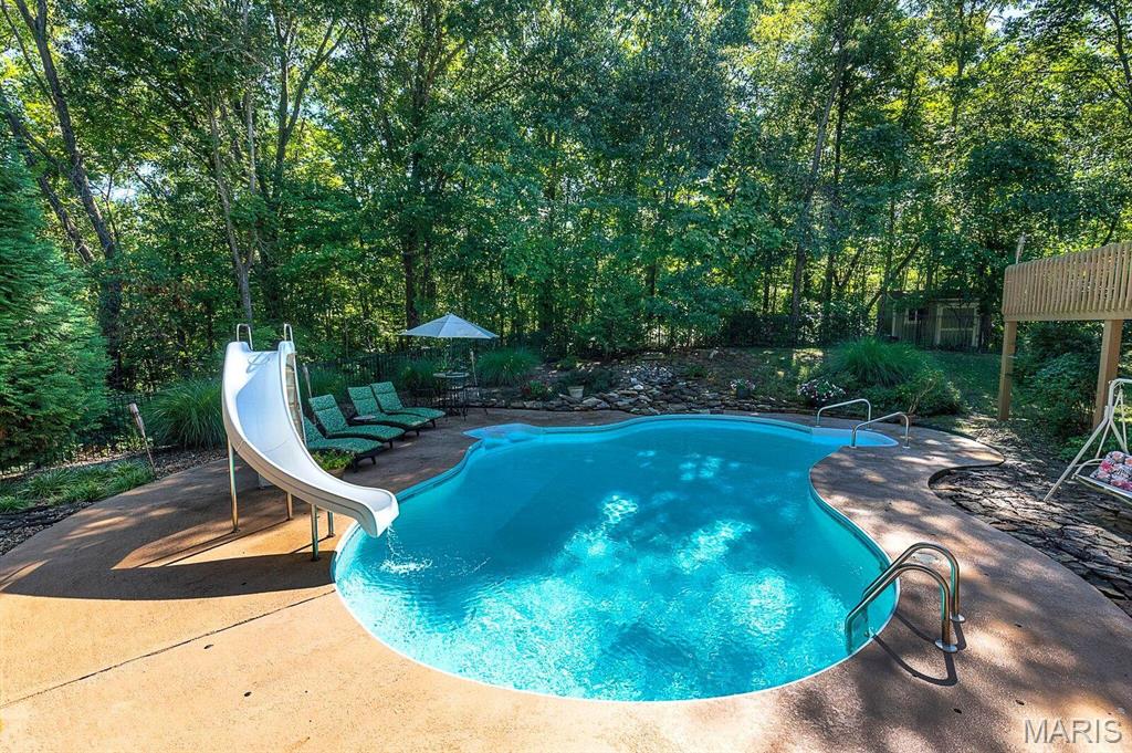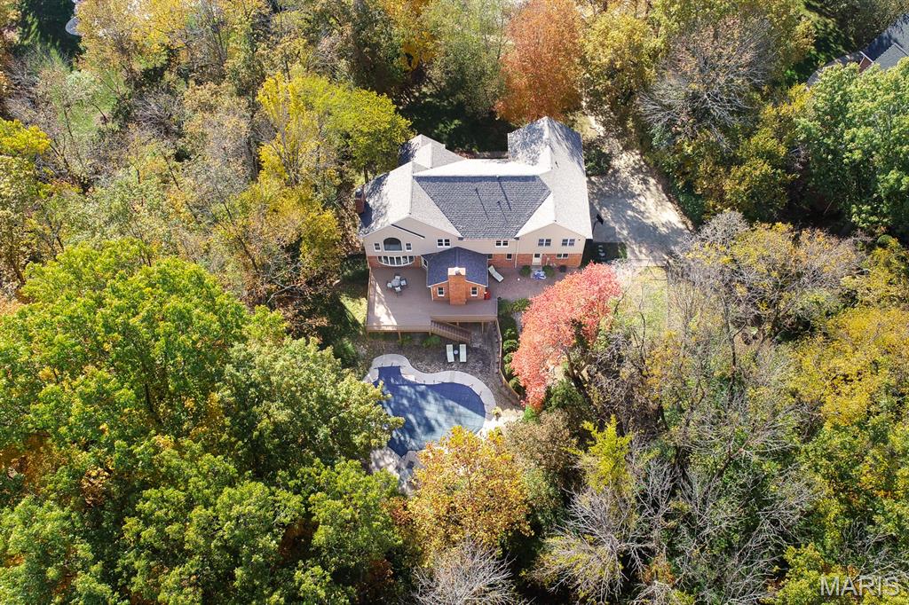 CUSTOM 2-STORY ON A PRIVATE, 1 1/2 ACRE WOODED LOT WITH AN INGROUND POOL! Welcoming cathedral great room with gas fireplace, built-ins and a window seat, plus a cozy hearth room with wood burning fireplace. Kitchen updated with a planning desk, tile backsplash, newer appliances and plenty of space for people to gather around the large island. Off the kitchen you will find a formal dining room that is currently being used as a living room AND a main level laundry with 1/2 bath. Upstairs you'll find the primary suite with tray ceiling and an updated bath with dual vanities, soaking tub and separate shower, plus 3 additional bedrooms and-one oversized over the garage with a walk-in closet. The walk-out lower-level offers cozy family room, a rec space with pool table, wet bar, bonus room and another full bathroom. Walk out to the gorgeous backyard with mature trees, an inground pool firepit area and storage shed. Extras: laundry chute, attic fan, Anderson windows/doors, zoned HVAC and NEW roof. MUST SEE!