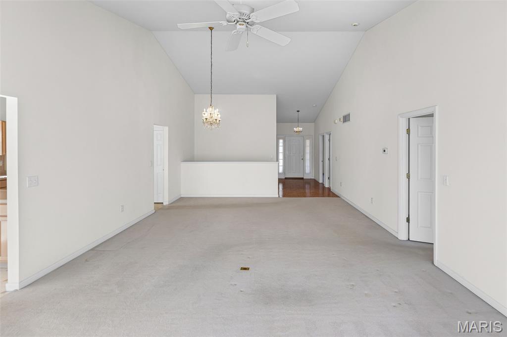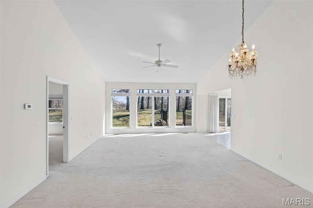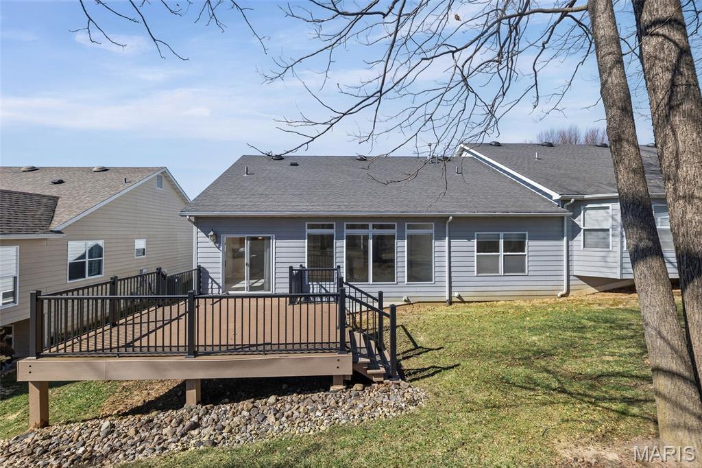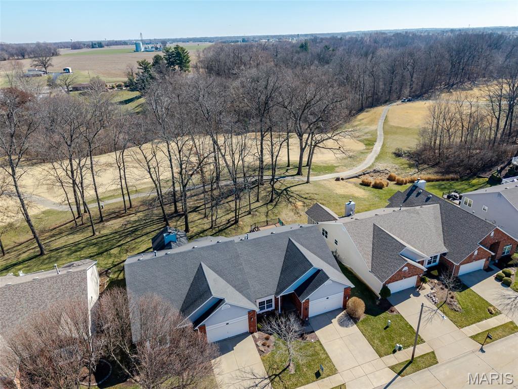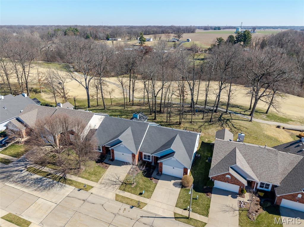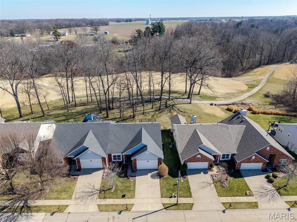 Beautiful and spacious villa situated on the Stonewolf Golf Course! This 2 bedroom, 3 bath one-story Villa features an open floor plan with vaulted ceilings throughout the main level. The Great room and Dining room enjoy a full wall of windows overlooking the golf course greenspace and privacy. The eat in Kitchen boasts blonde cabinetry, a breakfast bar and pantry. The Breakfast room walks out to the multi-level deck. Conveniently located main-level Laundry room is near the spacious 2-car attached garage. The Primary Bedroom suite with vaulted ceiling, offers a walk-in closet and plush Bathroom with double vanity and walk-in shower. 2nd Bedroom is spacious and has the guest Bathroom nearby. The finished Lower Level boasts daylight windows, a wet bar, large Family room with gas fireplace, a full Bath, an Office that can double as Guest quarters, and a generous Storage room. Neutral decor and Move-in ready. Superb location close to dining, shopping, parks, medical and wellness facilities and easy access to schools, highways, airports, St. Louis and Scott Air Force Base. HOA Fees ($370/Month) include exterior insurance, grass cutting, landscaping and snow removal. ($450/Year) Stonewolf Community Entry/Common Areas.