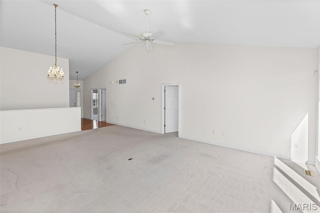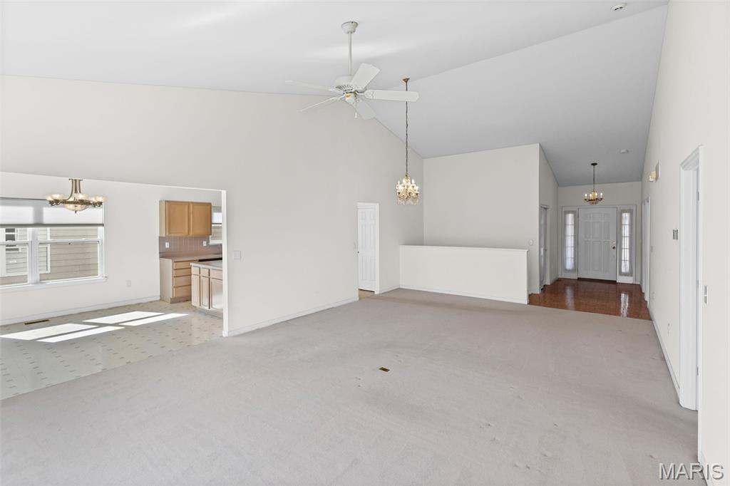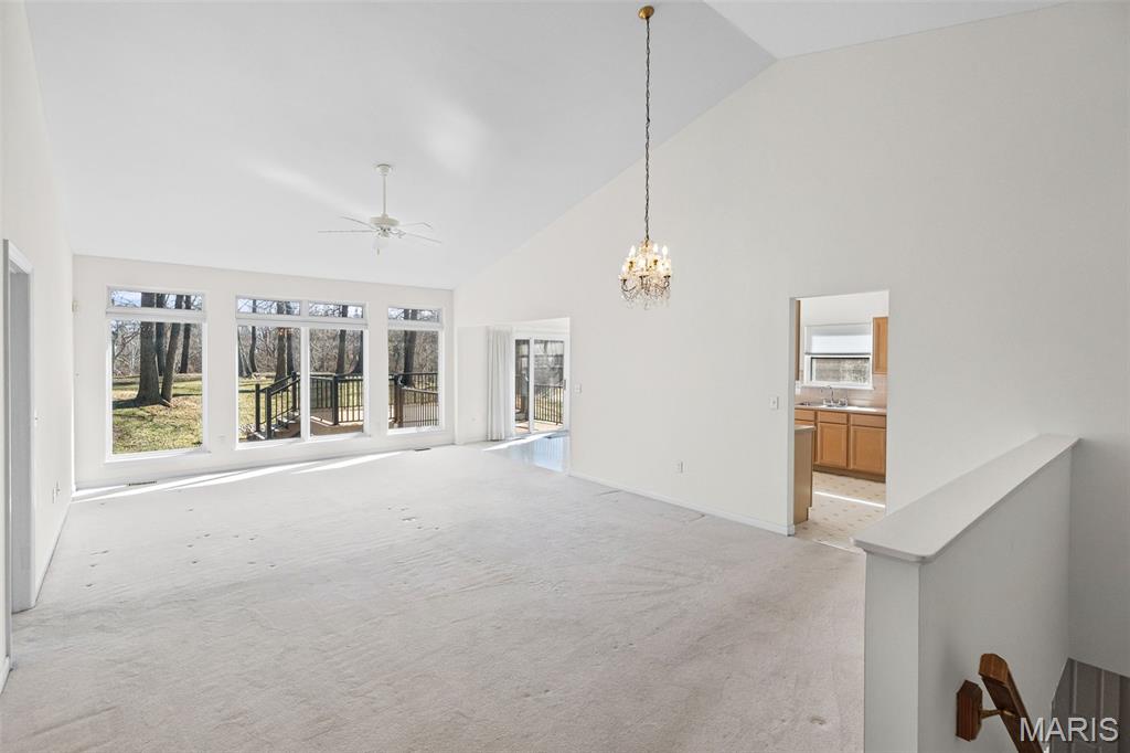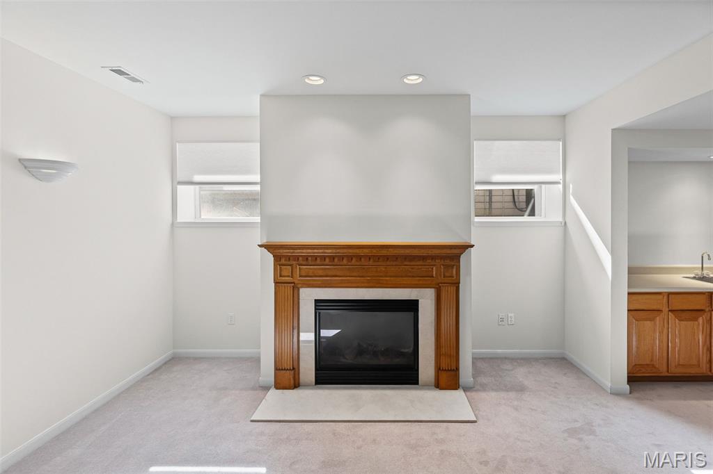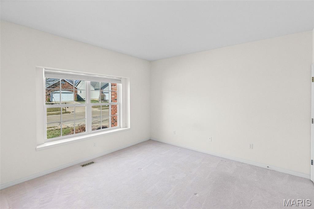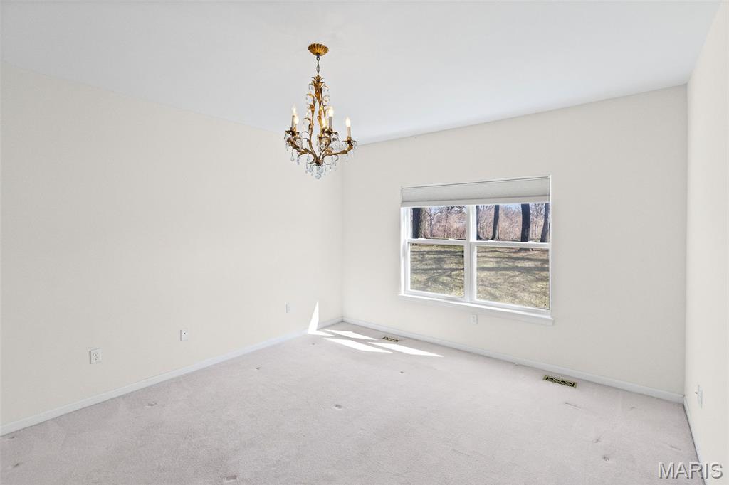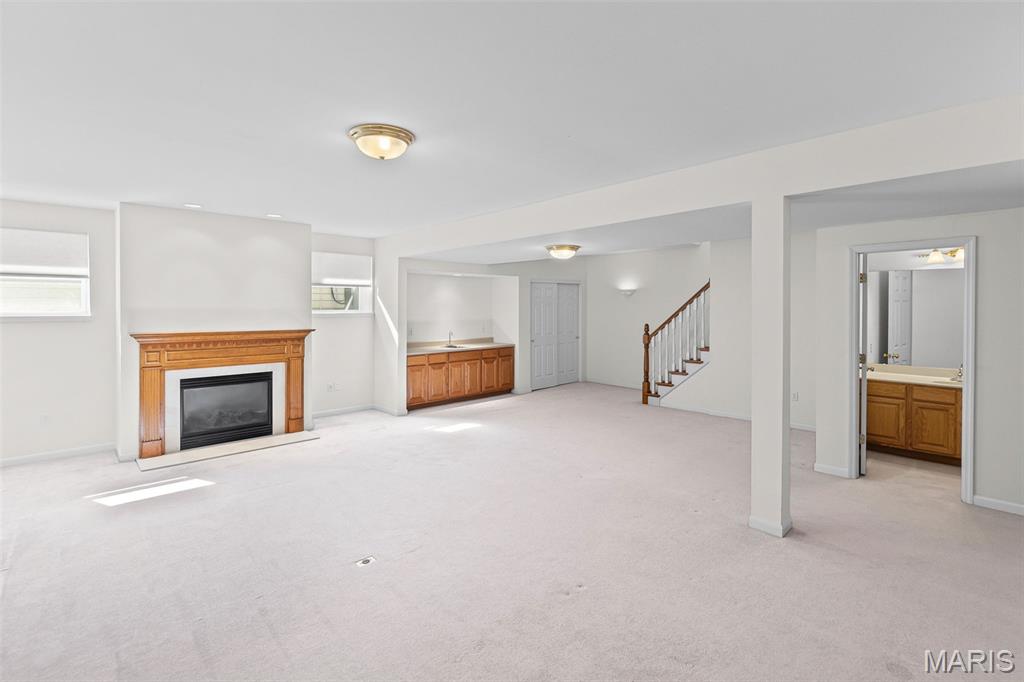 Beautiful and spacious villa situated on the Stonewolf Golf Course! This 2 bedroom, 3 bath one-story Villa features an open floor plan with vaulted ceilings throughout the main level. The Great room and Dining room enjoy a full wall of windows overlooking the golf course greenspace and privacy. The eat in Kitchen boasts blonde cabinetry, a breakfast bar and pantry. The Breakfast room walks out to the multi-level deck. Conveniently located main-level Laundry room is near the spacious 2-car attached garage. The Primary Bedroom suite with vaulted ceiling, offers a walk-in closet and plush Bathroom with double vanity and walk-in shower. 2nd Bedroom is spacious and has the guest Bathroom nearby. The finished Lower Level boasts daylight windows, a wet bar, large Family room with gas fireplace, a full Bath, an Office that can double as Guest quarters, and a generous Storage room. Neutral decor and Move-in ready. Superb location close to dining, shopping, parks, medical and wellness facilities and easy access to schools, highways, airports, St. Louis and Scott Air Force Base. HOA Fees ($370/Month) include exterior insurance, grass cutting, landscaping and snow removal. ($450/Year) Stonewolf Community Entry/Common Areas.