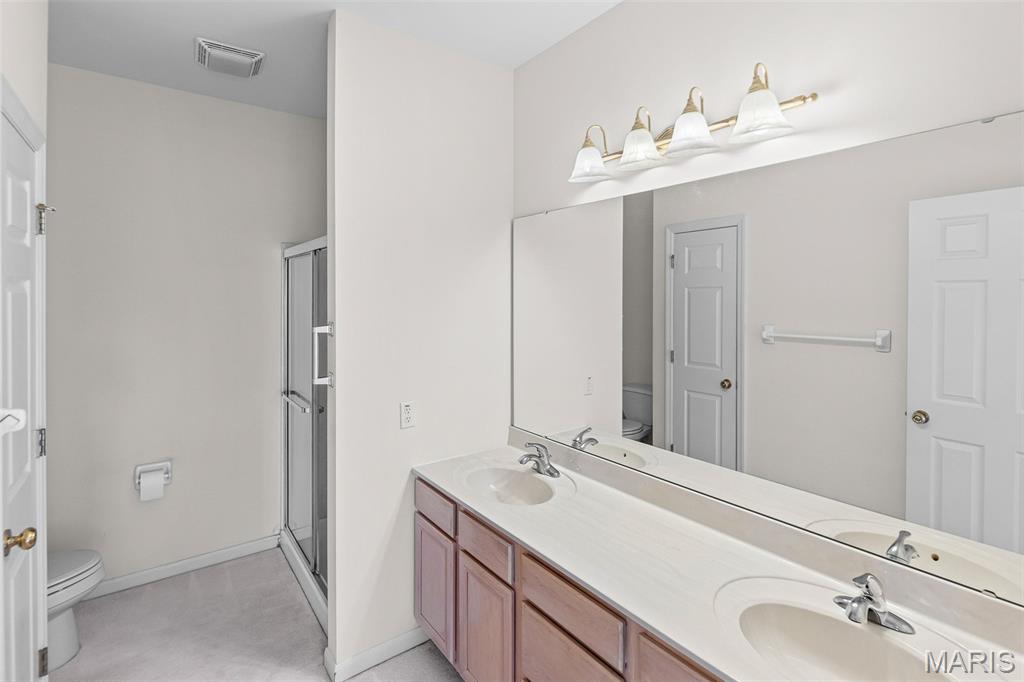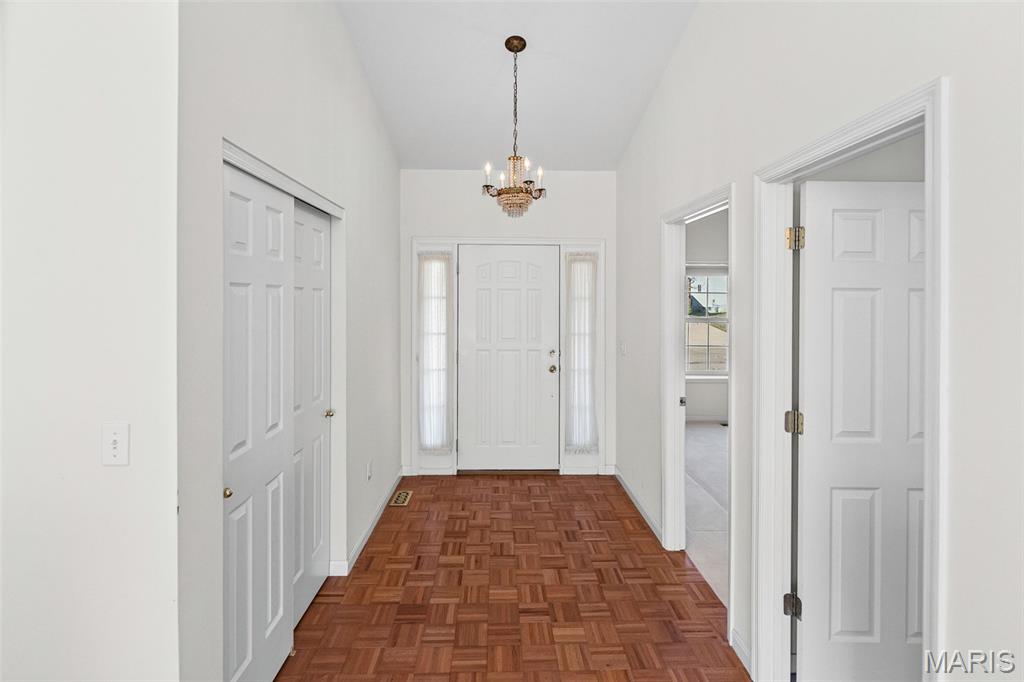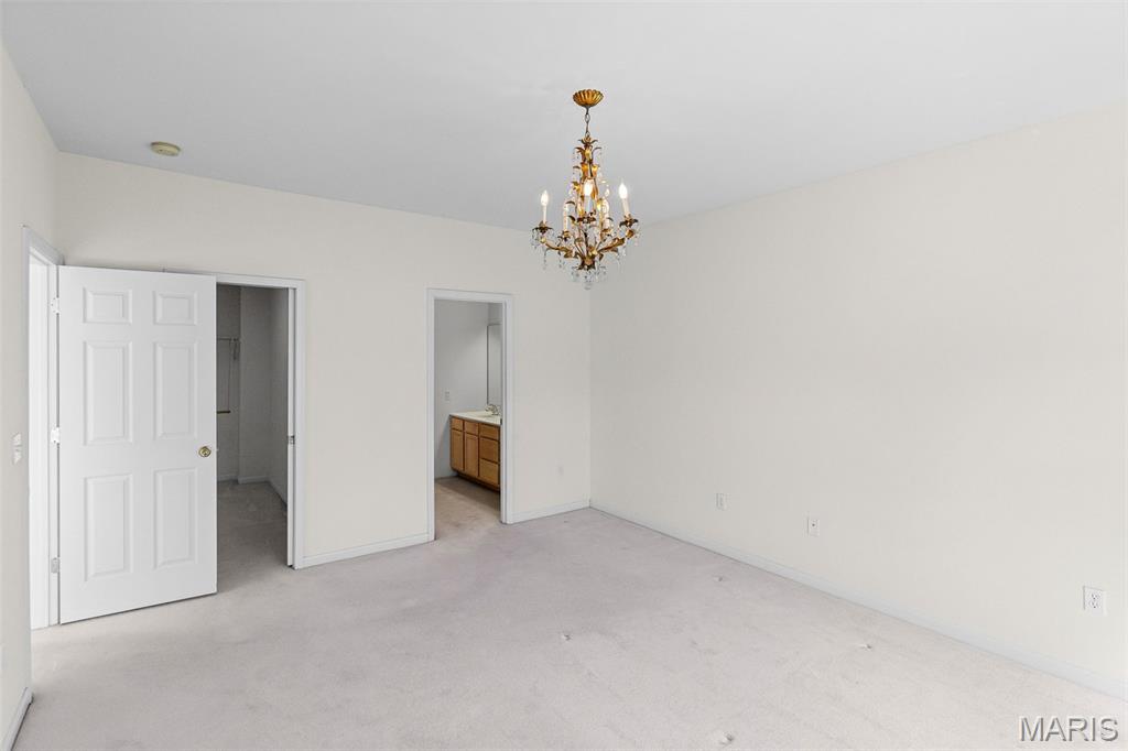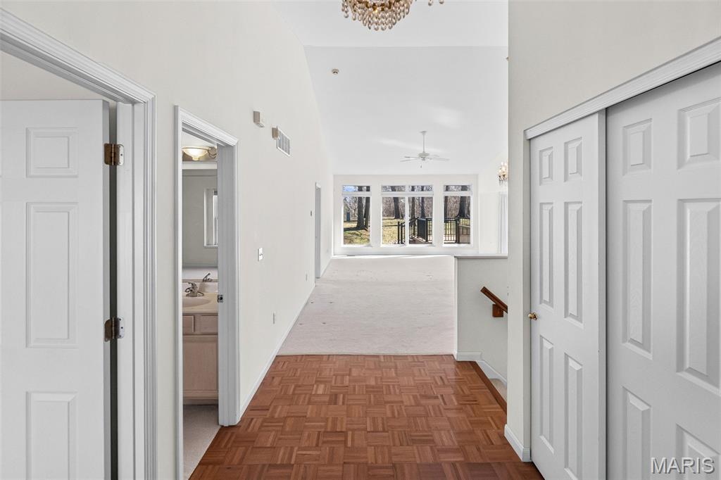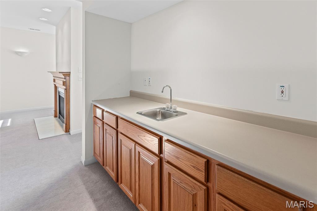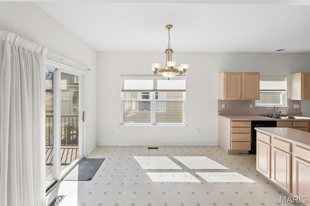 Beautiful and spacious villa situated on the Stonewolf Golf Course! This 2 bedroom, 3 bath one-story Villa features an open floor plan with vaulted ceilings throughout the main level. The Great room and Dining room enjoy a full wall of windows overlooking the golf course greenspace and privacy. The eat in Kitchen boasts blonde cabinetry, a breakfast bar and pantry. The Breakfast room walks out to the multi-level deck. Conveniently located main-level Laundry room is near the spacious 2-car attached garage. The Primary Bedroom suite with vaulted ceiling, offers a walk-in closet and plush Bathroom with double vanity and walk-in shower. 2nd Bedroom is spacious and has the guest Bathroom nearby. The finished Lower Level boasts daylight windows, a wet bar, large Family room with gas fireplace, a full Bath, an Office that can double as Guest quarters, and a generous Storage room. Neutral decor and Move-in ready. Superb location close to dining, shopping, parks, medical and wellness facilities and easy access to schools, highways, airports, St. Louis and Scott Air Force Base. HOA Fees ($370/Month) include exterior insurance, grass cutting, landscaping and snow removal. ($450/Year) Stonewolf Community Entry/Common Areas.