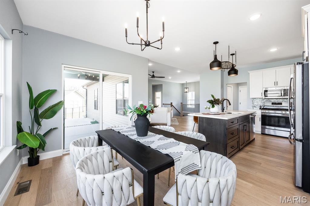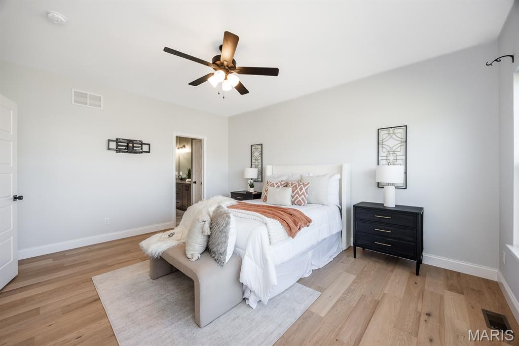 BUILT IN 2022, THIS BEAUTIFUL 4 BEDROOM, 4 BATH HOME OFFERS AN OPEN FLOOR PLAN AND MODERN FINISHES. The centrally located kitchen features stainless appliances (including a gas range), Quartz countertops and an island with breakfast bar, plus you will love the walk-in pantry with built in shelving. Relax in the spacious great room with gas fireplace. The split-bedroom floor plan provides a private primary suite while keeping the secondary bedrooms tucked away on their own wing. The finished basement offers plenty of space with a 4th bedroom, home office, a large rec/family space and plenty of room for storage. You will also love the covered back patio and fenced in back yard. Energy efficient solar panels help reduce monthly utility costs while adding long term value. This home is ready for a new owner! Located in the sought-after Braeswood Trails and just minutes from O'Fallon schools, shopping, dining, interstate access and Scott AFB. MUST SEE!