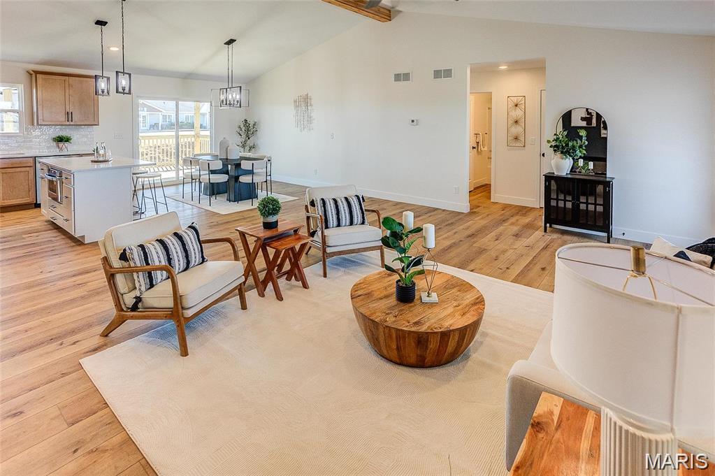 ESTIMATED COMPLETION DATE May 2026. Homes by Keller presents a stunning 3 bedroom, 2 bath, 1,539sq ft ranch style home designed for modern living. The open concept kitchen and living area create the perfect space for entertaining, featuring valuted ceilings with cedar beam, and stylish vinyl plan flooring throughout. The kitchen is a chef's dream with quartz countertops, spacious center island, and soft-close cabinetry offering ample storage. A stove, dishwasher, and microwave are included. Relax in the luxurious primary ensuite, with boasts a double vanity, and spacious shower. Enjoy the convenience of main-floor laudnry. The full basement offers endless possiblities with an egress window and full bath rough in for future expansion. Don't miss your chance to own a brand-new home in this highly sought after community.