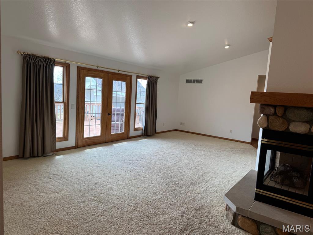 What a view !!!! Walk in the front door, with the living room, which has cathedral ceiling and a double sided gas log fireplace and french door and windows looking out to a view across the bottom land. Or walk out onto the deck with trek decking.. The kitchen dining area has a nice open floor plan. The kitchen has a nice walk in pantry. This home has 3 bedrooms 3 bath. One of the bedrooms is being used as a laundry room. The Primary bedroom has a nice walk in closet, plus a nice large closet. All the bedrooms have nice closets. The Primary bath has a walk in jetted tub, and a shower. This home has 6 panels doors and whole house central vac. Walk downstairs to french doors, that lead outside. Ceilings are 9'. The basement does have a full bathroom, and the rest is all open to a design how you want to arrange. Step outside and you have a smoke house, that would be a cute playhouse with a covered patio. And what every man wants to put his toys in, 2 large sheds one 30' X 40' with concrete floor, and one 60' X 80'. After a long hot day enjoy the stocked pond for swimming, fishing or sit under the pavilion and just enjoy the day. There is a small shed to keep your swimming and fishing gear, and also a outhouse. Roof Oct 2025, Furnace & Air 2019, propane tank stay, Home has Fayette Water and the property has 2 wells. SW Electric Appliances are aprox 4-5 yrs old. Make your appt to see your dream home !!!