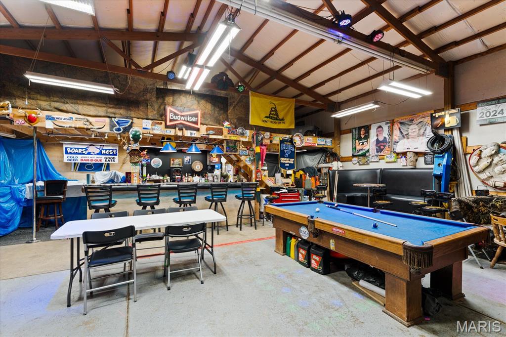 5 ACRES. NO HOA. PEACE & QUIET. Looking for relaxation? This is it. This 5 bedroom, 2 bathroom home in Waterloo sits on 5 beautiful acres with mature trees, abundant wildlife, and zero HOA fees. Want to 4-wheel? Go for it. Want space between you and the neighbors? You’ve got it. Enjoy your morning coffee on the deck overlooking your own private, scenic backdrop. Cozy up in either the living room or family room, both featuring wood-burning fireplaces and built-in bookcases for that warm, inviting feel. The 30x50 outbuilding is more than just storage, it’s a destination. Featuring a concrete floor, electric, heat, a built-in bar, and currently set up for gatherings, it’s ready for game nights, parties, or weekend hangouts. There’s even a loft for additional space, perfect for storage, an office, or bonus hangout area. Whether you’re into woodworking, working on cars, storing equipment, or finally having the ultimate workshop, you have the space to do it here. If you’ve been craving calm, privacy, room to roam, and space to entertain and create, this one delivers.