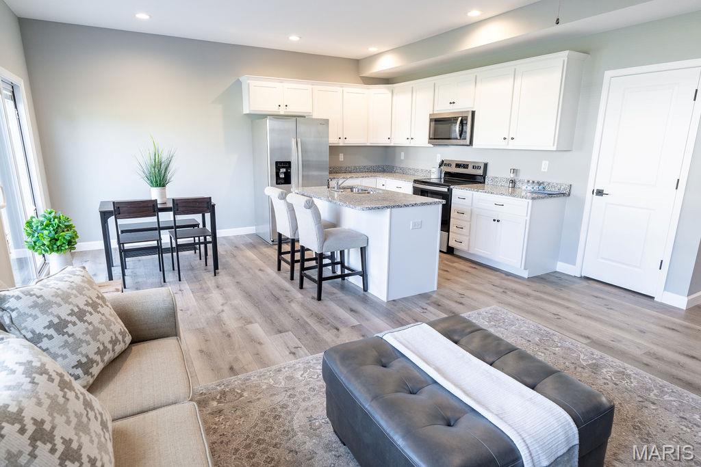 FOR LEASE! By appointment only. Available April 15, 2026. Brand new 3 bedroom, 2.5 bathroom 2 story townhome with easy to like amenities. Luxury Vinyl Plank flooring throughout, open layout with beautiful fireplace in the great room. The dining room walks out to a 12 x 14 patio. Equipped kitchen with microwave, dishwasher, refrigerator and electric range. Center island with granite countertops and pantry. Upstairs you'll find the master bedroom featuring vaulted ceiling, walk in closet and private bath with dual vanity. Two additional bedrooms, full bathroom and conveniently located laundry room (with washer & dryer!) completes the 2nd level. Additional information: Attached 1 car garage, Energy efficient gas heat, tankless water heater, blinds throughout and pets allowed with additional deposit. Just move in and enjoy! Maintenance inside and out is covered. Ideal location near Scott Air Force Base and I-64.