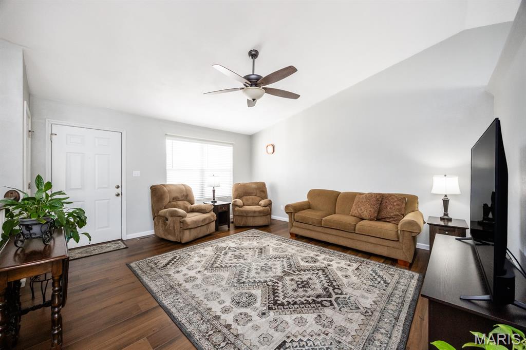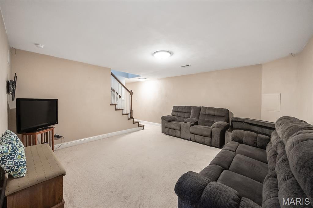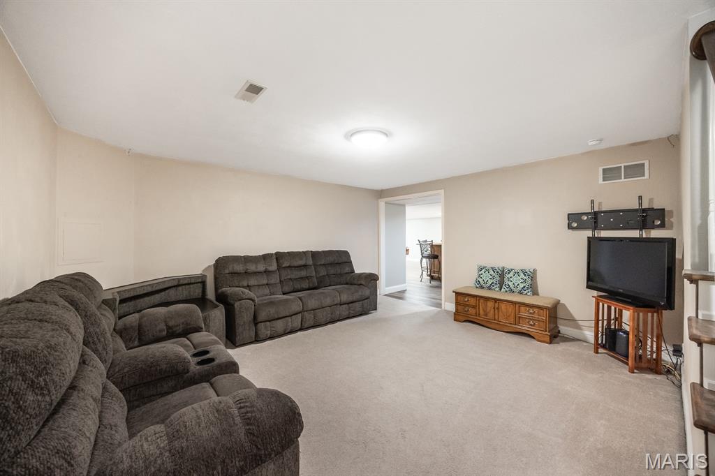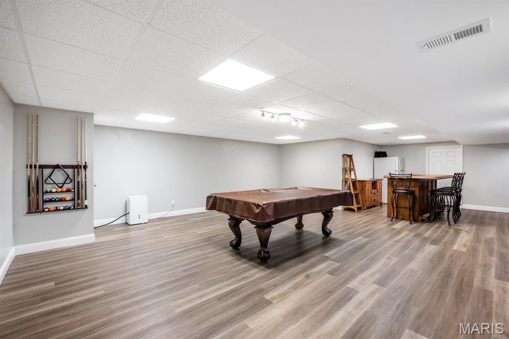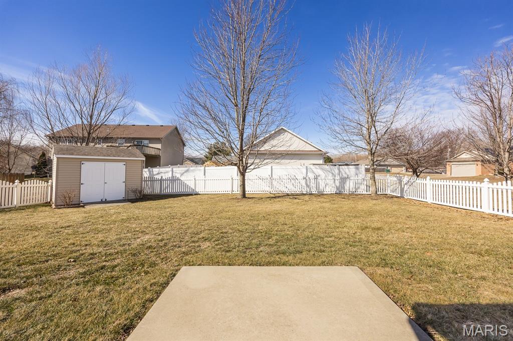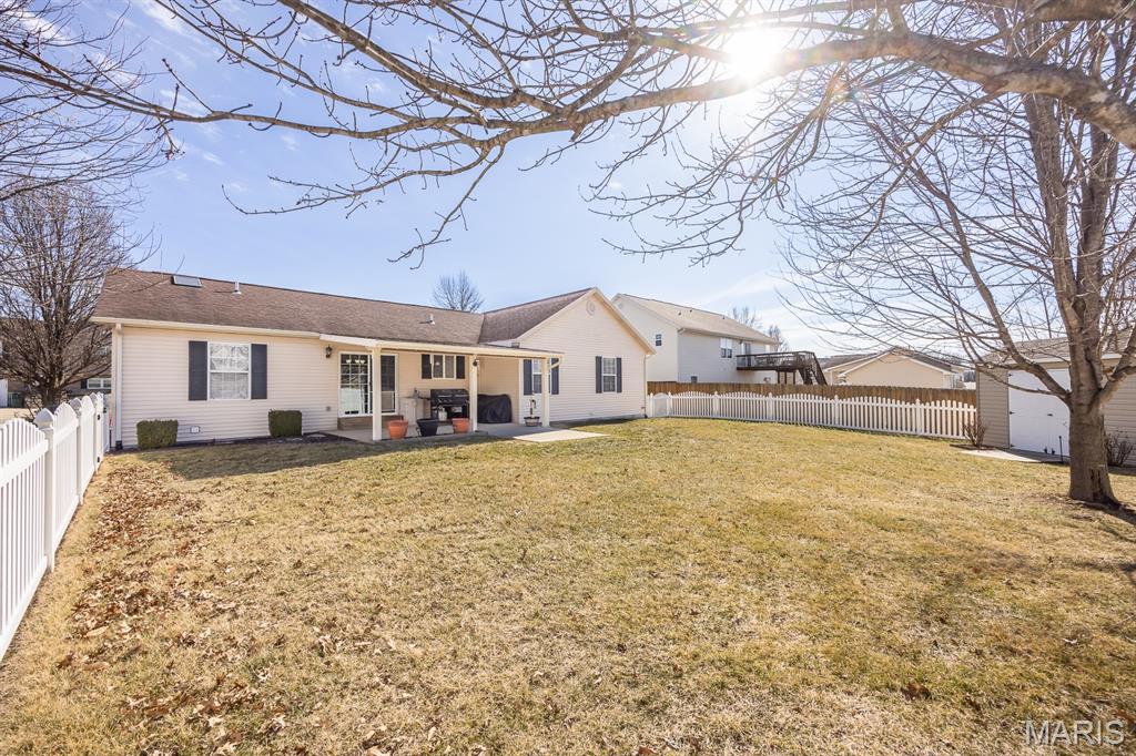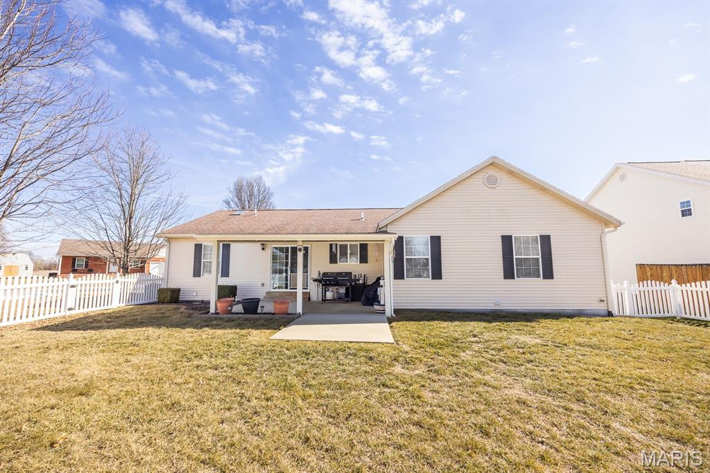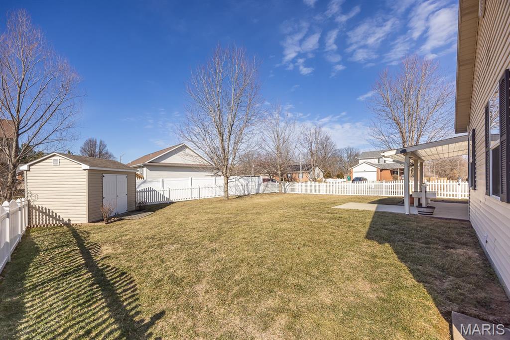 Freshly painted and move-in ready, this single-family home offers an open floor plan and a spacious eat-in kitchen featuring new appliances. The primary bedroom includes a custom walk-in closet and an updated bath with double vanity and tile flooring. Two additional bedrooms and a full bath with a skylight complete the main level. The lower level expands your living space with a cozy family room, full bath, bonus room and a game room equipped with a marble-top bar, pool table, and refrigerator, plus a storage area and sump pump. Enjoy outdoor living under the covered patio with awnings overlooking a large, fenced backyard with a storage shed. Additional highlights include a 2-car garage and HVAC updated in 2019. Conveniently located near Scott AFB and Historic Downtown Lebanon. Buyer to verify all information.