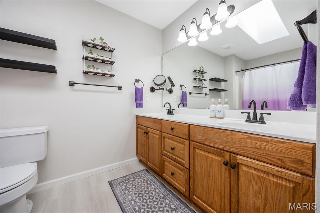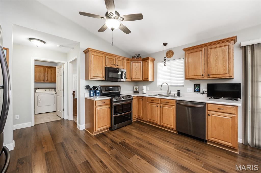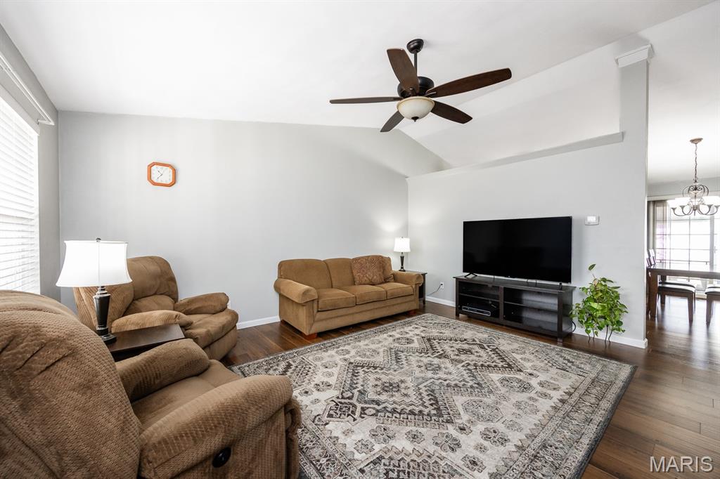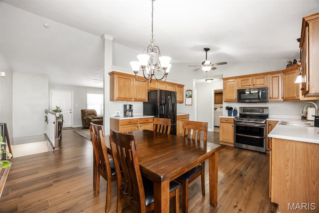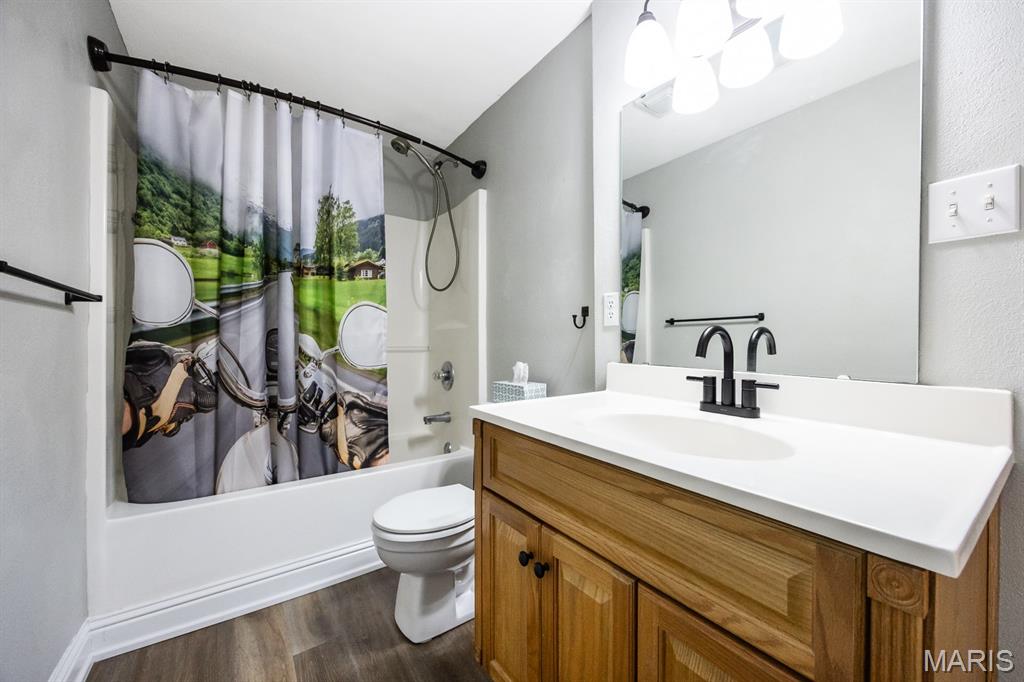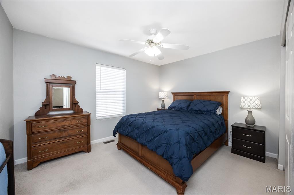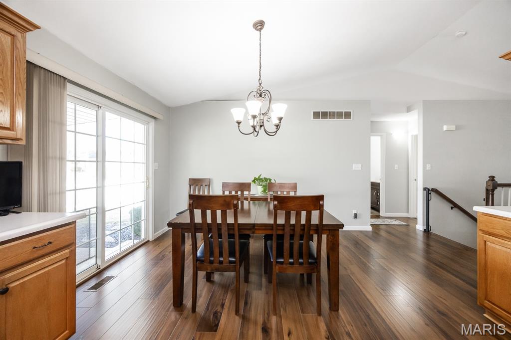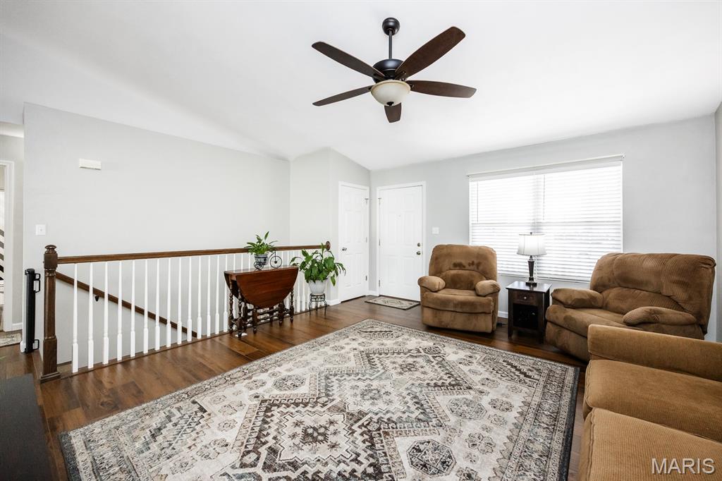 Freshly painted and move-in ready, this single-family home offers an open floor plan and a spacious eat-in kitchen featuring new appliances. The primary bedroom includes a custom walk-in closet and an updated bath with double vanity and tile flooring. Two additional bedrooms and a full bath with a skylight complete the main level. The lower level expands your living space with a cozy family room, full bath, bonus room and a game room equipped with a marble-top bar, pool table, and refrigerator, plus a storage area and sump pump. Enjoy outdoor living under the covered patio with awnings overlooking a large, fenced backyard with a storage shed. Additional highlights include a 2-car garage and HVAC updated in 2019. Conveniently located near Scott AFB and Historic Downtown Lebanon. Buyer to verify all information.