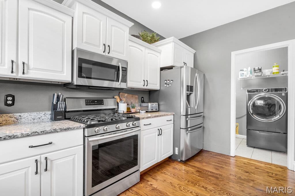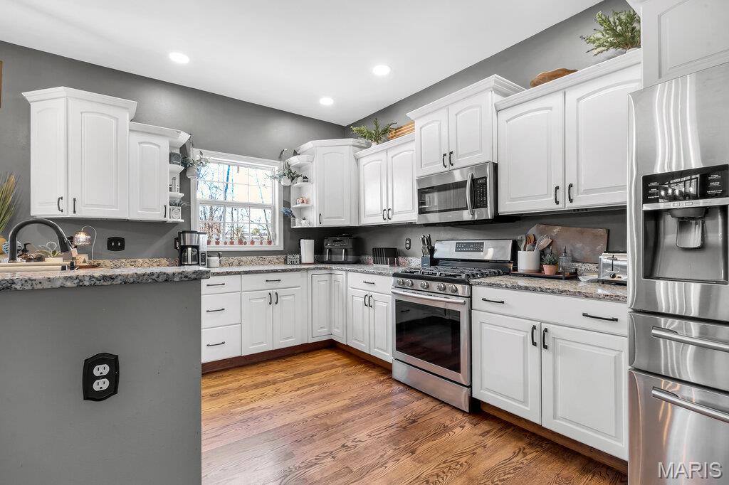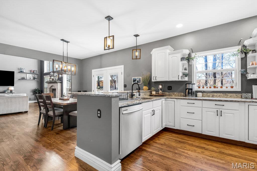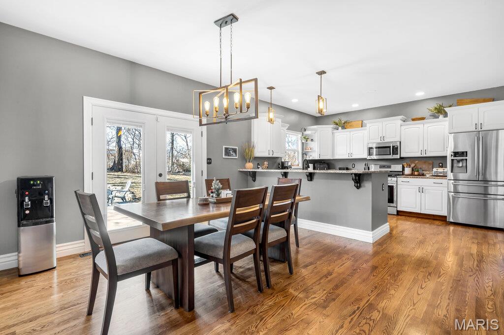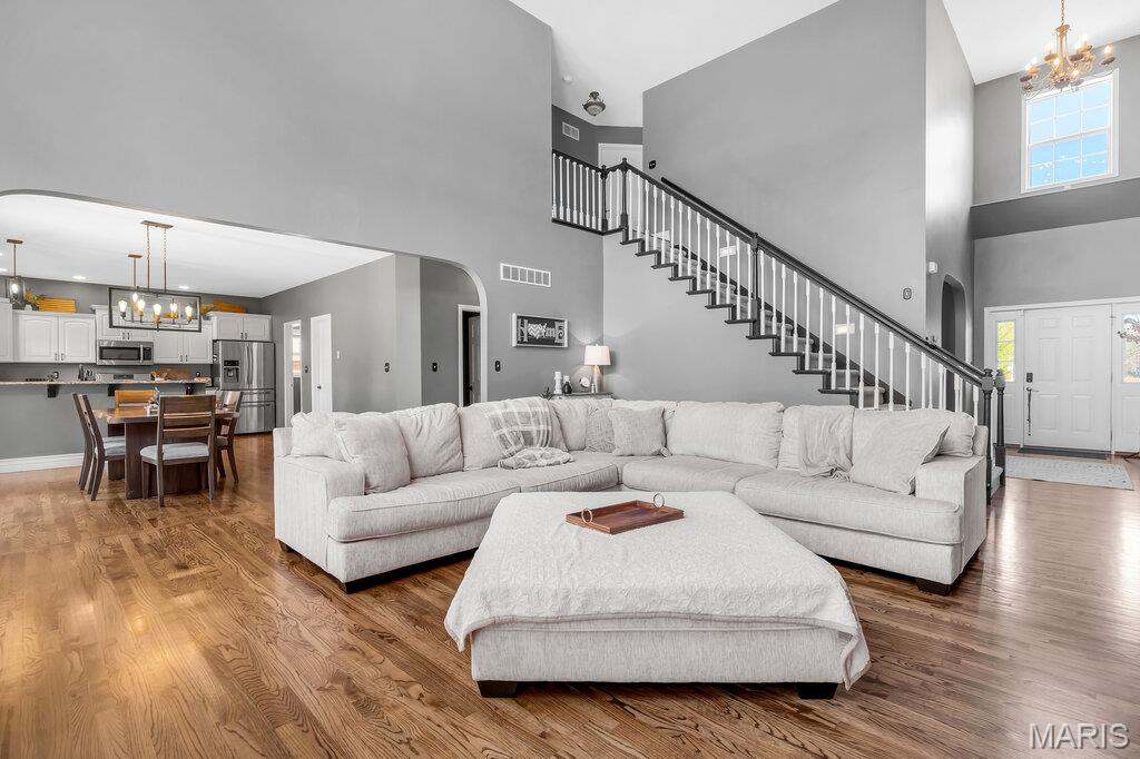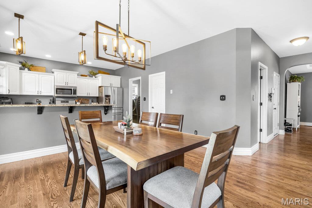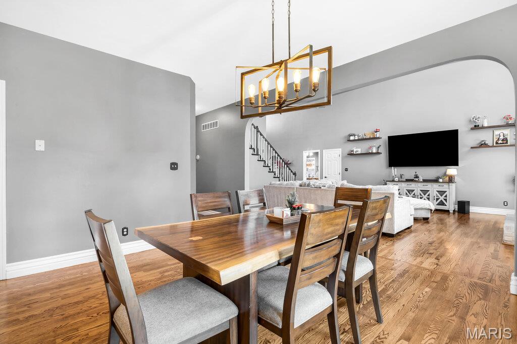 Welcome to this beautifully updated brick and siding 1.5-story home that perfectly blends timeless character with modern upgrades. From the moment you step inside, you’ll be impressed by the rich hardwood floors, upgraded woodwork, and soaring cathedral ceilings that create an open, airy feel filled with natural light. The thoughtfully designed open floor plan offers seamless flow between the living, dining, and kitchen spaces — ideal for both everyday living and entertaining. The kitchen features solid surface countertops, updated lighting, and plenty of space to gather. Enjoy the convenience of a spacious main-level primary suite complete with a walk-in closet and private bath. Upstairs offers additional bedrooms and flexible space to fit your lifestyle. Step outside to a brand-new patio, perfect for relaxing evenings or hosting summer get-togethers. The 3-car side-entry garage adds curb appeal and functionality, providing plenty of room for vehicles, storage, and hobbies. With numerous updates throughout and quality finishes at every turn, this home is move-in ready and designed to impress. Schedule your private showing today!