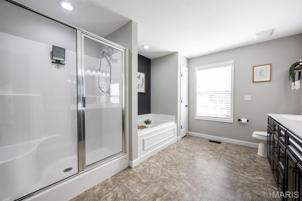 **OPEN HOUSE CANCELLED**Situated in the highly sought after Shiloh Elementary/Middle+O'Fallon Highschool area, this gorgeous and spacious home is all ready for a new owner. The delightful 2-story entry opens to a convenient T-staircase. To the right is a flex room -perfect for an office, playroom, or whatever your fancy-and to the left is a dining room featuring chair rail, newer light fixture, and tons of natural light. The back of the home is where you'll find the spacious kitchen (island, granite counters, stainless appliances that stay, pantry with custom shelving, tons of cabinet space) that opens to an eat in area and flows right into the main living room with cozy fireplace. Laundry is located on the mainlevel and includes a custom laundry closet. The huge 3 car garage includes an added landing and cubbies. Upstairs, you'll find the primary suite, 3 additional spacious bedrooms, and main bathroom with new lighting. The primary will surely WOW with vaulted ceiling, spacious en-suite bathroom (soaking tub, large shower, dual sink vanity) and DREAM CUSTOM WALK IN Closet. The finished basement provides additional living space for spreading out, 5th generously sized bedroom, 4th bathroom, and plenty of storage too. Out back, you'll love spending time on your oversize covered patio with stamped concrete addition. And the yard is even fenced - what more could you ask for? Shopping, restaurants, and Scott AFB are close by - all your boxes are checked! POSSIBLE VA ASSUMPTION!