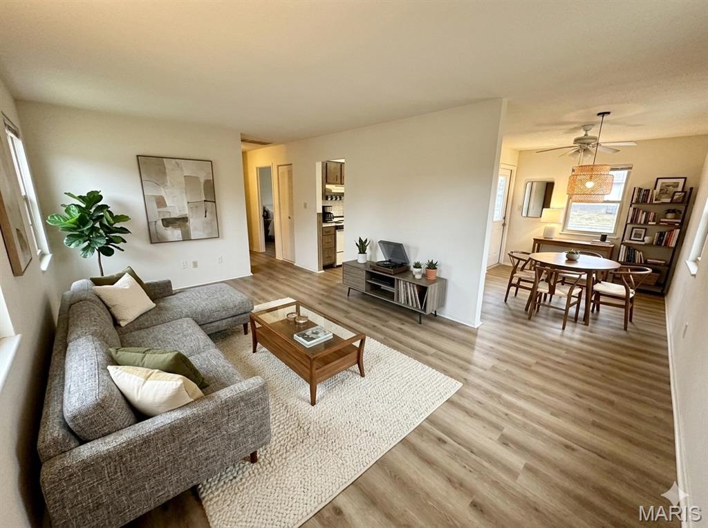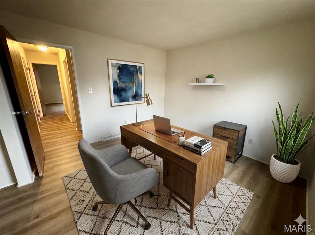 Welcome home to this beautifully refreshed 2-bedroom, 1-bath UPPER LEVEL apartment. This inviting unit offers the perfect blend of comfort, convenience, and modern updates—ideal for anyone looking for a clean, move-in-ready space in a great location. Step inside and immediately notice the brand-new flooring that runs throughout the apartment, creating a fresh and cohesive feel. The updated floors not only add a modern touch but are also easy to maintain, making everyday living simple and stress-free. Fresh paint throughout the unit brightens every room and provides a crisp, neutral palette that complements any décor style. The spacious living area offers plenty of room for relaxing or entertaining, with natural light pouring in to create a warm and welcoming atmosphere. Just off the living space, you’ll find a private balcony—perfect for enjoying your morning coffee, getting some fresh air, or unwinding at the end of the day. The kitchen provides ample cabinet space and room for meal prep, making it both functional and practical for daily cooking. Both bedrooms are comfortably sized with generous closet space and large windows that enhance the open, airy feel. The full bathroom is conveniently located and thoughtfully laid out for ease of use. Situated in a convenient Belleville location, this apartment provides quick access to local shopping, dining, parks, major roadways to STL, SWIC, SAFB and more, making commuting and everyday errands simple. Whether you’re heading to nearby schools, entertainment, or neighboring communities, you’ll appreciate the accessibility this address offers. This is a NO SMOKING and NO PET home. $50 application fee required for all occupants 18 years of age or older. Credit, criminal, employment and rental verification will be conducted. Holding (security) deposit required within 24 hours of approval. ***Some photos are virtually staged/edited.