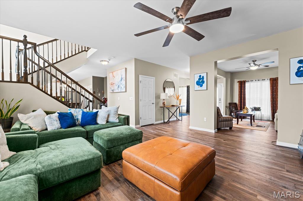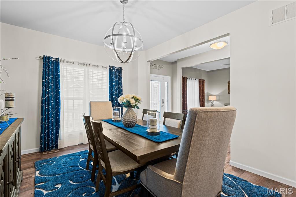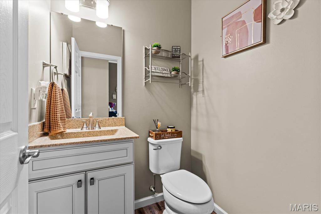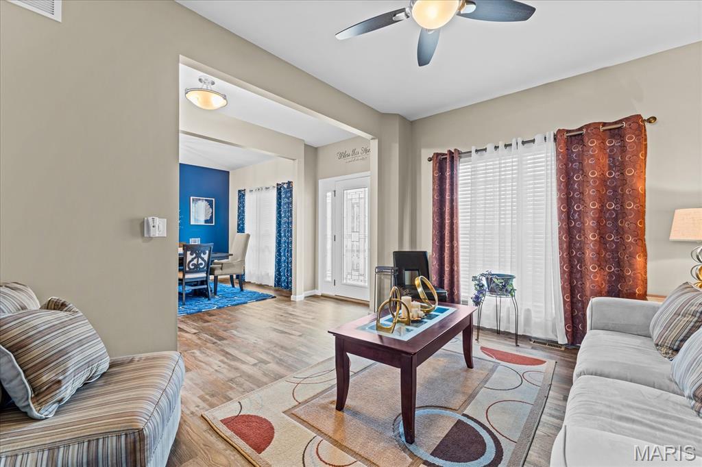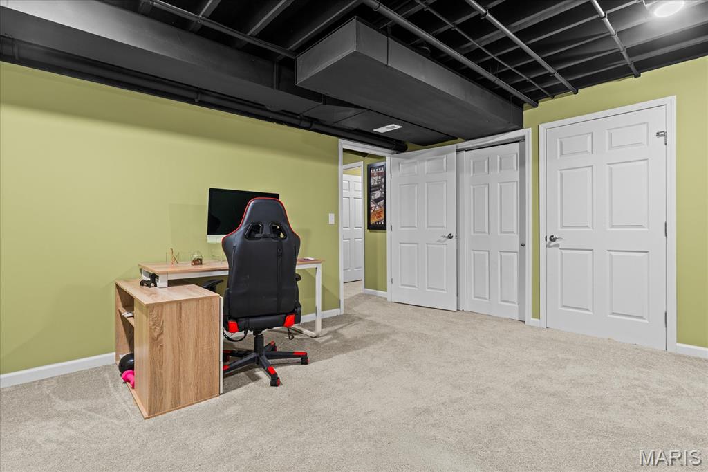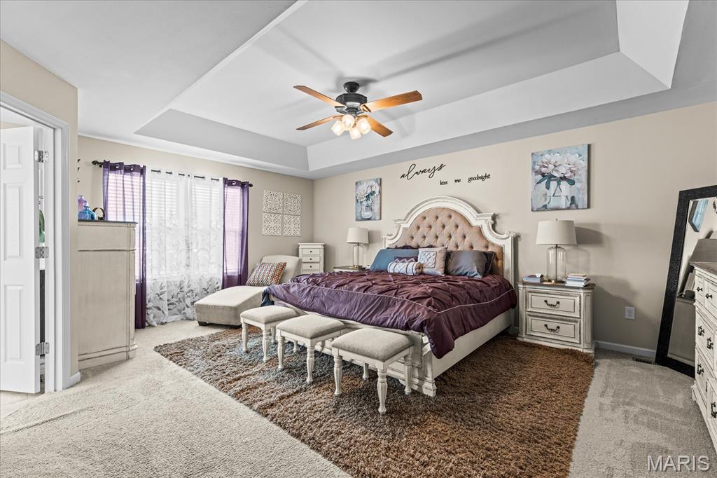 Exceptional 2-story home offering over 4,500 sq ft in a highly desirable neighborhood within O’Fallon Schools. This 5BR/3.5BA home combines spacious design with quality finishes and functional living throughout. The main level features 9’ ceilings, a formal dining room, and a versatile flex space ideal for a home office, sitting room, or playroom. The open-concept layout is filled with natural light and centers around an impressive kitchen complete with 42” cabinets with crown molding, soft-close drawers, granite countertops, a large center island, an oversized pantry, and a breakfast nook with direct access to the level backyard and pergola—perfect for outdoor entertaining. Laundry room conveniently located off the kitchen with access to the 2-car garage. Upstairs, the expansive 23’ x 17’ primary suite offers a spa-like en-suite bath and oversized walk-in closet. Three additional generously sized bedrooms and a double-sink hall bath complete the upper level. The finished lower level provides a large recreation room, fifth bedroom, full bath, and an office/bonus sleeping area—ideal for guests or multi-generational living. An irrigation system is included for easy lawn maintenance. Spacious, functional, and move-in ready—schedule your showing today.