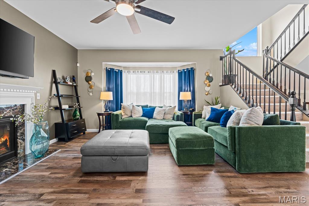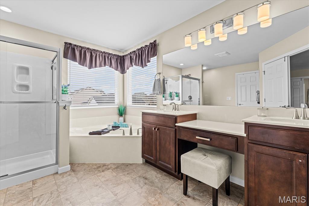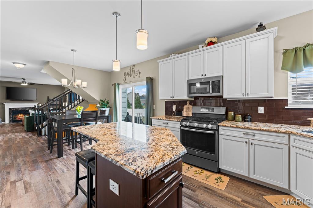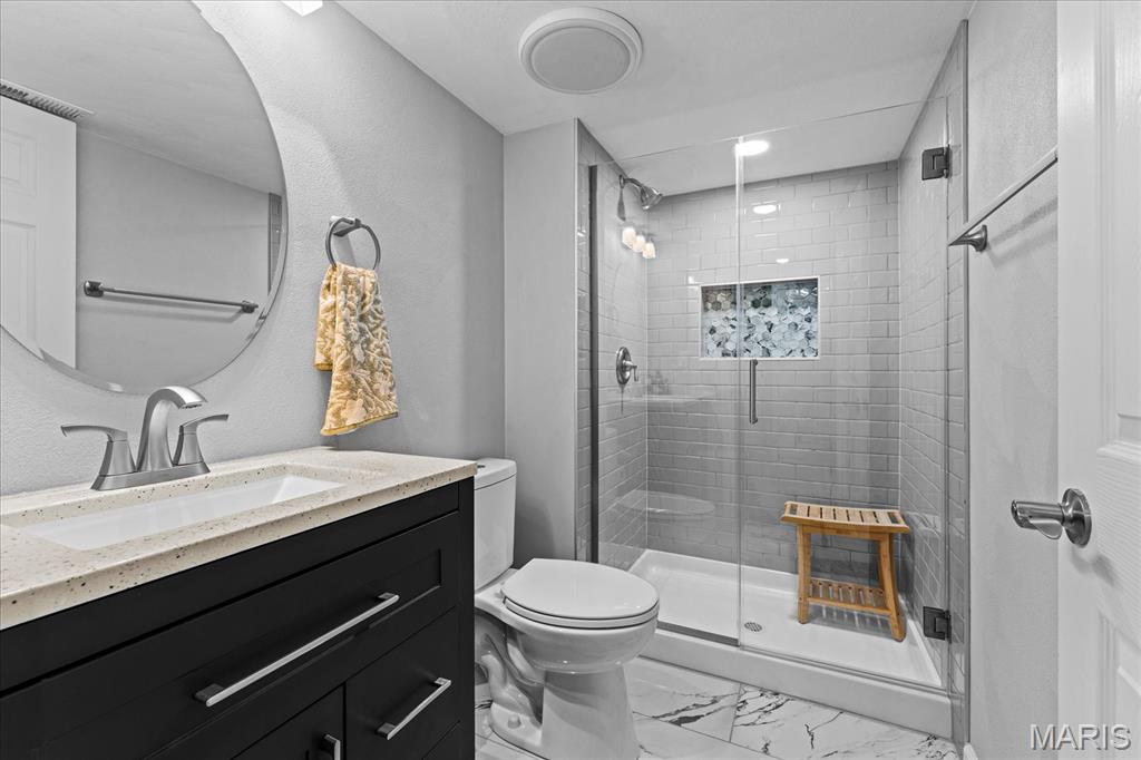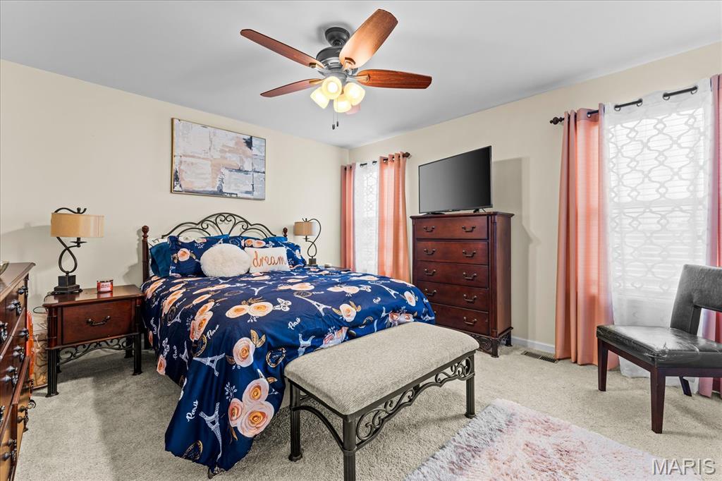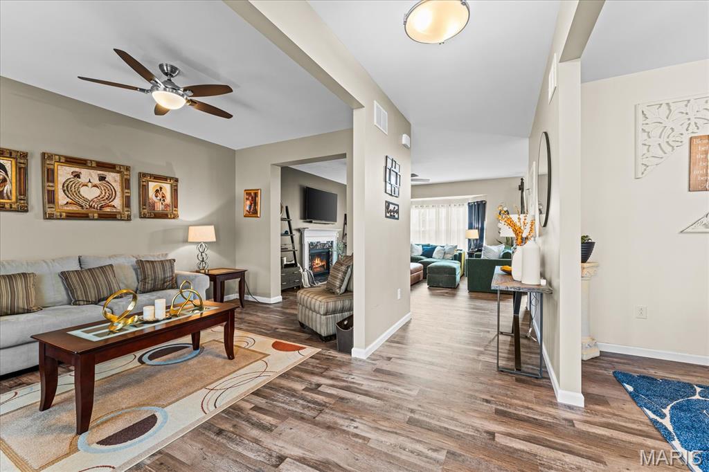 Exceptional 2-story home offering over 4,500 sq ft in a highly desirable neighborhood within O’Fallon Schools. This 5BR/3.5BA home combines spacious design with quality finishes and functional living throughout. The main level features 9’ ceilings, a formal dining room, and a versatile flex space ideal for a home office, sitting room, or playroom. The open-concept layout is filled with natural light and centers around an impressive kitchen complete with 42” cabinets with crown molding, soft-close drawers, granite countertops, a large center island, an oversized pantry, and a breakfast nook with direct access to the level backyard and pergola—perfect for outdoor entertaining. Laundry room conveniently located off the kitchen with access to the 2-car garage. Upstairs, the expansive 23’ x 17’ primary suite offers a spa-like en-suite bath and oversized walk-in closet. Three additional generously sized bedrooms and a double-sink hall bath complete the upper level. The finished lower level provides a large recreation room, fifth bedroom, full bath, and an office/bonus sleeping area—ideal for guests or multi-generational living. An irrigation system is included for easy lawn maintenance. Spacious, functional, and move-in ready—schedule your showing today.