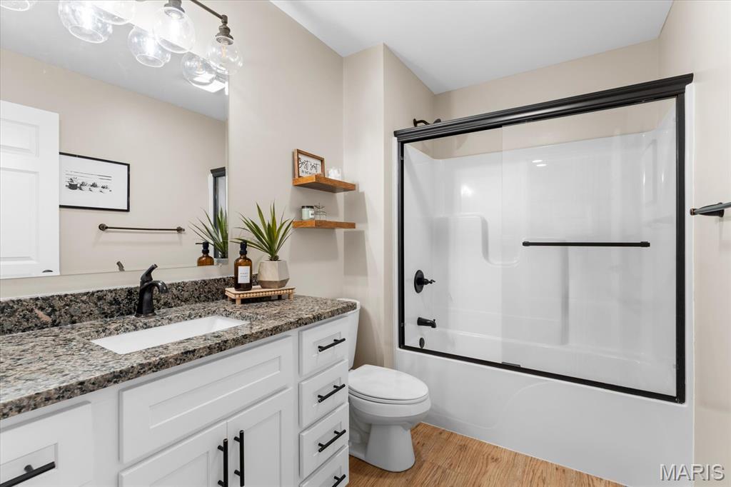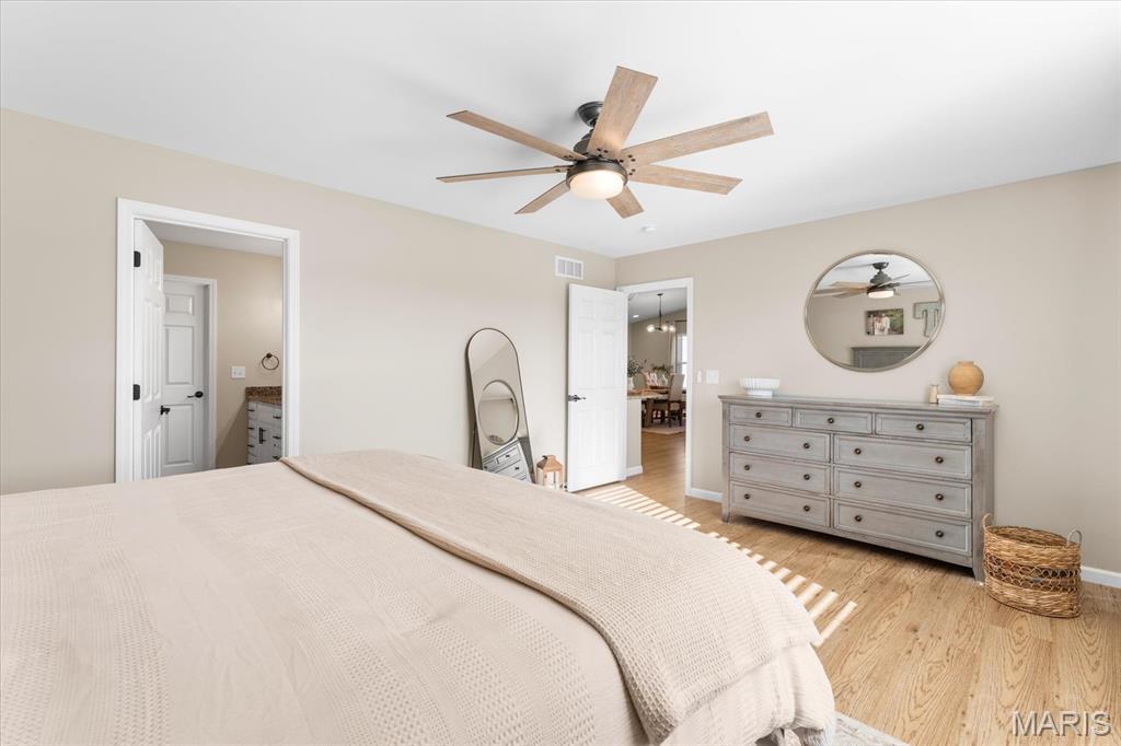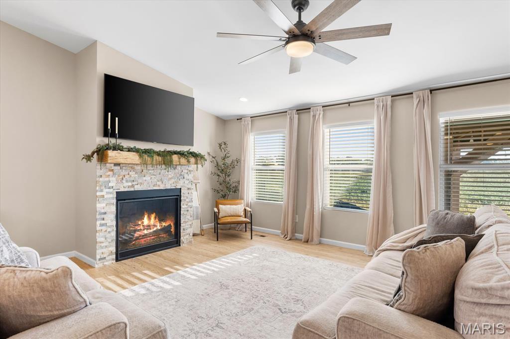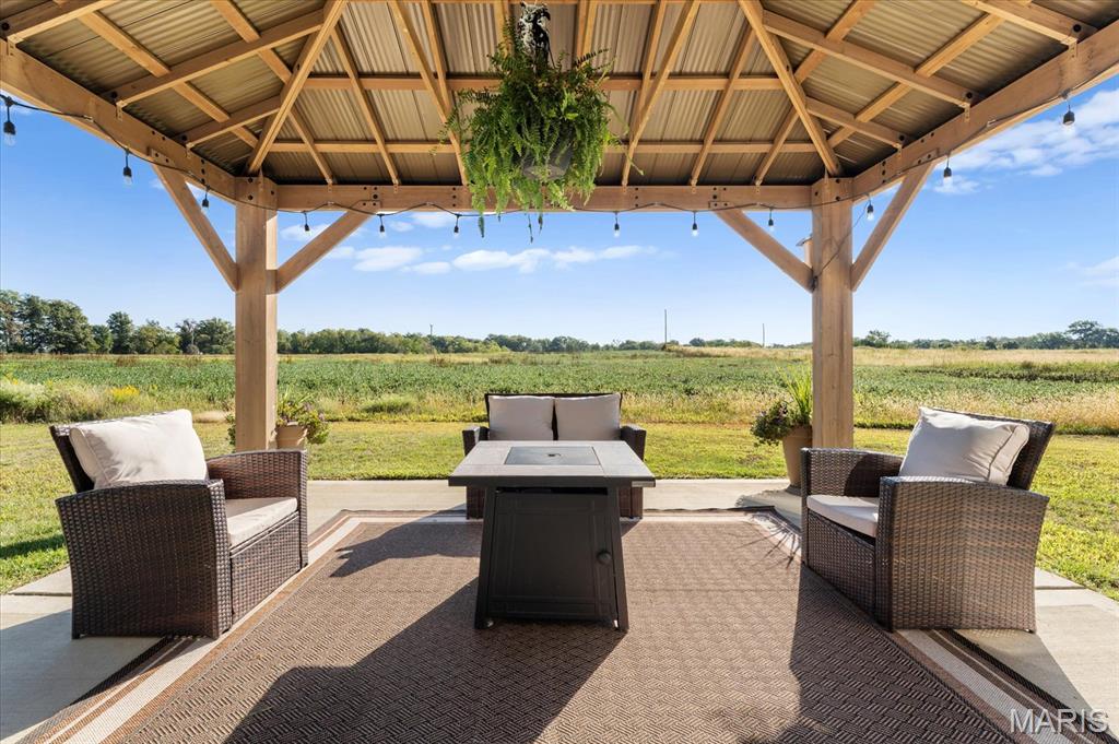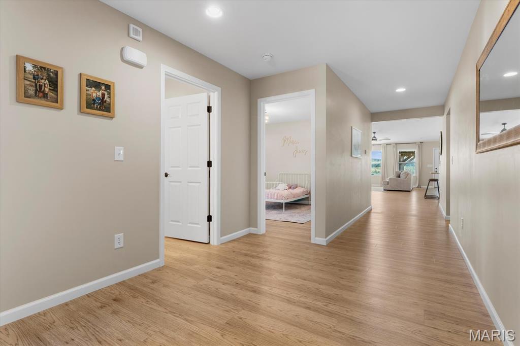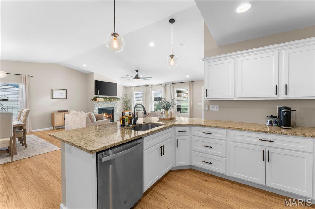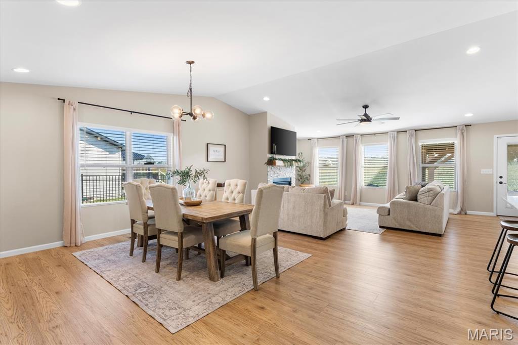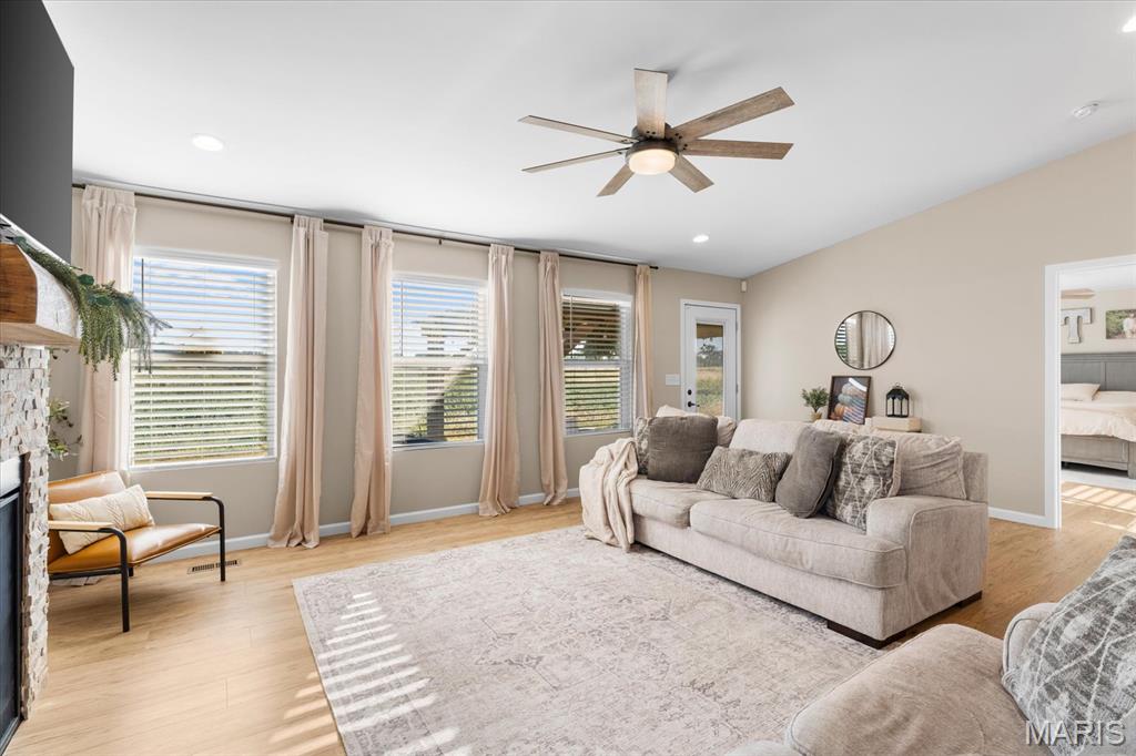 Well-maintained ranch in Meadow Pines Estates with a finished basement and 3-car garage. The main level features an open floor plan with vaulted ceilings, a spacious living room with gas fireplace, and a kitchen with granite countertops, stainless steel appliances, and a walk-in pantry. The primary suite includes a walk-in closet and bath with double vanity. On the opposite side of the home are two additional bedrooms and a full hall bath. A generous mudroom with direct access to the laundry room connects to the garage entry. The finished basement offers a large recreation room, a bedroom with egress window, and a full bath, along with a large unfinished space ideal for storage or future expansion. Outside, enjoy the pergola and peaceful country setting, just minutes from shopping, dining, and city conveniences.
